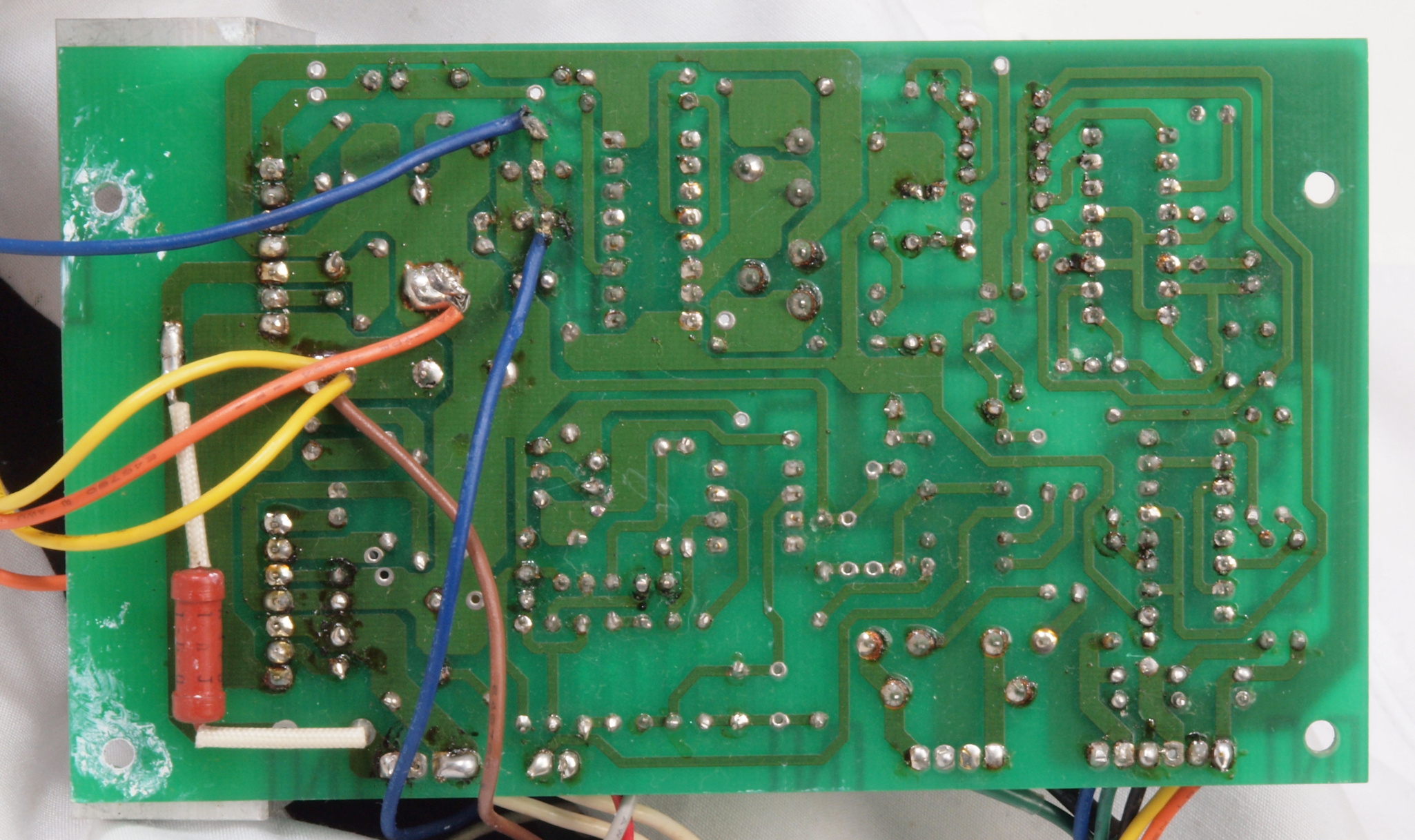 | C24. 修理(半田補正)後 モーターコントロール基板裏。 フイルムコンデンサー1個追加。 | ||||||||||||||||||||||||||||||||||||||||||||||