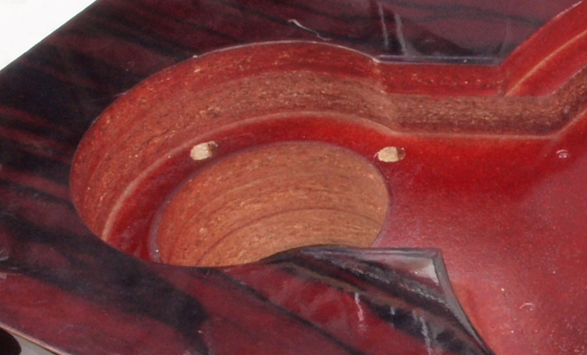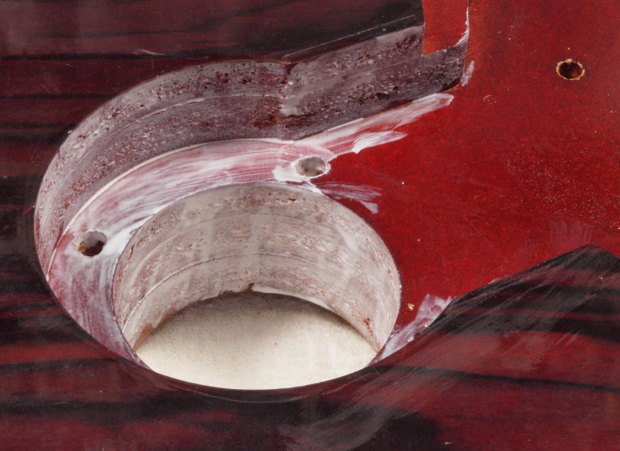 | WA5. 修理中 下蓋のアーム取り付穴、反対側。ボンドを染みこませる、ネジ穴も塗る。 | ||||||||||||||||||||||||