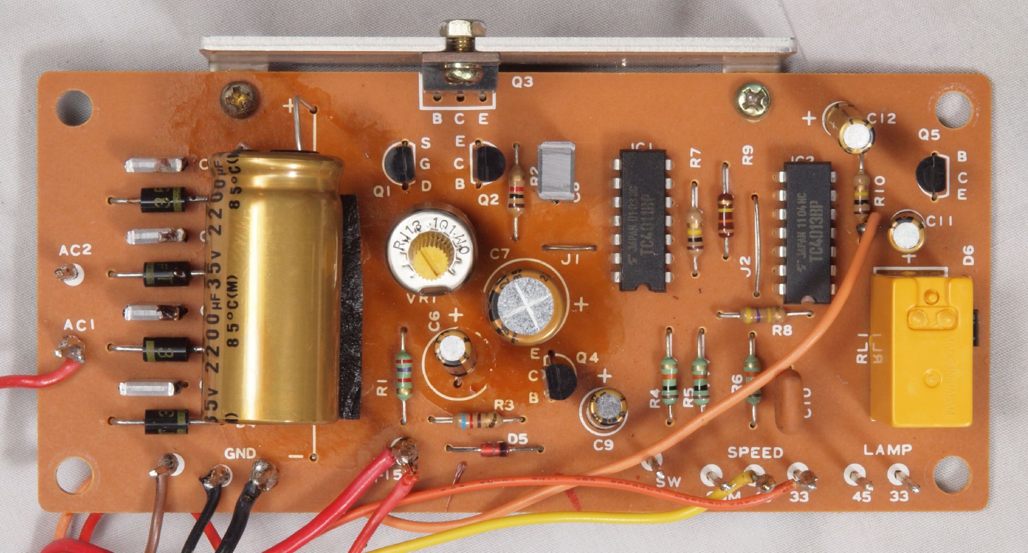 | C213. 修理後 電源・33/45切替基板修理後 電源基板。 トルエン溶媒の接着剤を取り去り、コート液を塗布後。 | ||||||||||||||||||||||||
