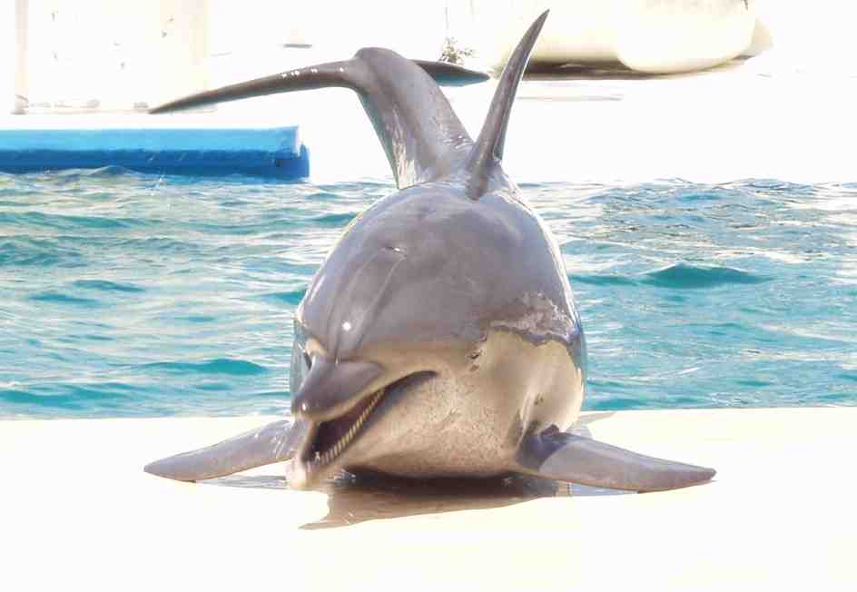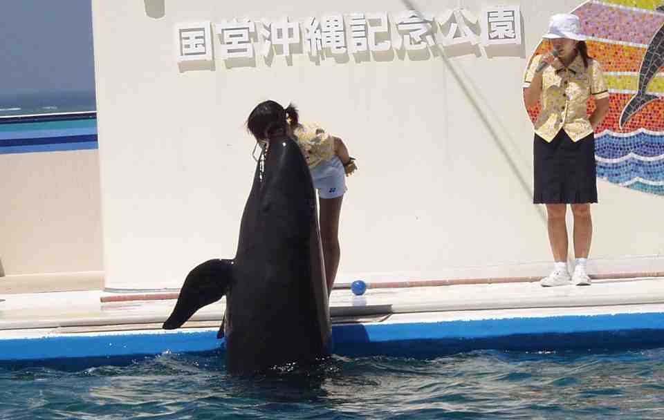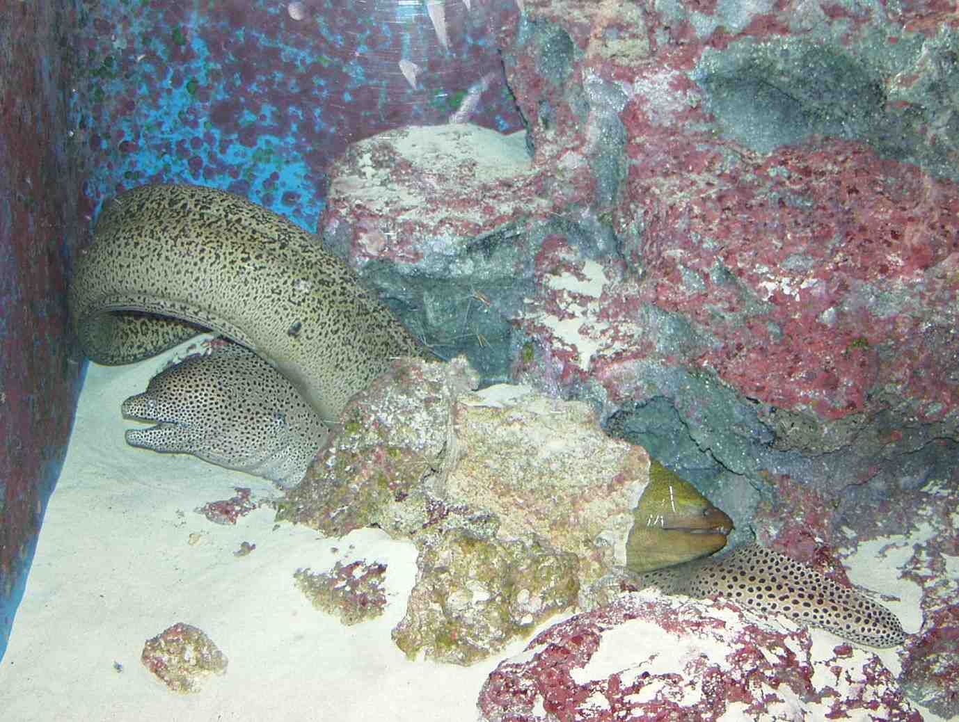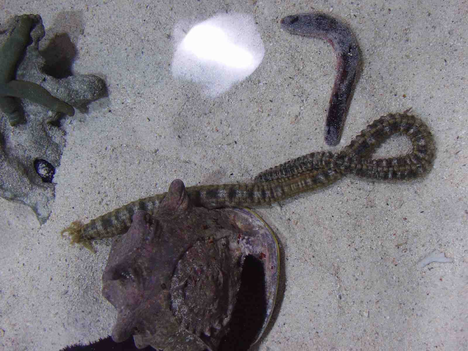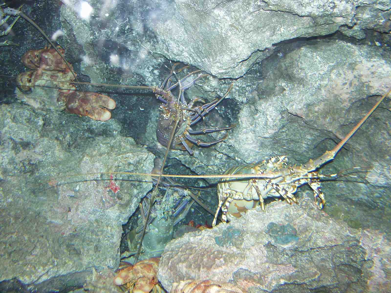 4.ダイバーが水中カメラを持込、左のスクリーンに写し出す