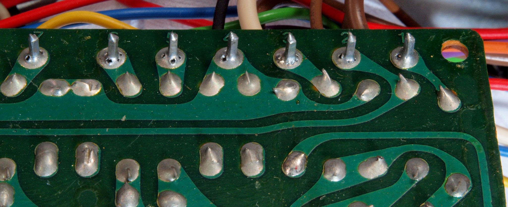 | C17. 修理後 電源基板裏、ラッピング。ラッピング線に半田を浸み込ませる。 | ||||||||||||||||||||||||||||||||||||||||||||||||||||||||||||||||||||||||||||||||||||||||||||||