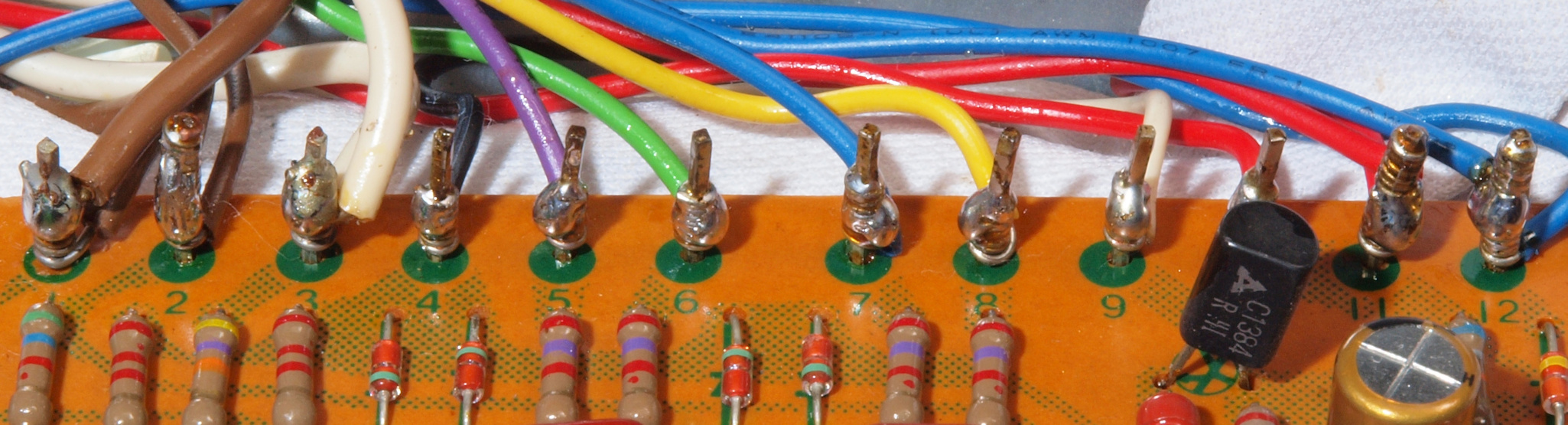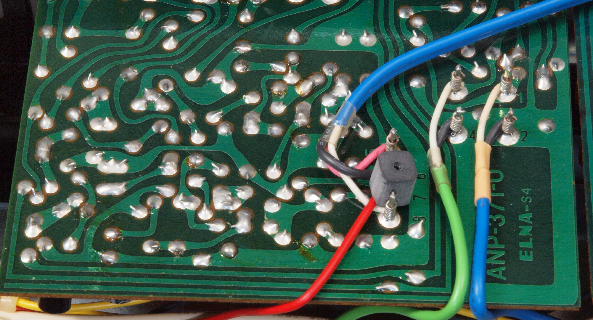 | C37. 修理前 SW+VR基板裏、ラッピング。ラッピング線に半田を浸み込ませる。 | ||||||||||||||||||||||||||||||||||||||||||||||||||||||||||||||||||||||||||||||||||||||||||||||