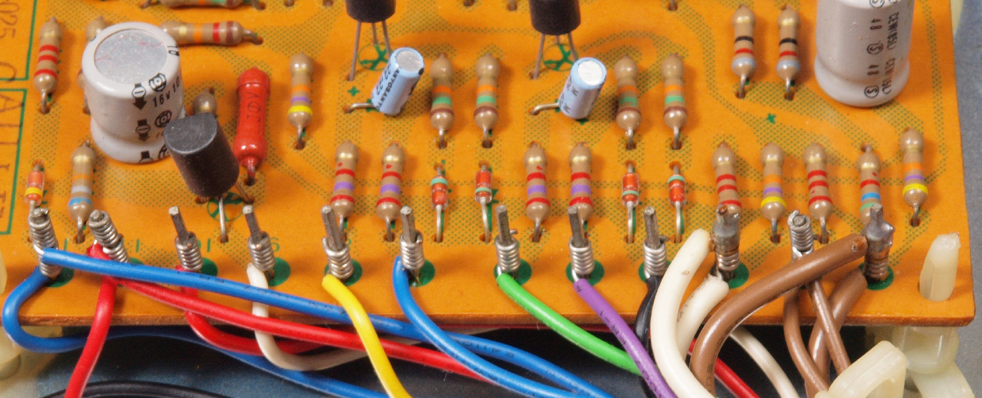 | C22. 修理後 終段TR(トランジスター)基板。電解コンデンサー8個、半固定VR4個交換。 | ||||||||||||||||||||||||||||||||||||||||||||||||||||||||||||||||||||||||||||||||||||||||||||||