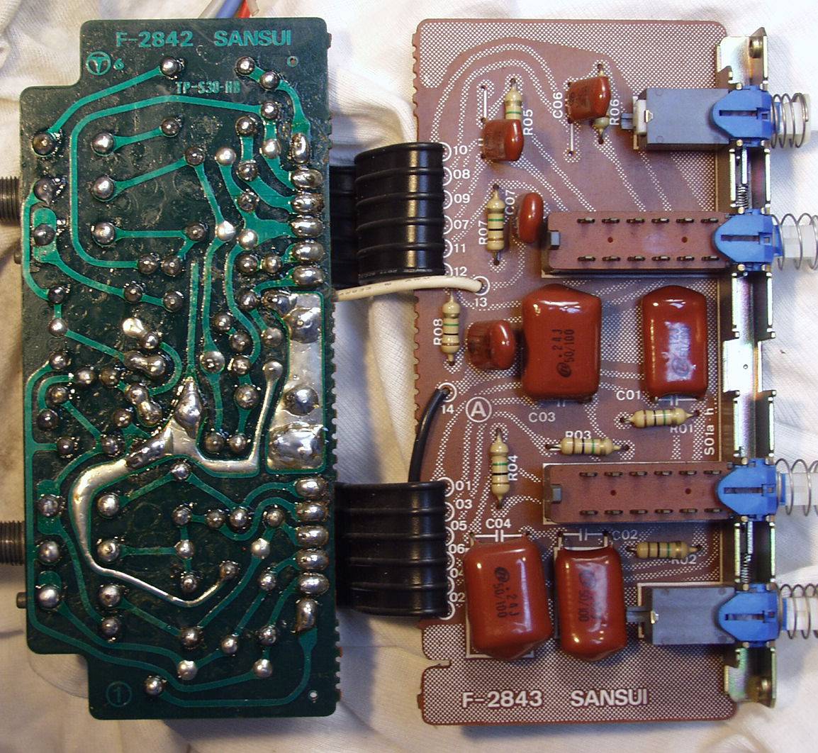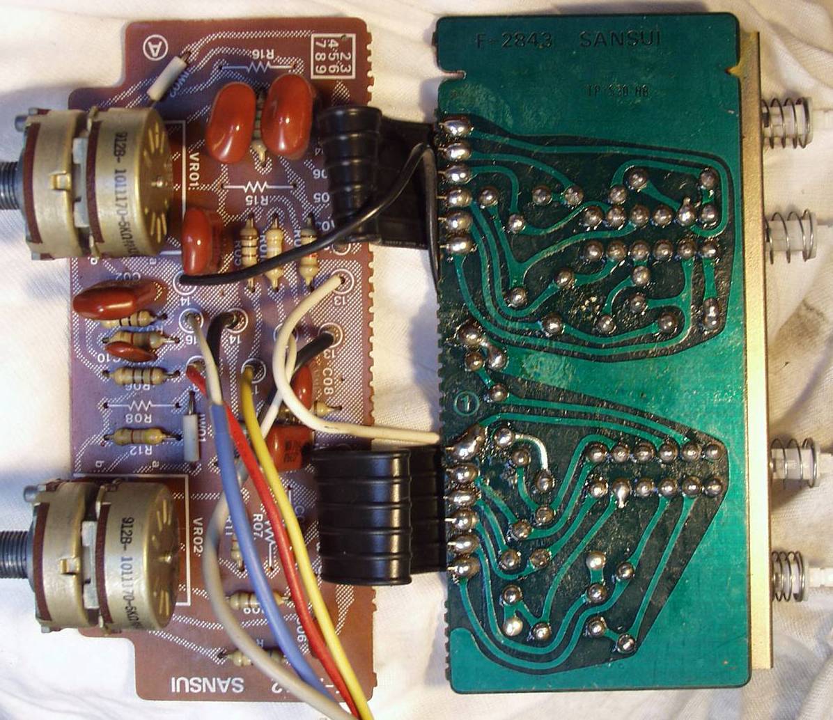 | C−6B. 修理後 EQ基盤 初段FET(電界効果トランジスター)2個、半固定VR2個、電解コンデンサー20個交換 |
