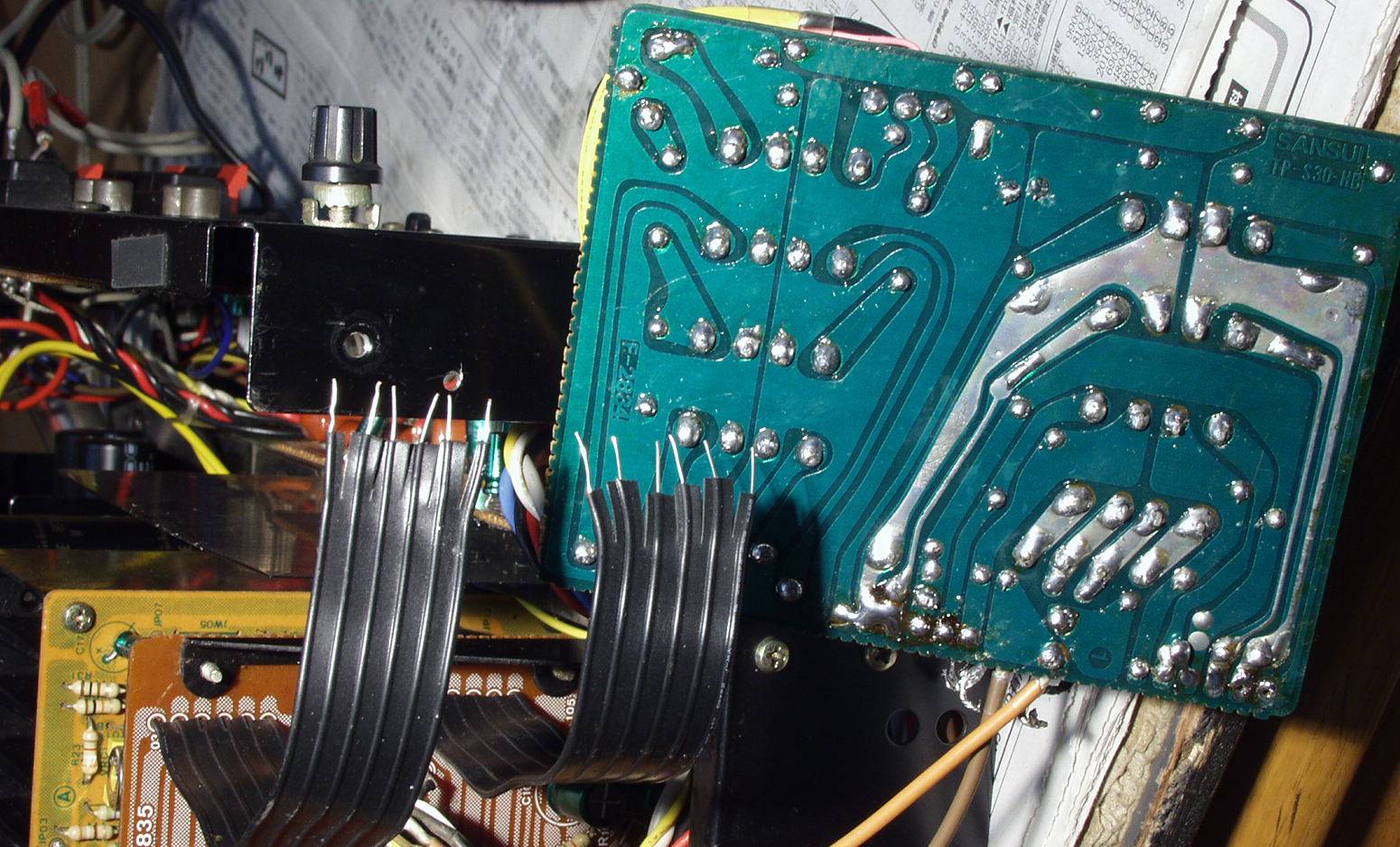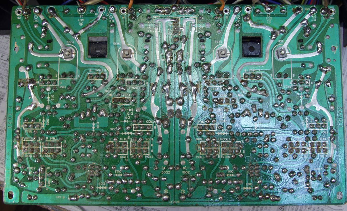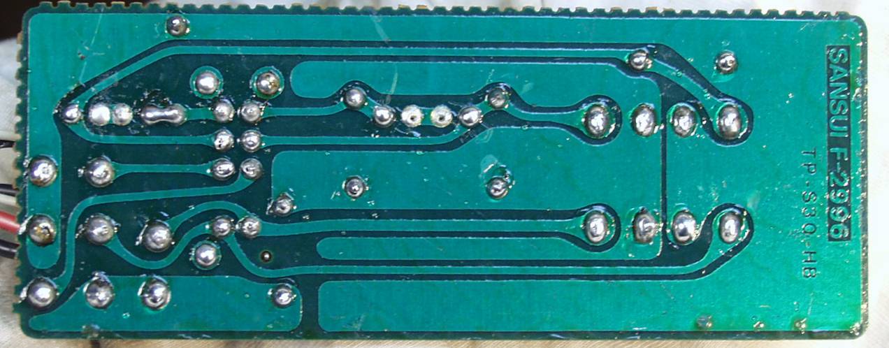 | C−2E. 修理前 コントロールAMP基盤 接続端子の半田のり=少ない! |