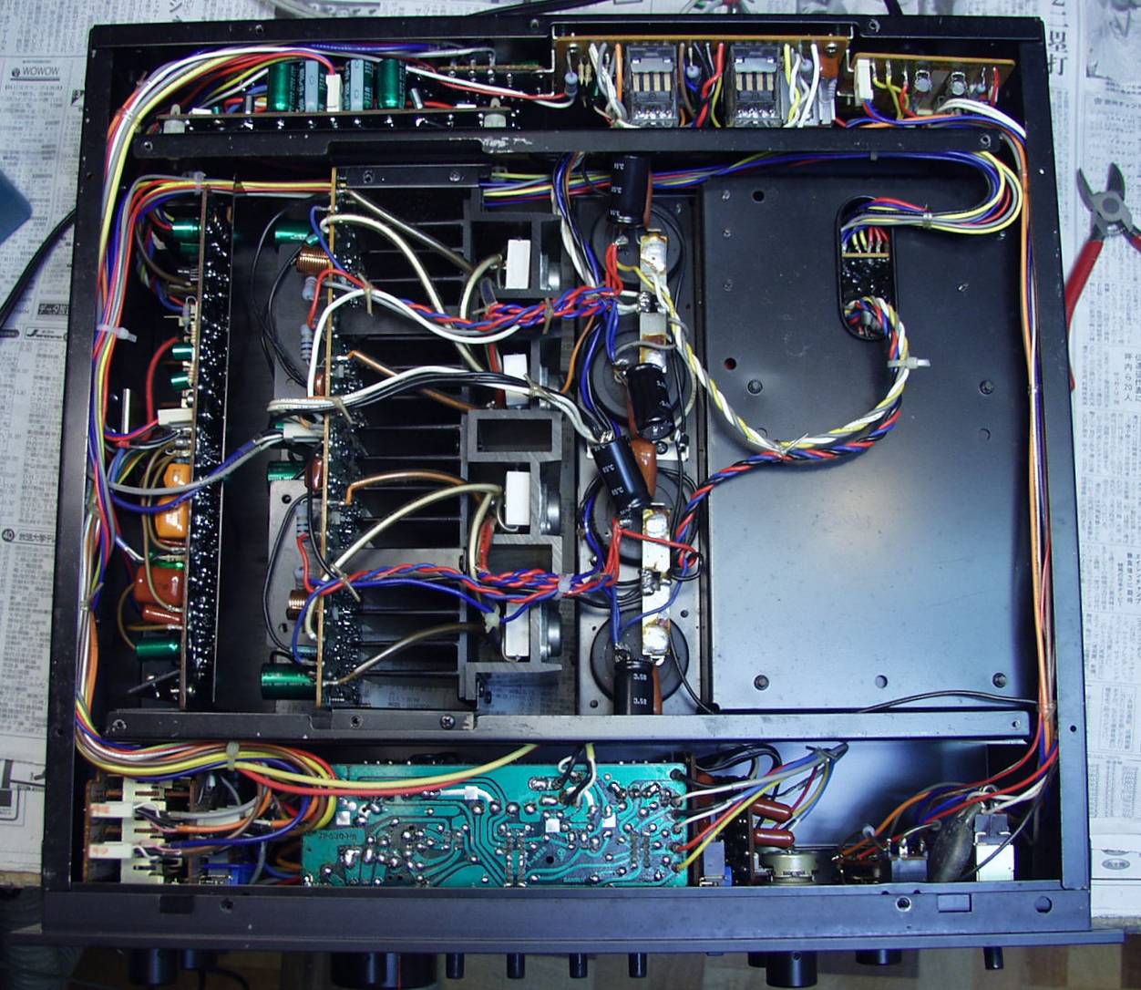| C−1B. 修理後 メイン・ドライブAMP基盤 初段FET(電界効果トランジスター)2個、半固定VR4個、電解コンデンサー20個交換 |