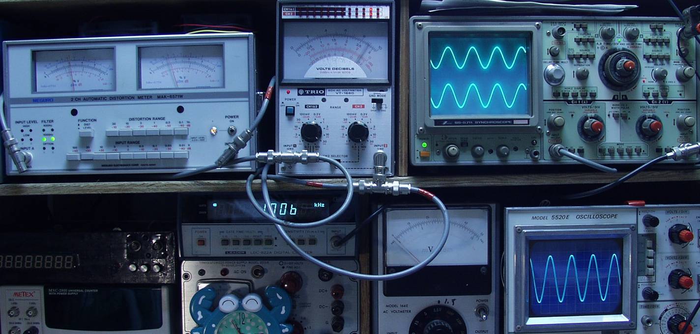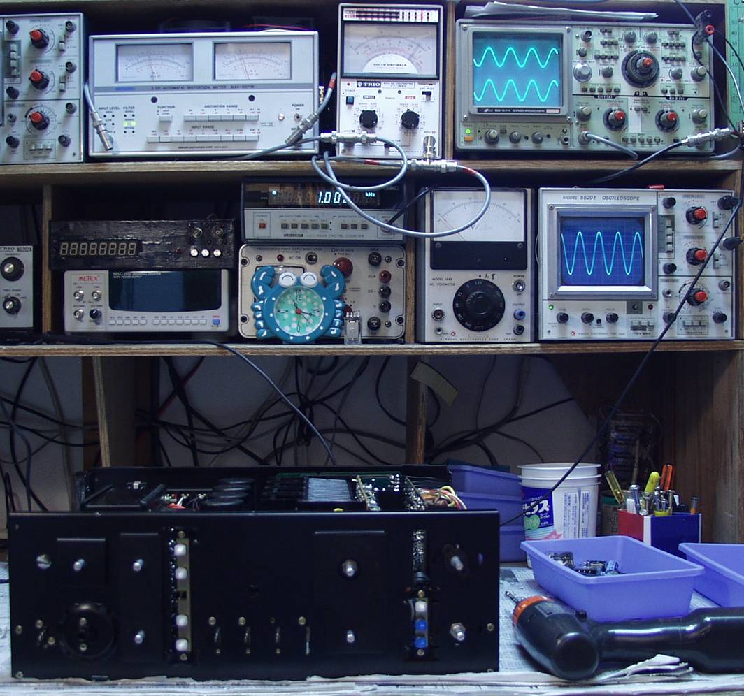 | E−4A. 出力/歪み率測定・調整 出力=28V=98W 歪み率0.03% at=1000HZ MC端子入力 |