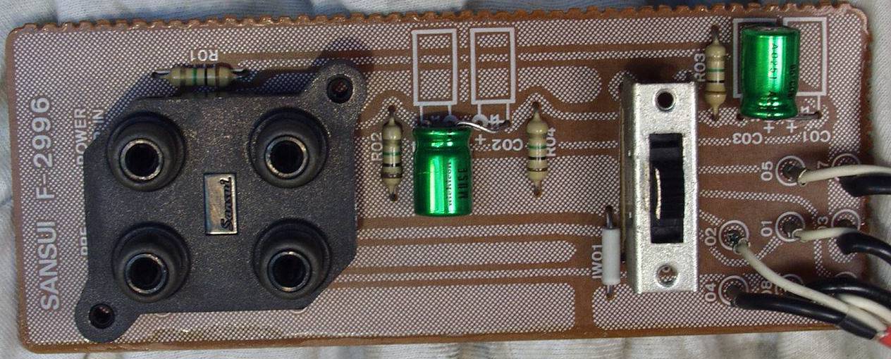 | C−5B. 修理後 プリメインRCA端子 高価なBPに変更したので「2個→1個」 |