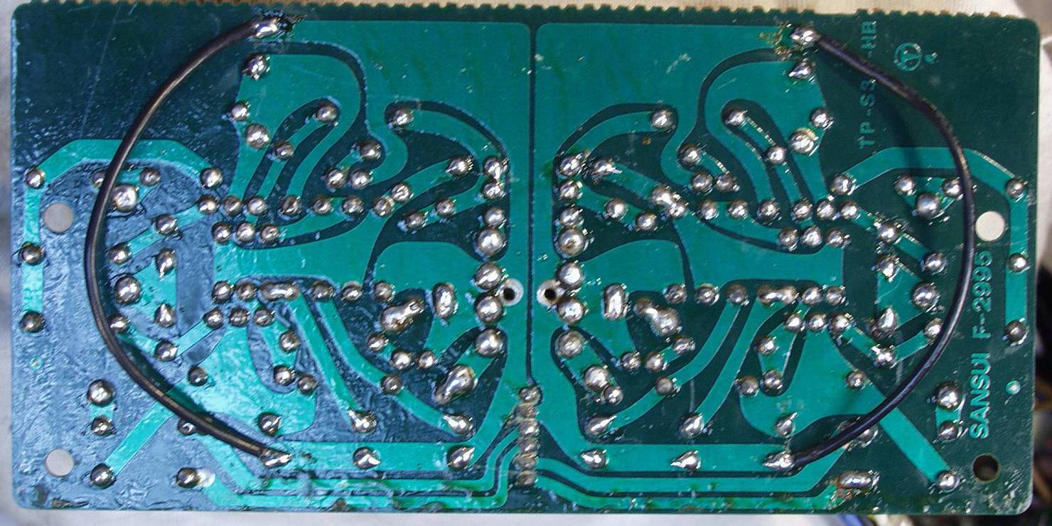 | C−2D. 修理(半田補正)後 コントロールAMP基盤裏 全ての半田をやり直す |