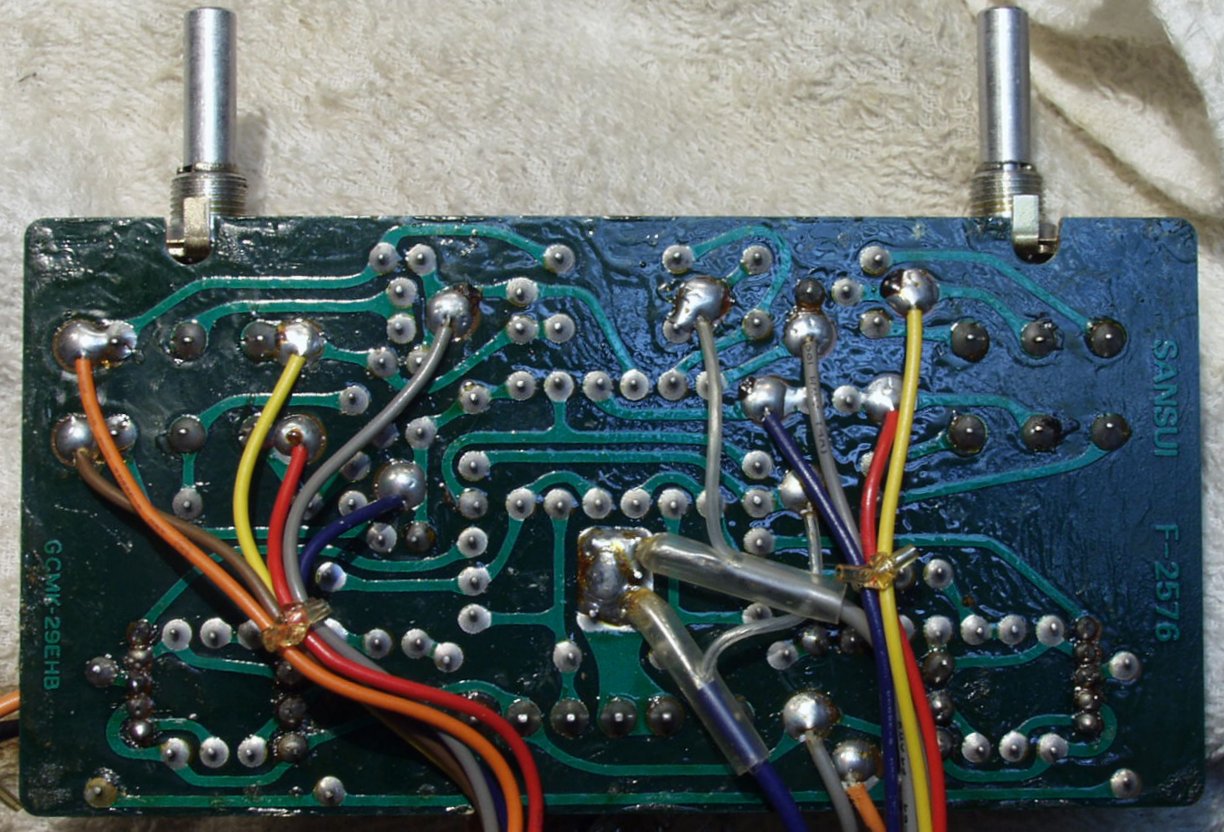 | C4B. 修理(半田補正)後 コントロール(低音+高音)基盤裏 不良半田やり直す | ||||||||||||||||||||||||||||||||||||||||||