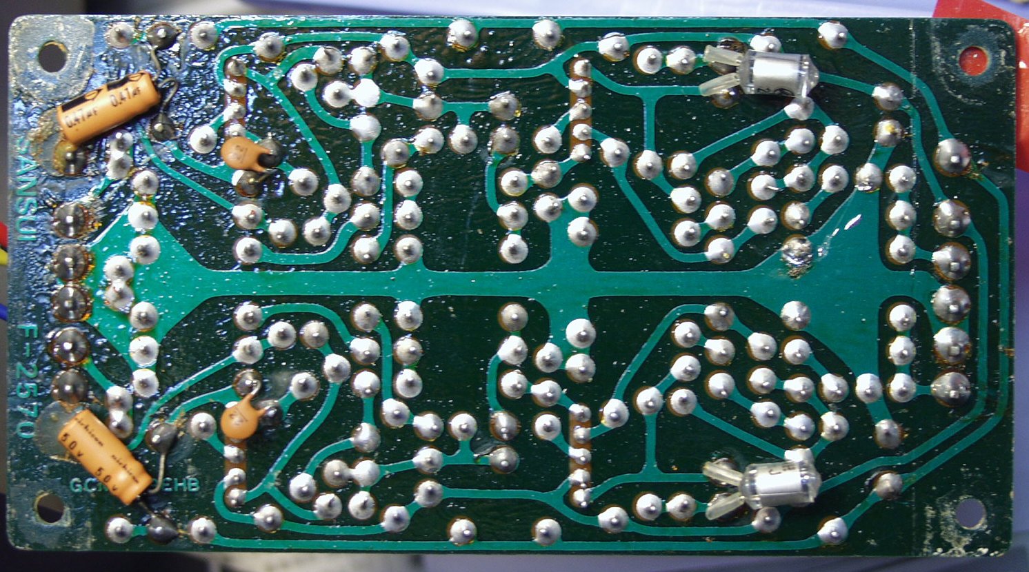 | C6D. 修理(半田補正)後 EQ_AMP基盤裏 不良半田やり直す | ||||||||||||||||||||||||||||||||||||||||||