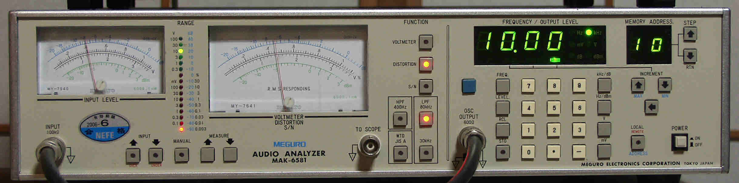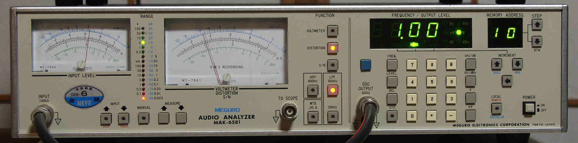 | A. 1台目=2006年6月 YAHOOオークションで\39,000円で購入。2006年校正品でしたが、 出力レベル不良。 2台目=2007年5月 YAHOOオークションで\31,150円で購入。 動作品なので清掃のみ。 B. 原因。 経年変化。 D. 使用部品。 S. MEGURO MAK−6581 仕様(マニアル・カタログより) |
