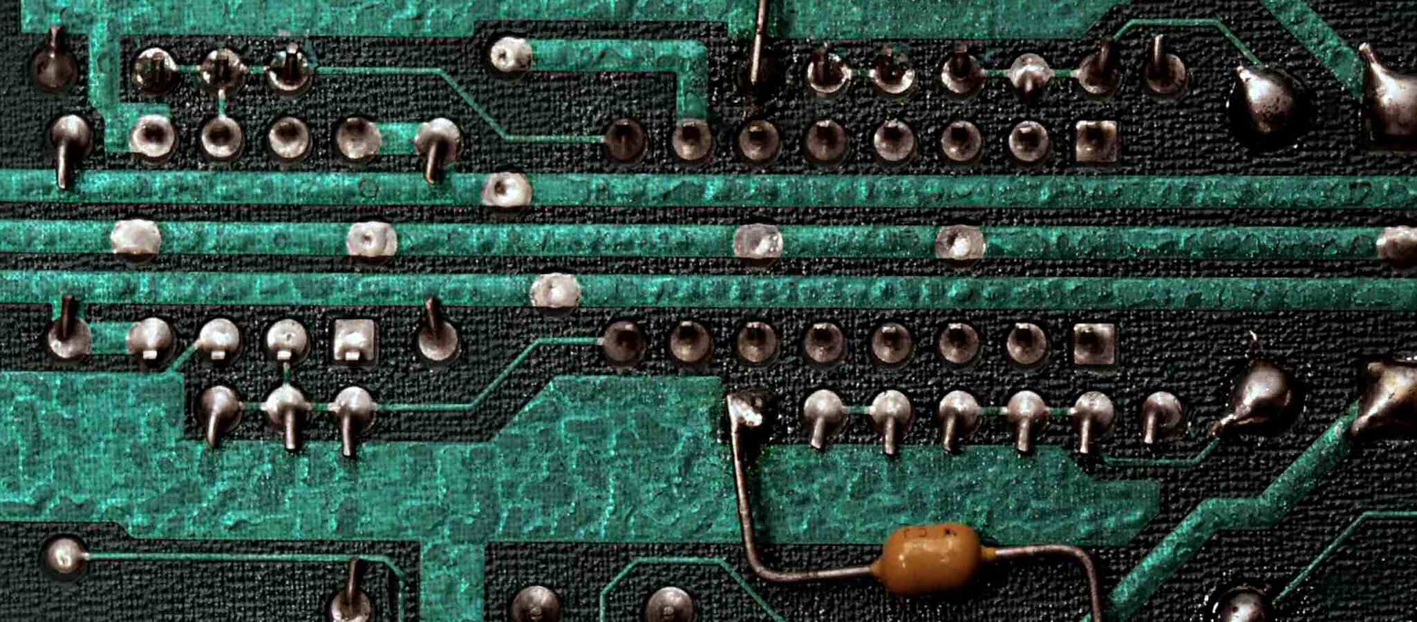 C−4E. 完成出力制御基板裏。余分なフラックスを落として、コート液を塗る。