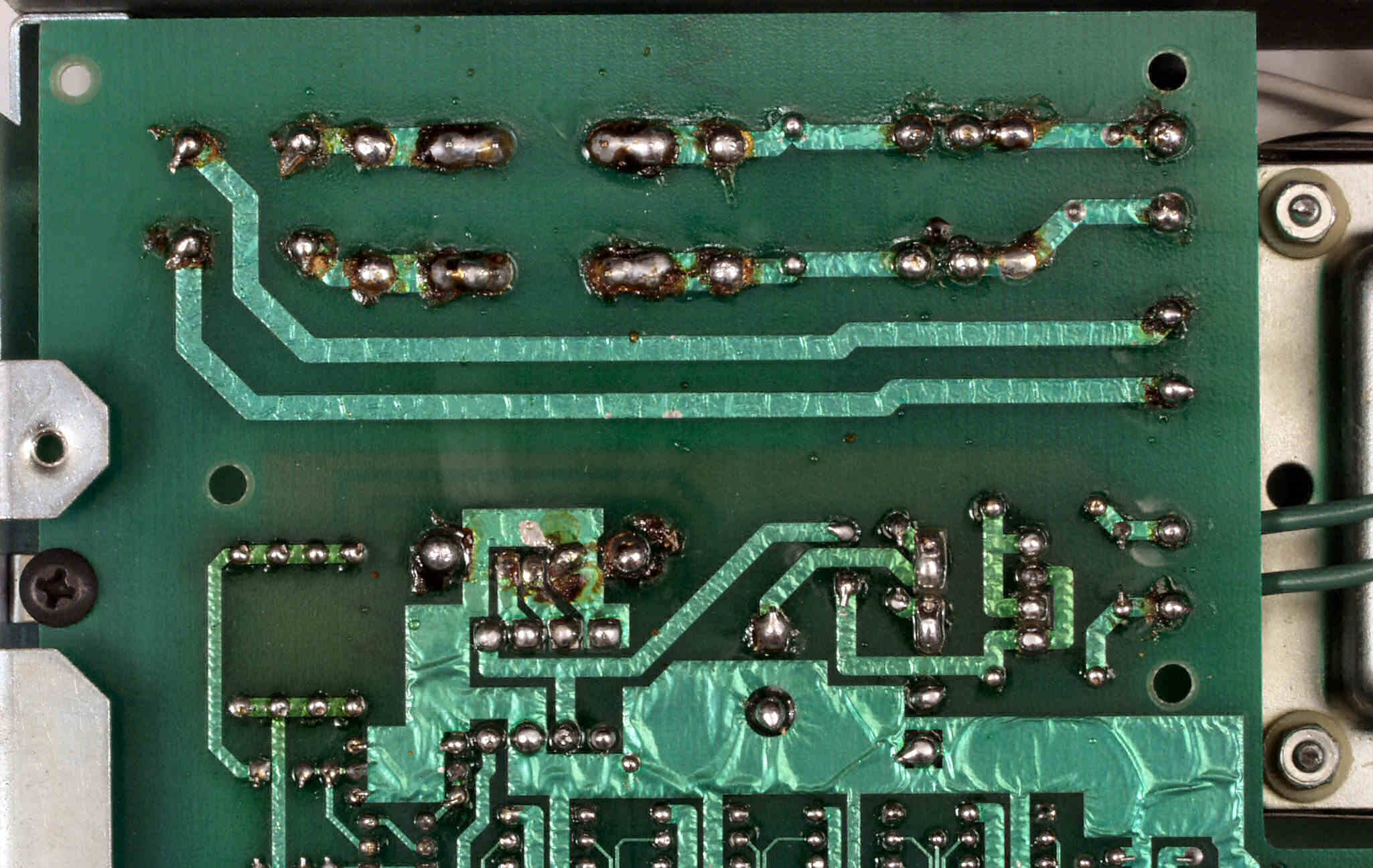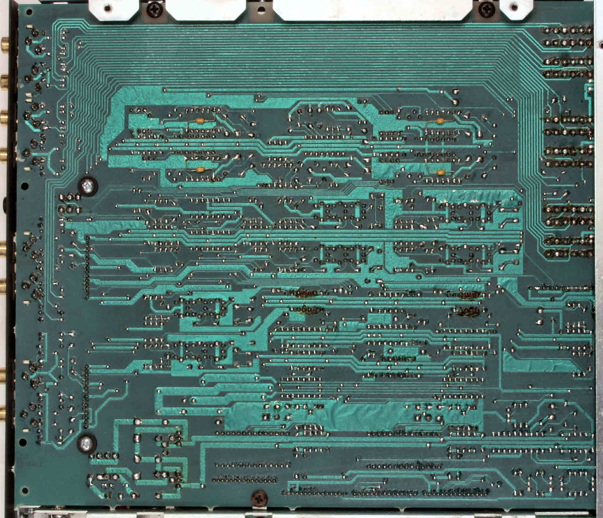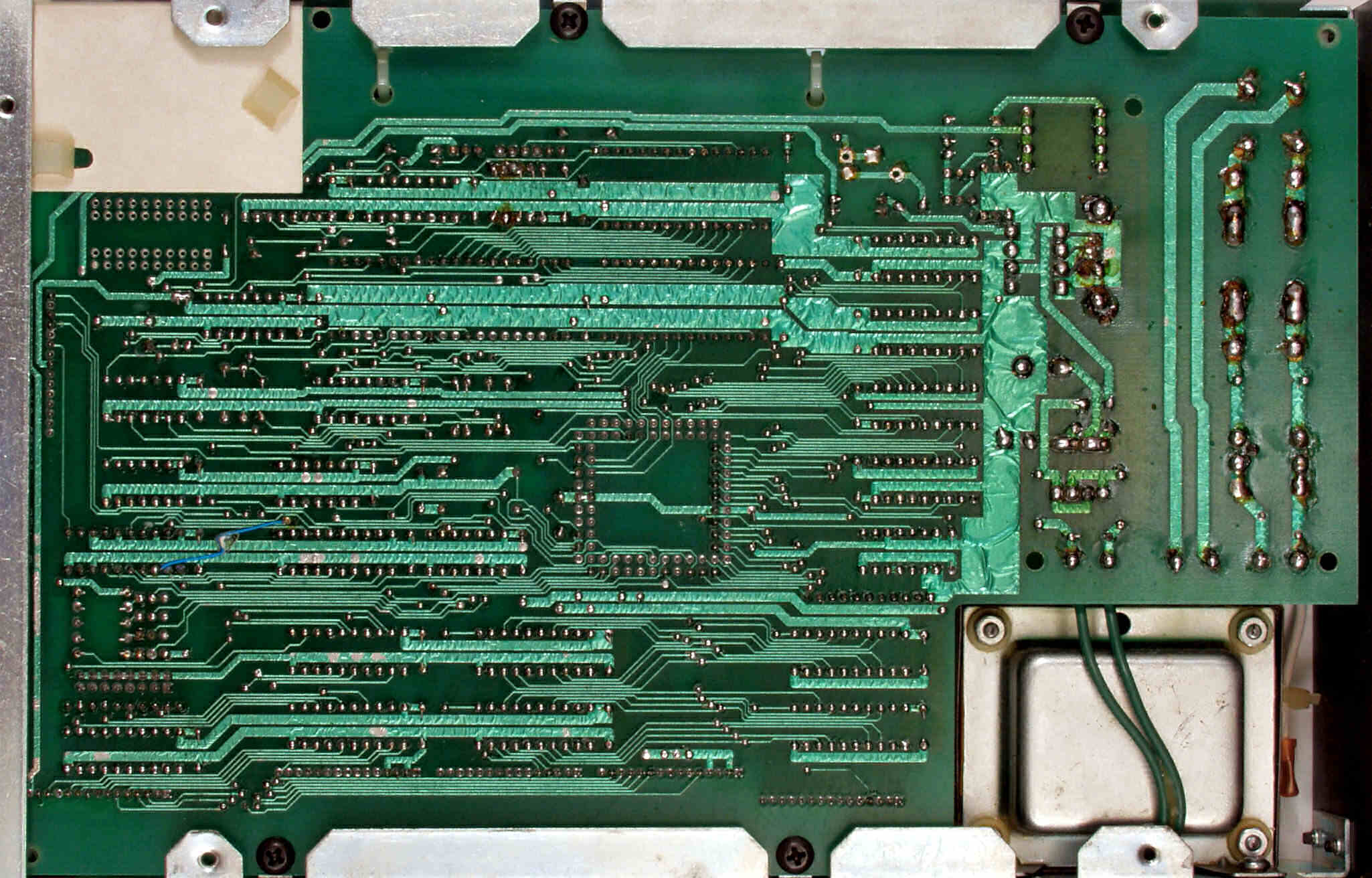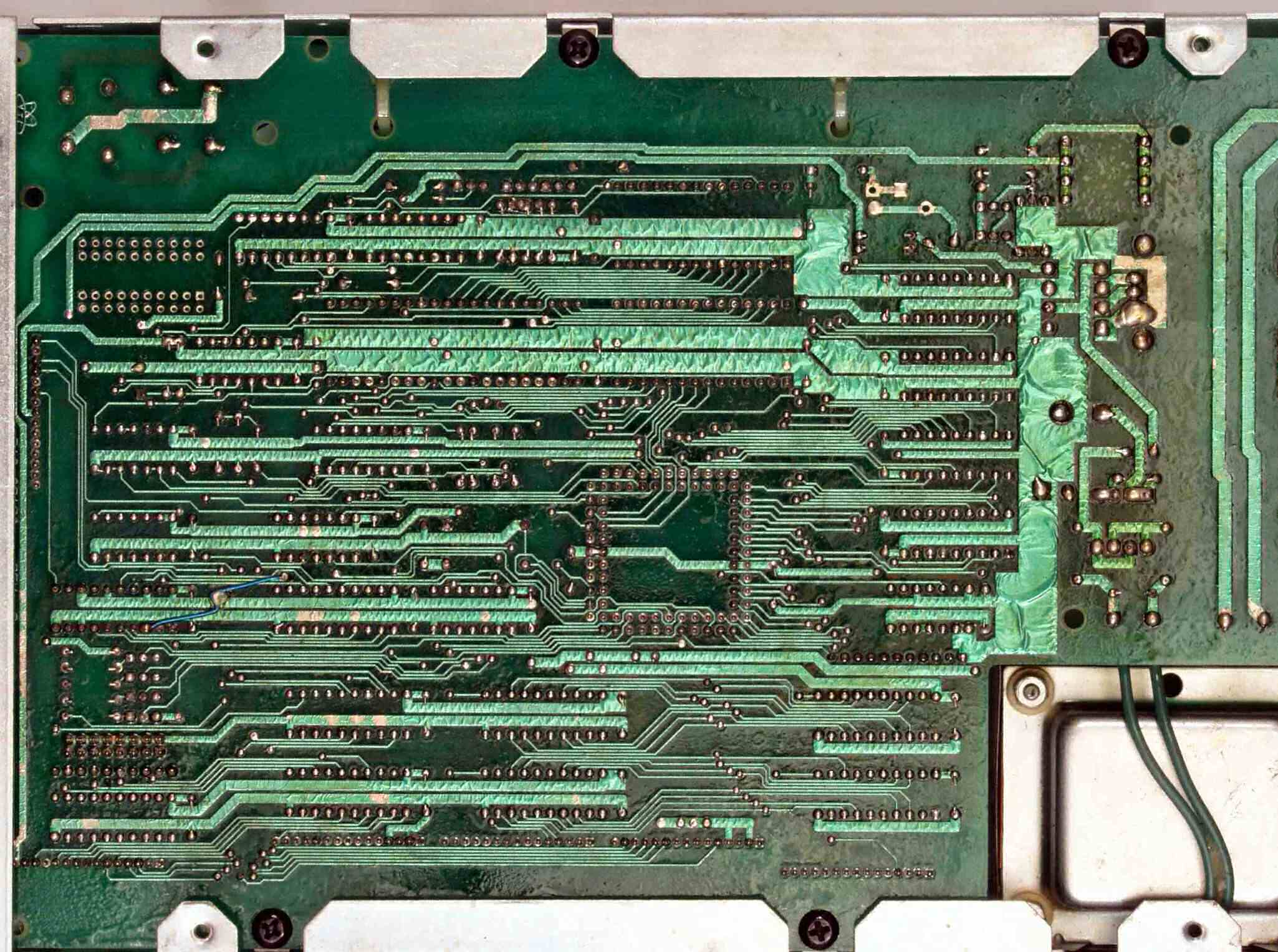C−3E. 修理完成後 メイン基板裏。余分なフラックスを落として、コート液を塗る。