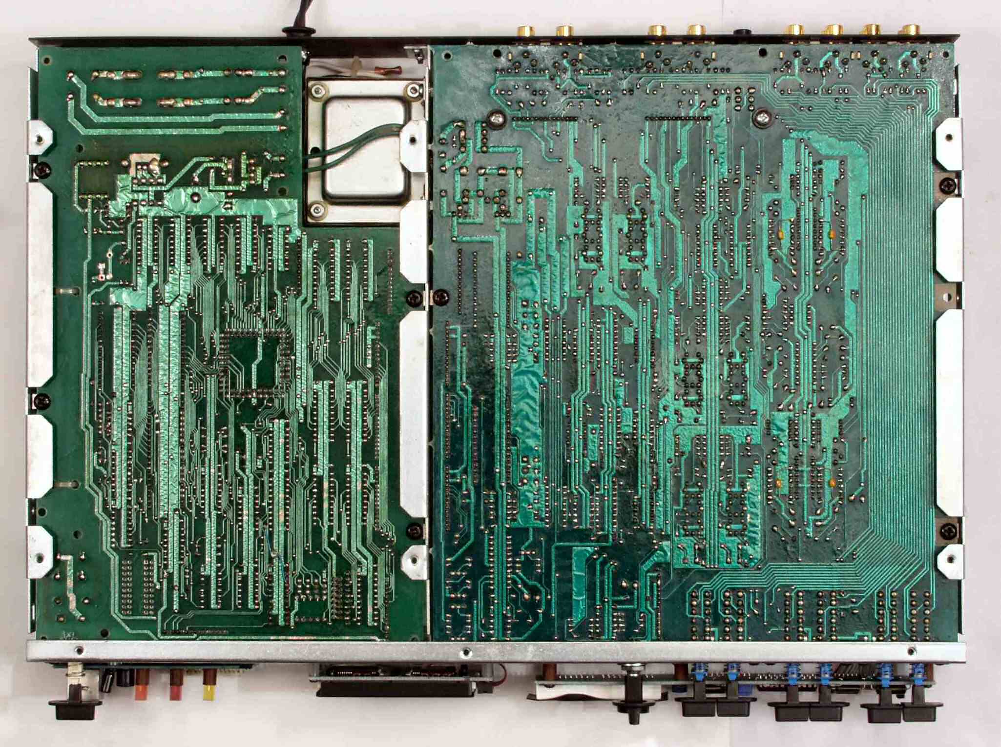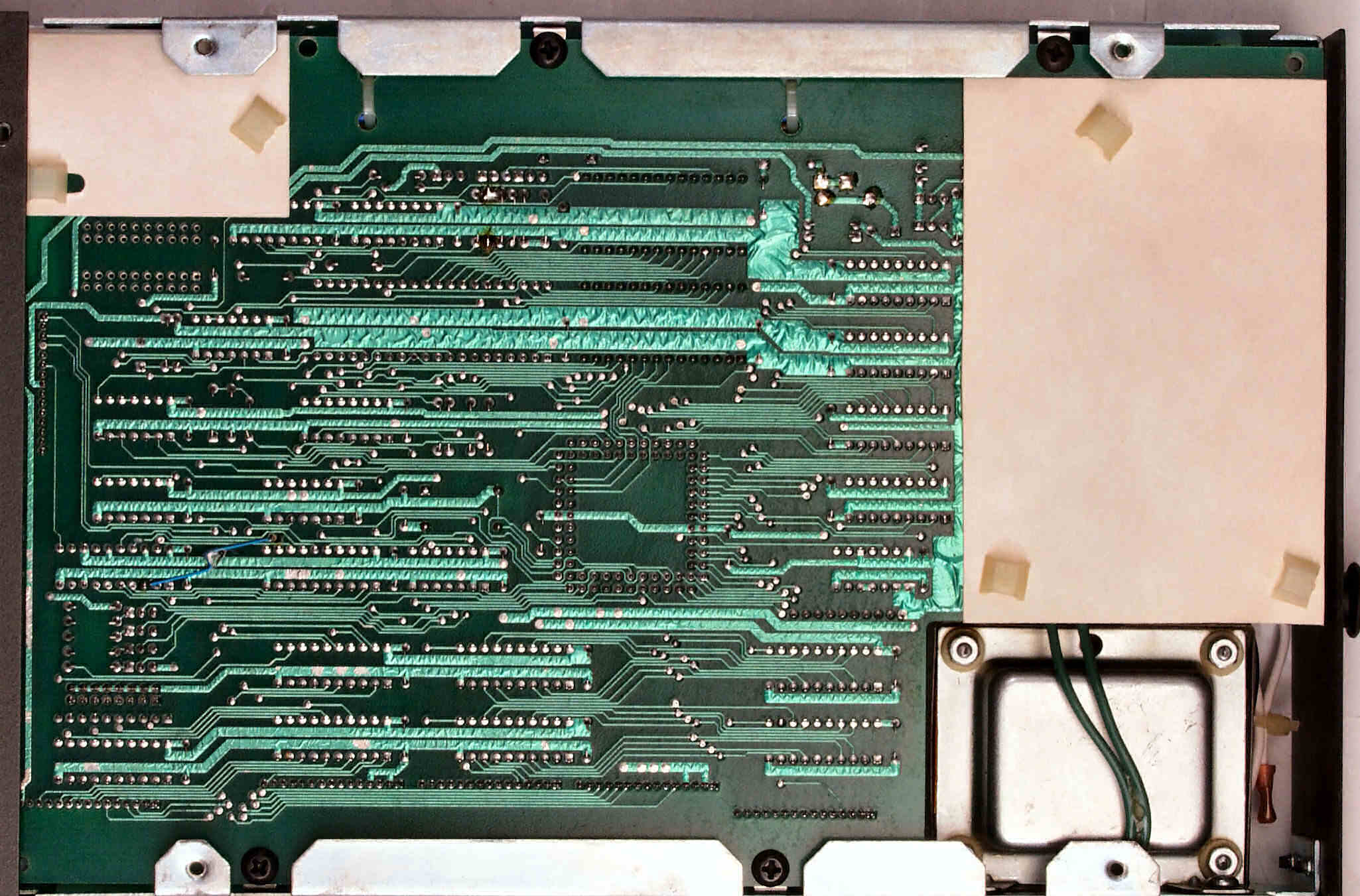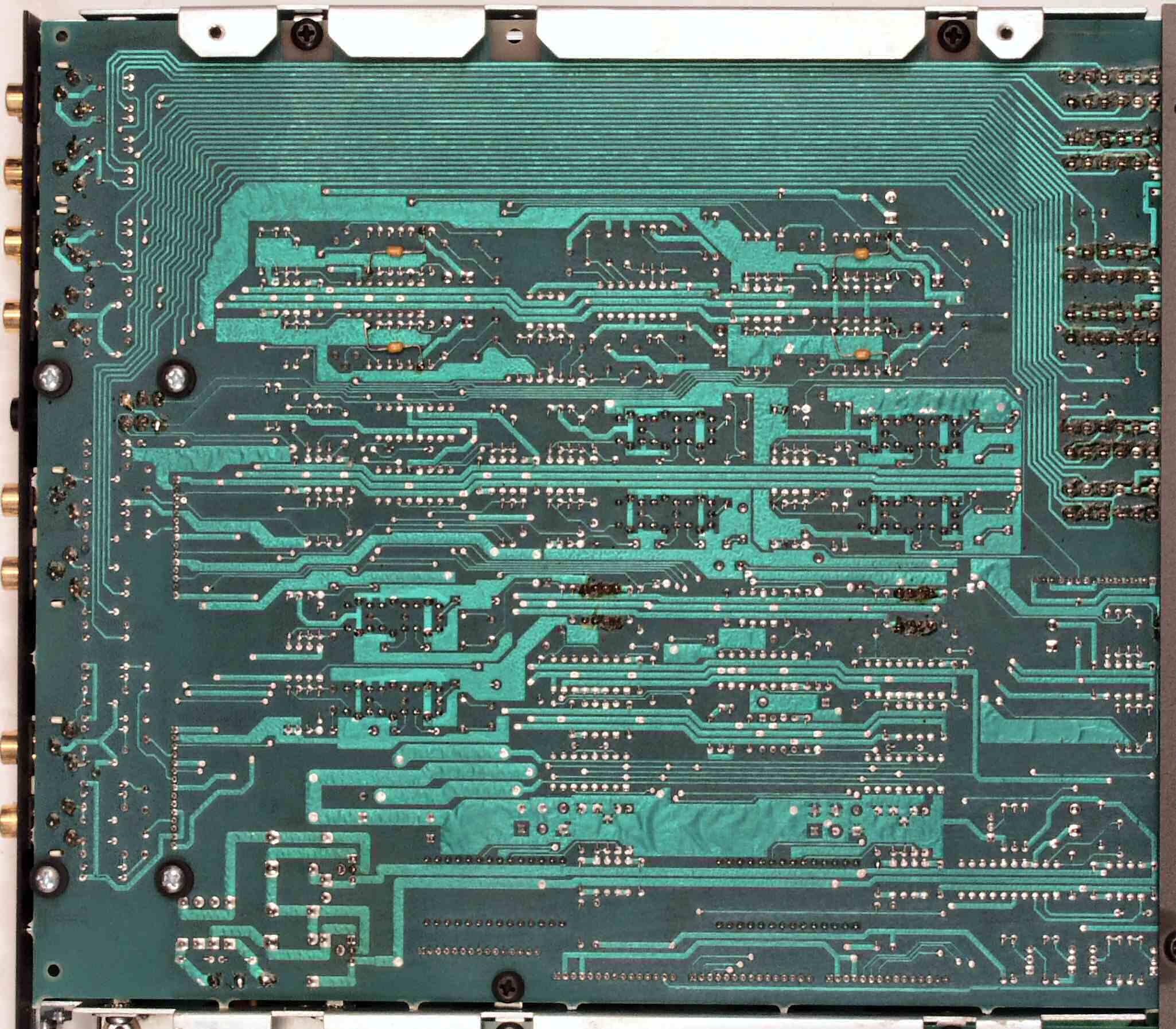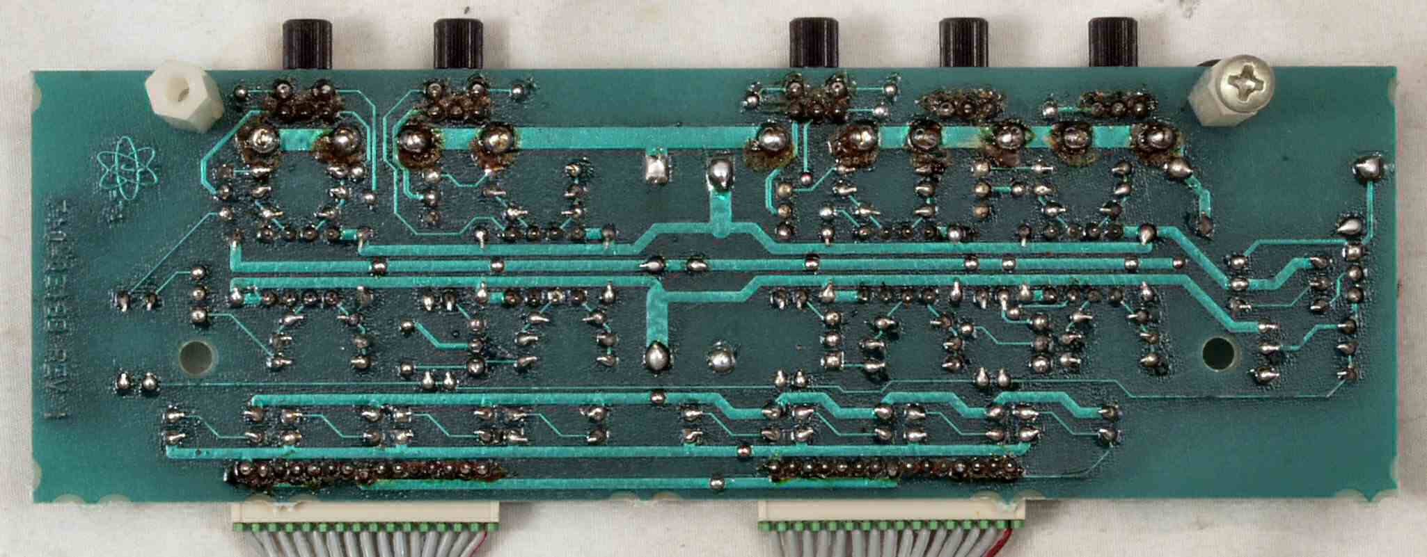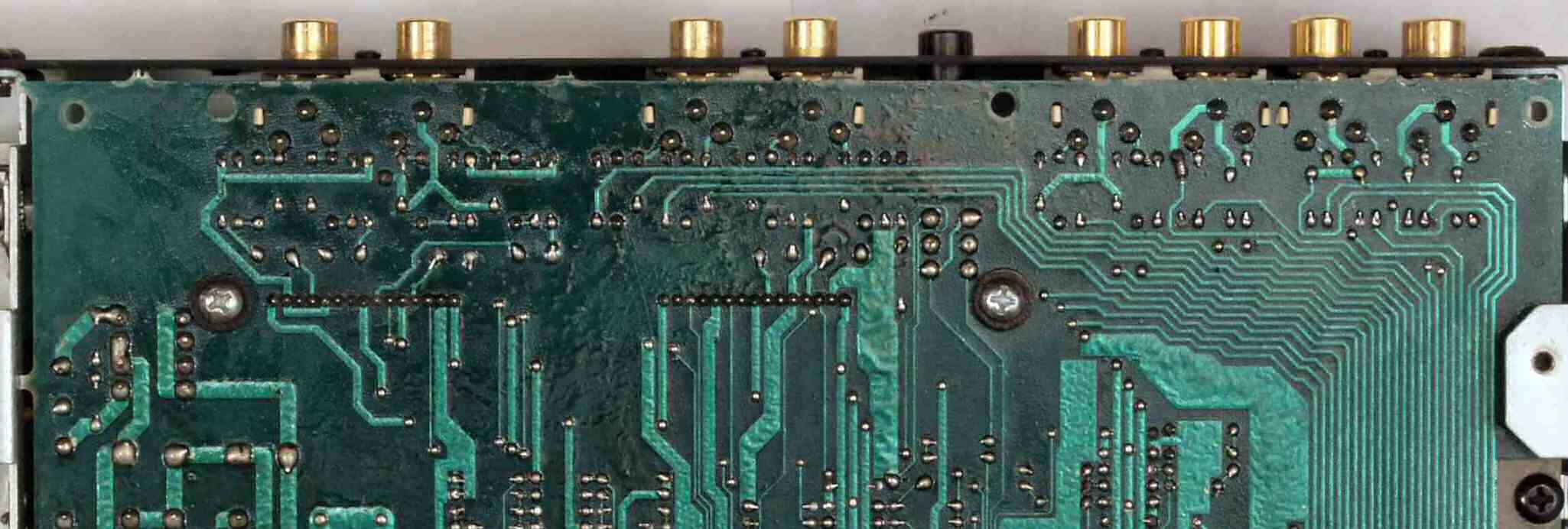 C−3E. 修理完成後 メイン基板裏。余分なフラックスを落として、コート液を塗る。