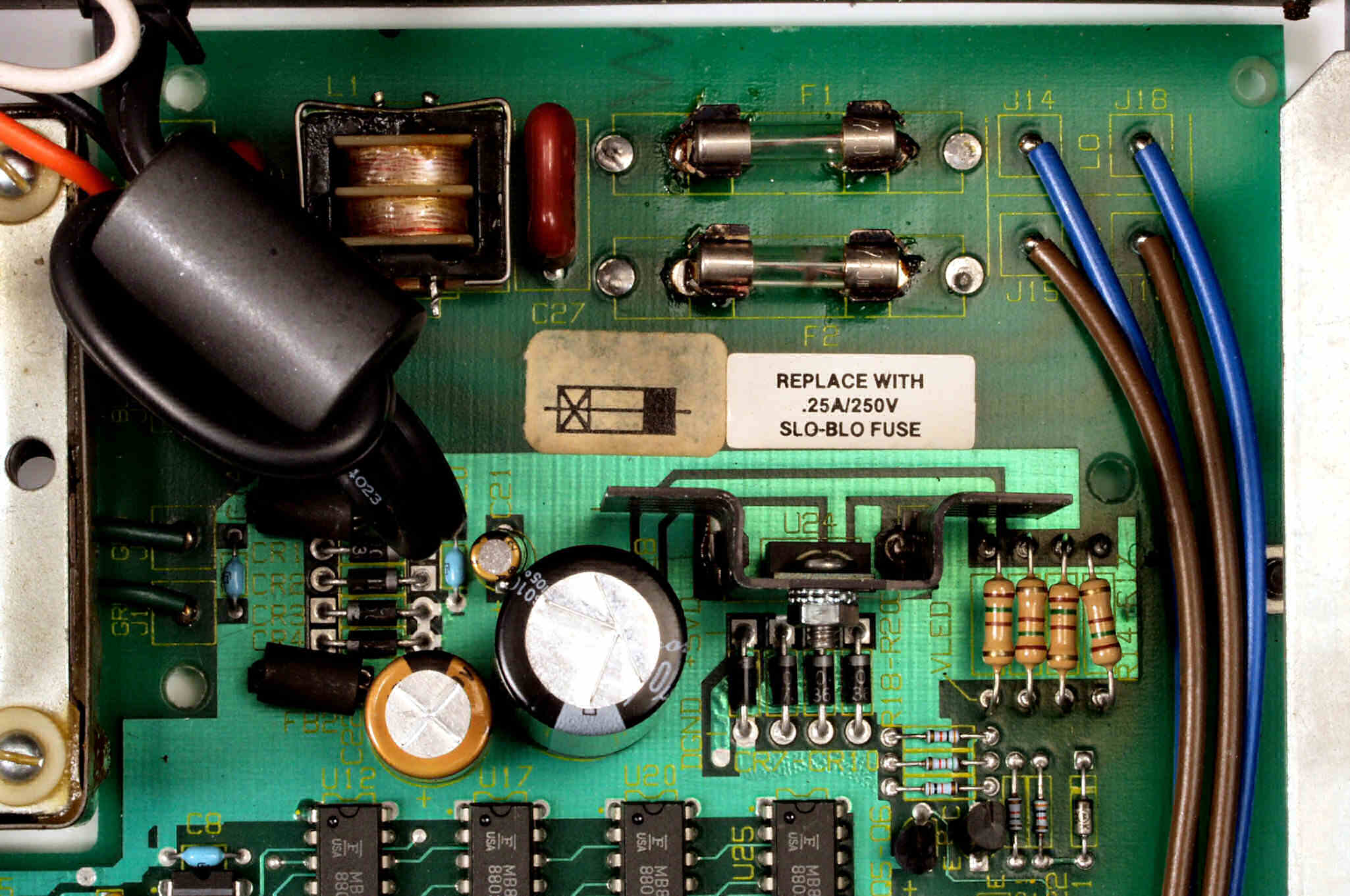 C−1B. 修理後 電源・制御基板 電解コンデンサー5個交換