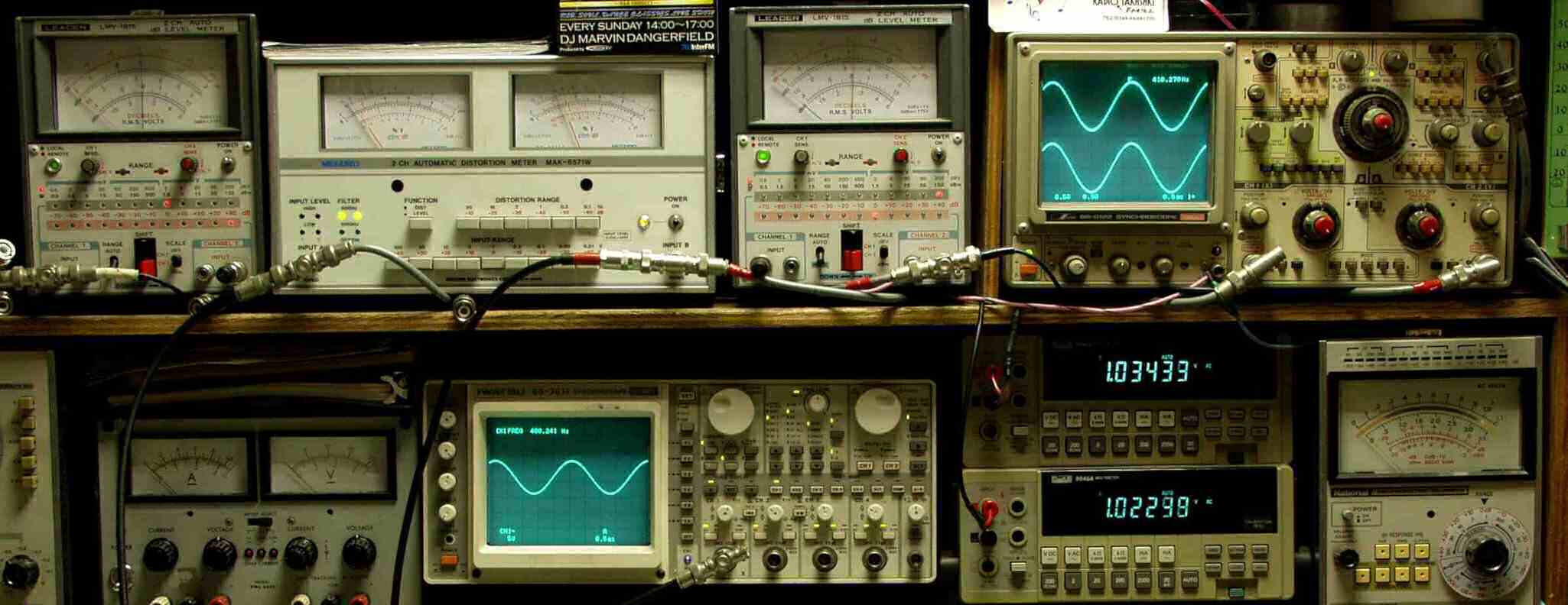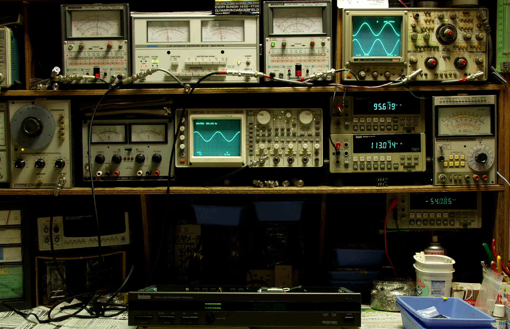 上段中左 歪み率計=出力の歪み率測定 左メータ=L出力、右メータ=R出力
