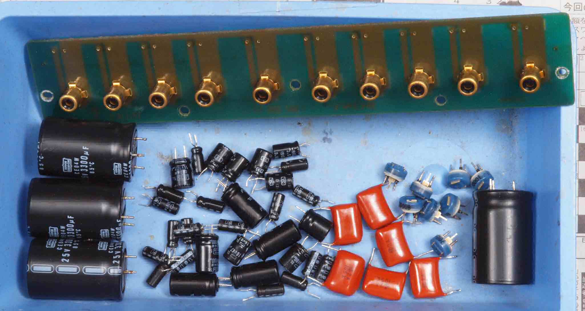 | C72. 交換部品。 左=付いていた25V/3300μ、右=50V/4700μに増量。 | ||||||||||||||||||||||||||||||||||||