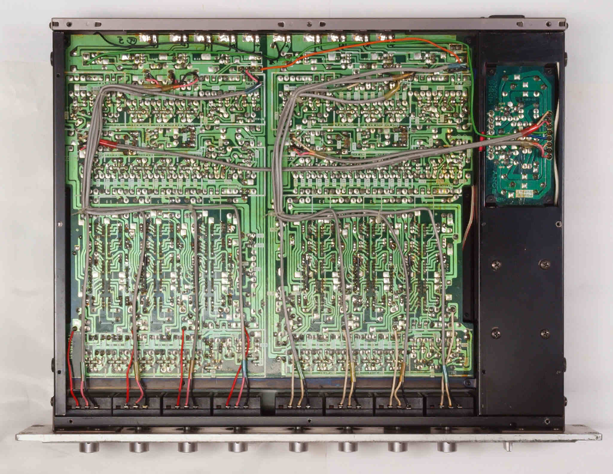 | C15. 修理完成後 右側アンプ基板裏。余分なフラックスを落として洗浄、コート液を塗る。 | ||||||||||||||||||||||||||||||||||||