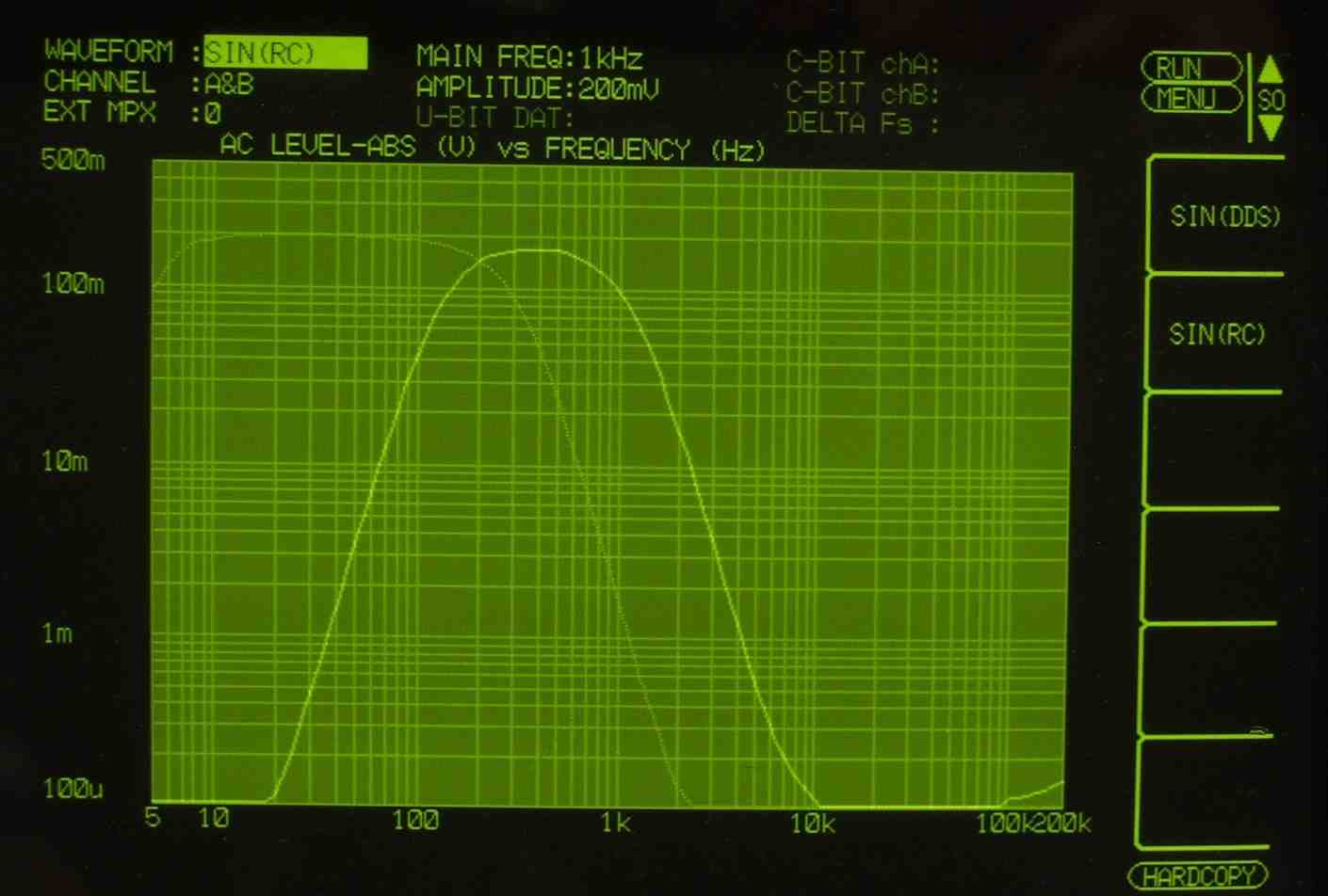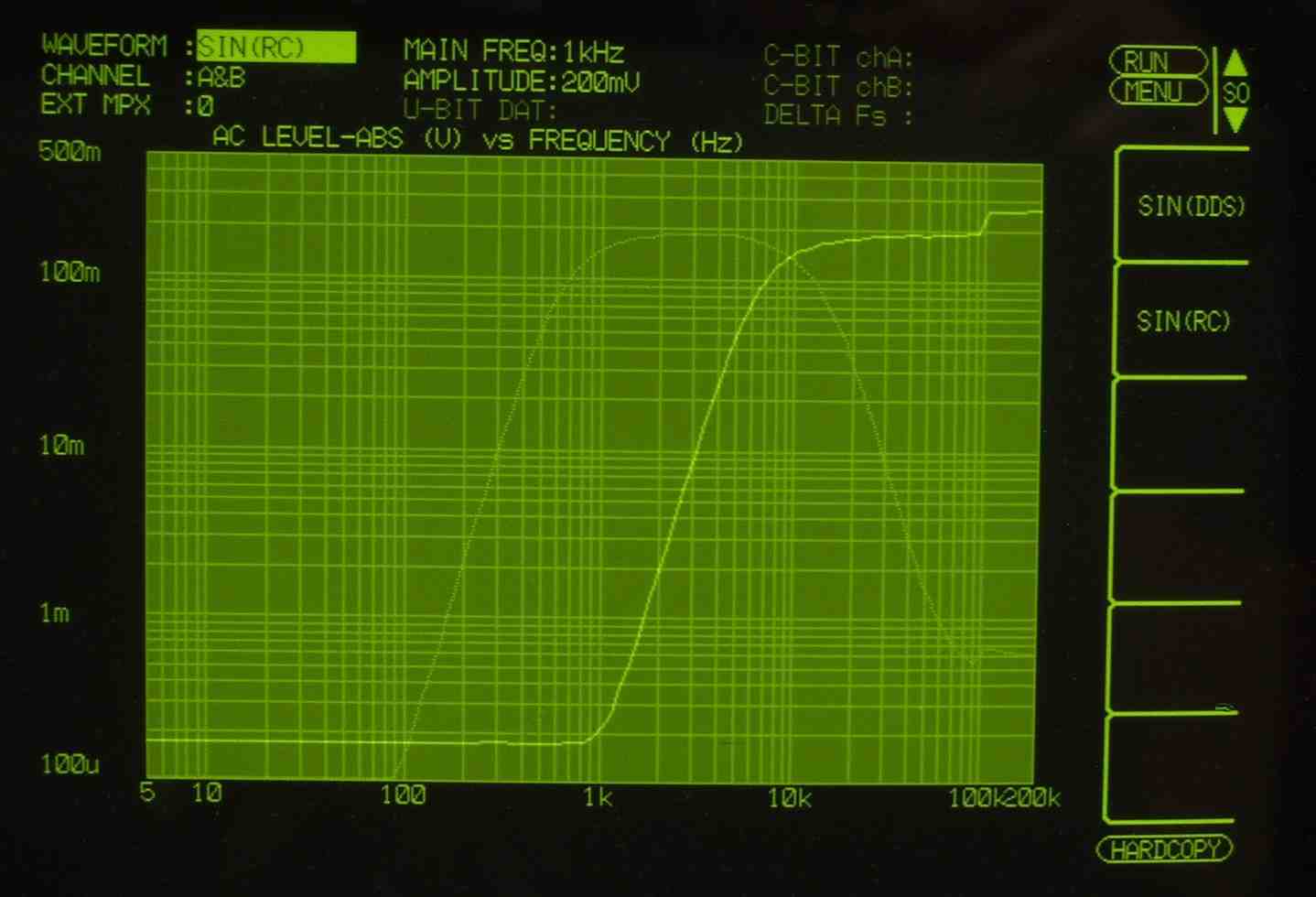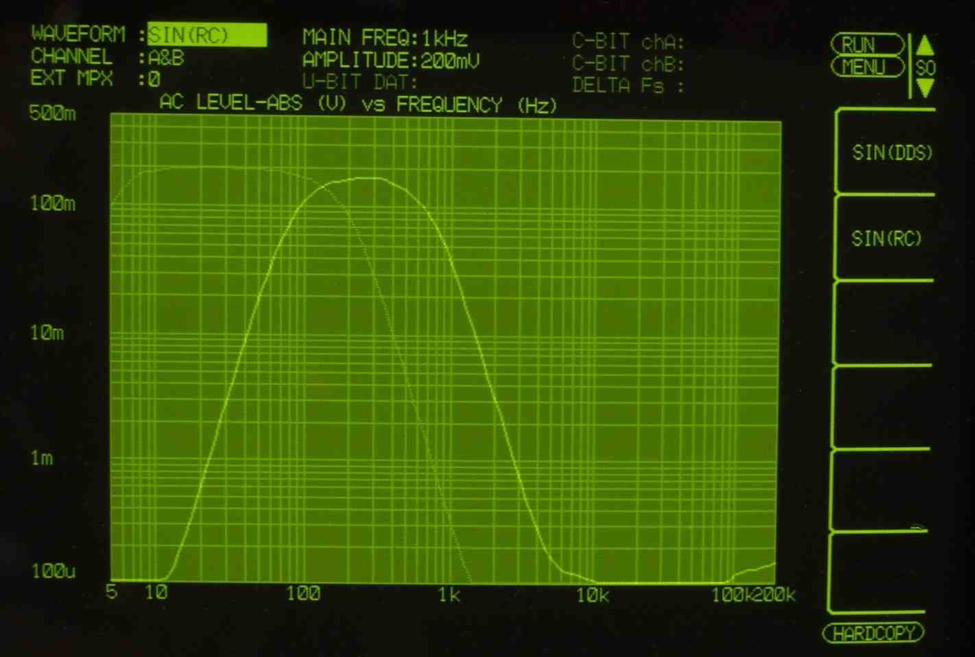| E. 調整・測定。 画像をクリックすると、大きく(横幅2050ドット)表示されます。 出力VRは最大位置、 この様なアクセサリーの入力レベルは150〜200mVにするのが良いです。 |