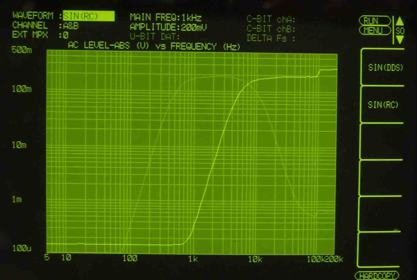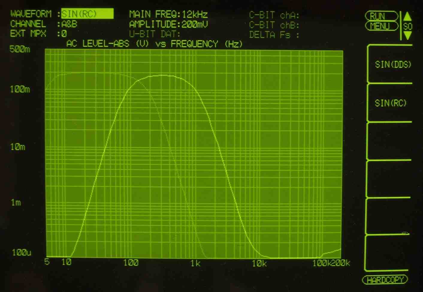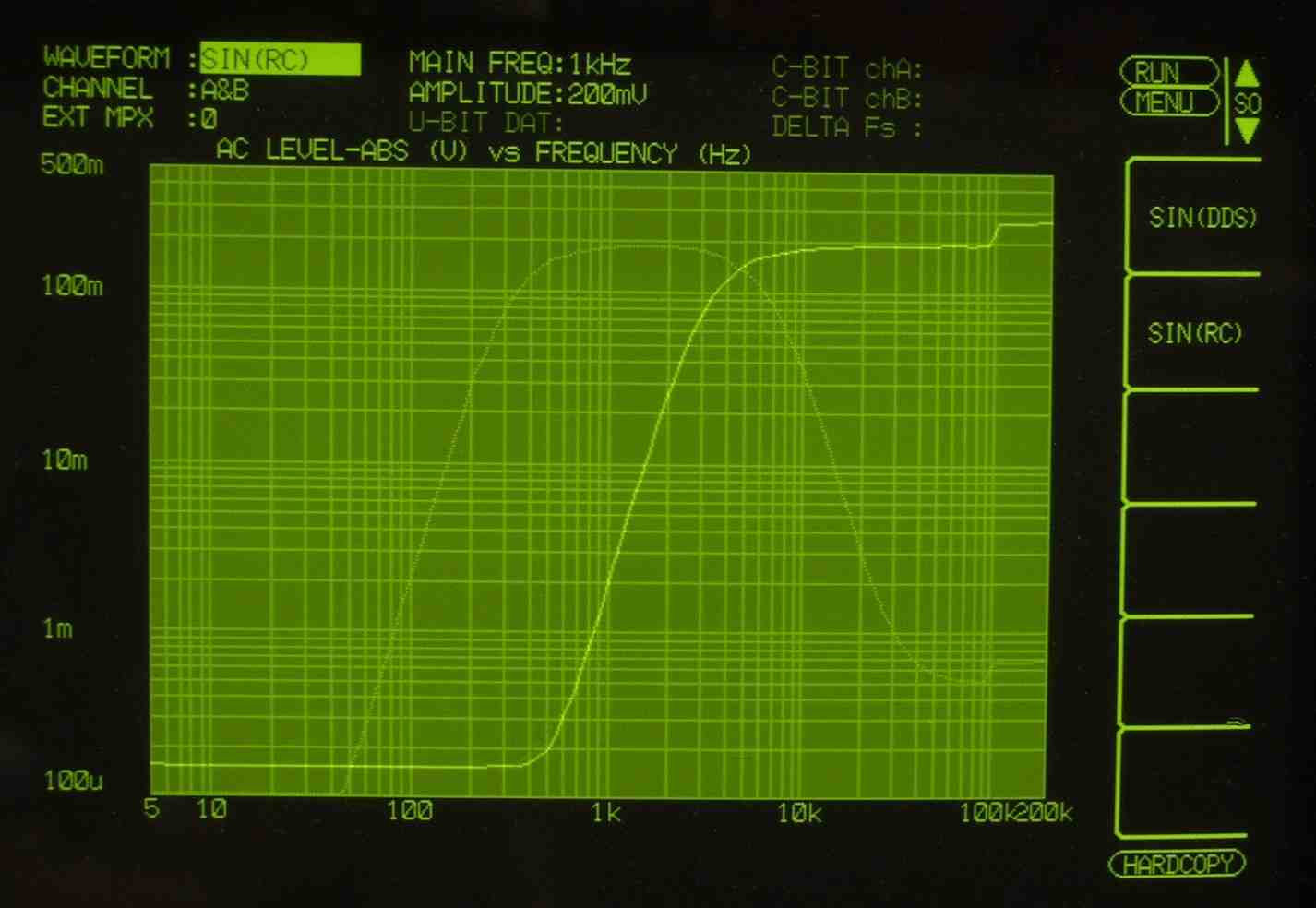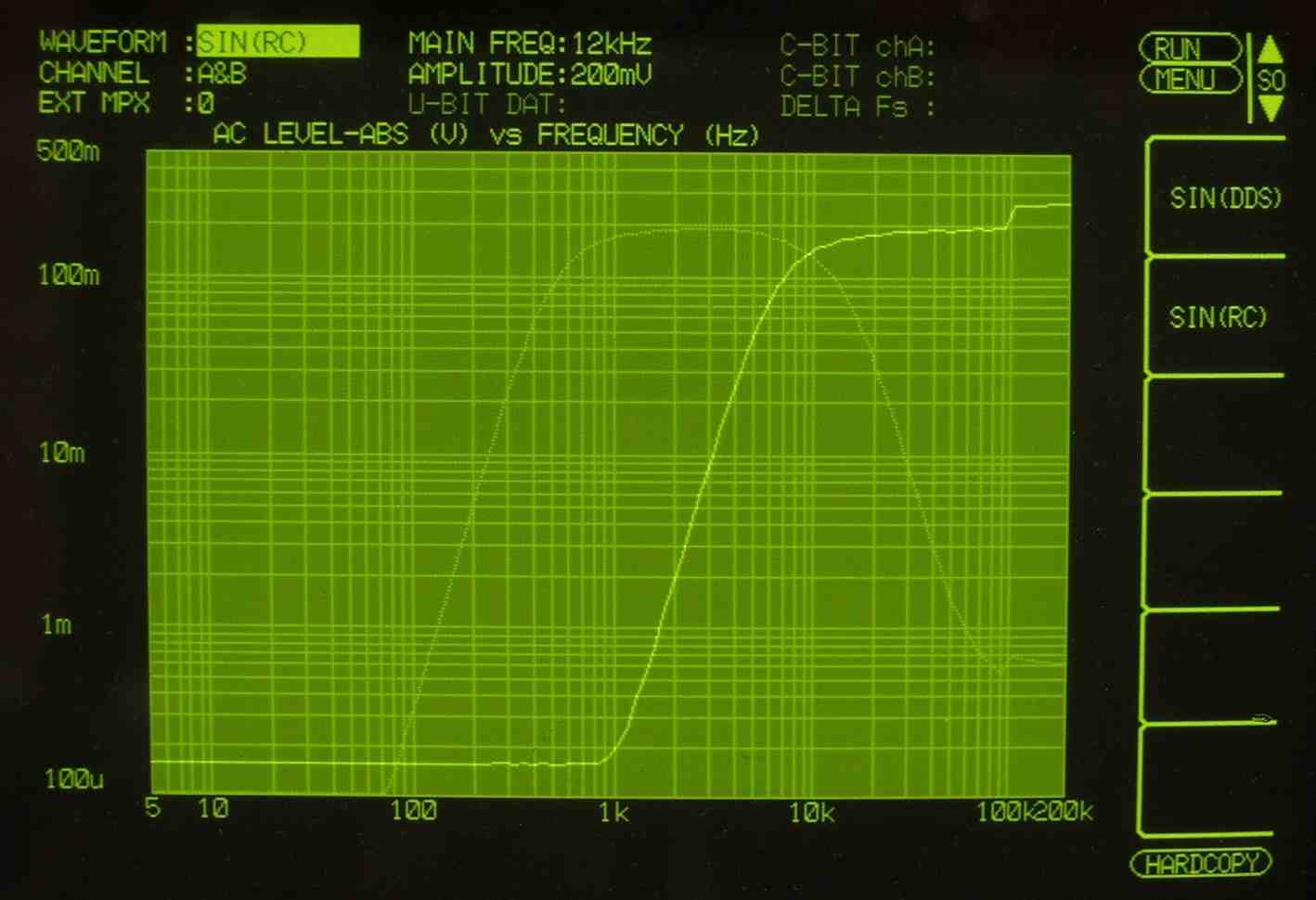 | E. 調整・測定。 画像をクリックすると、大きく(横幅2050ドット)表示されます。 出力VRは最大位置、 この様なアクセサリーの入力レベルは150〜200mVにするのが良いです。 |