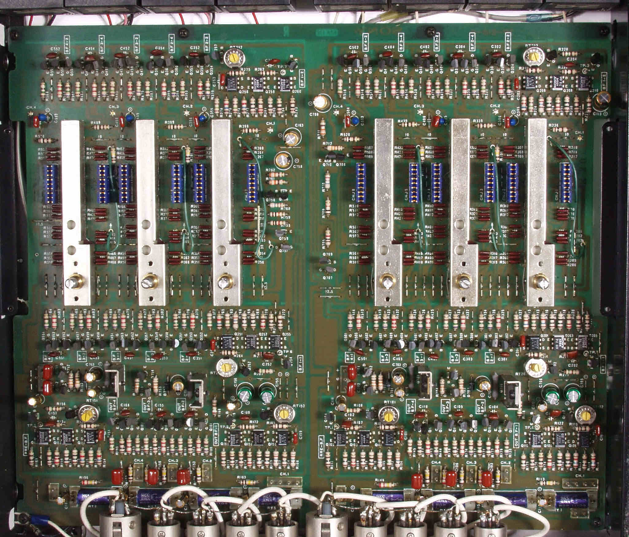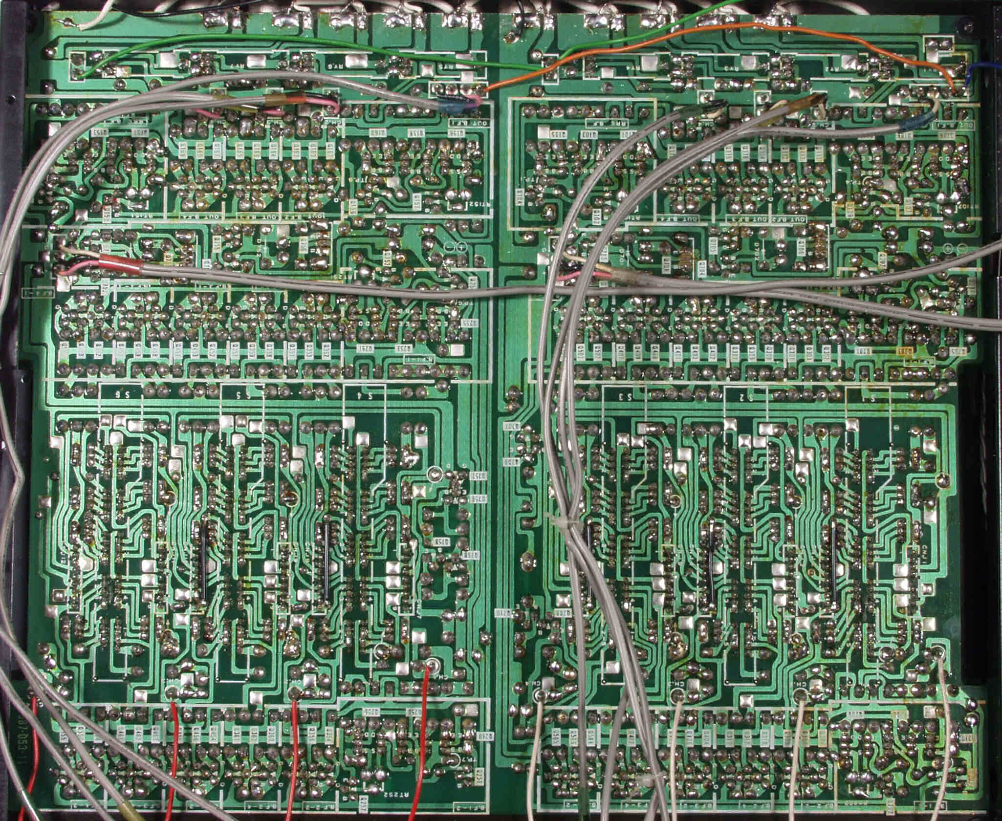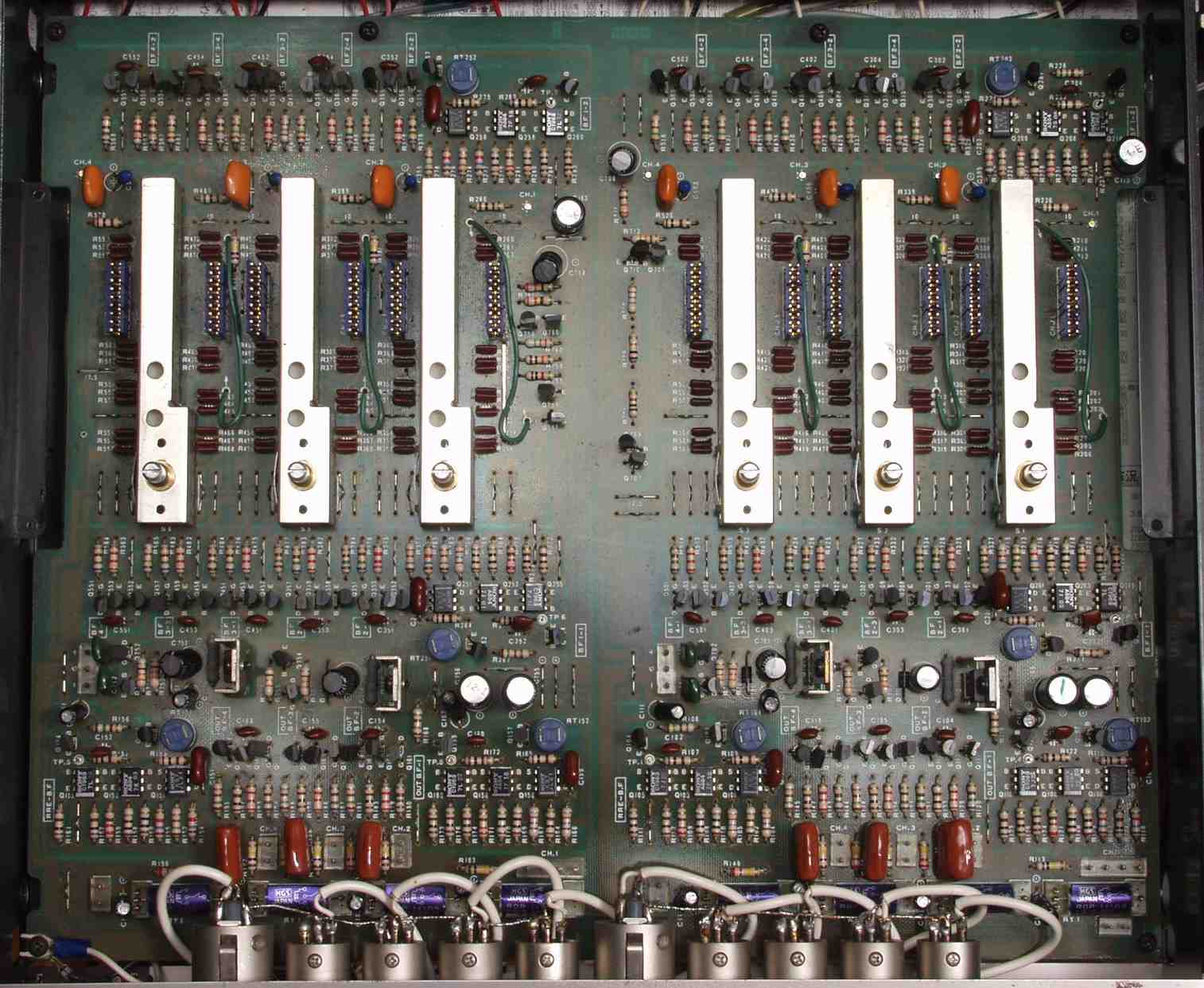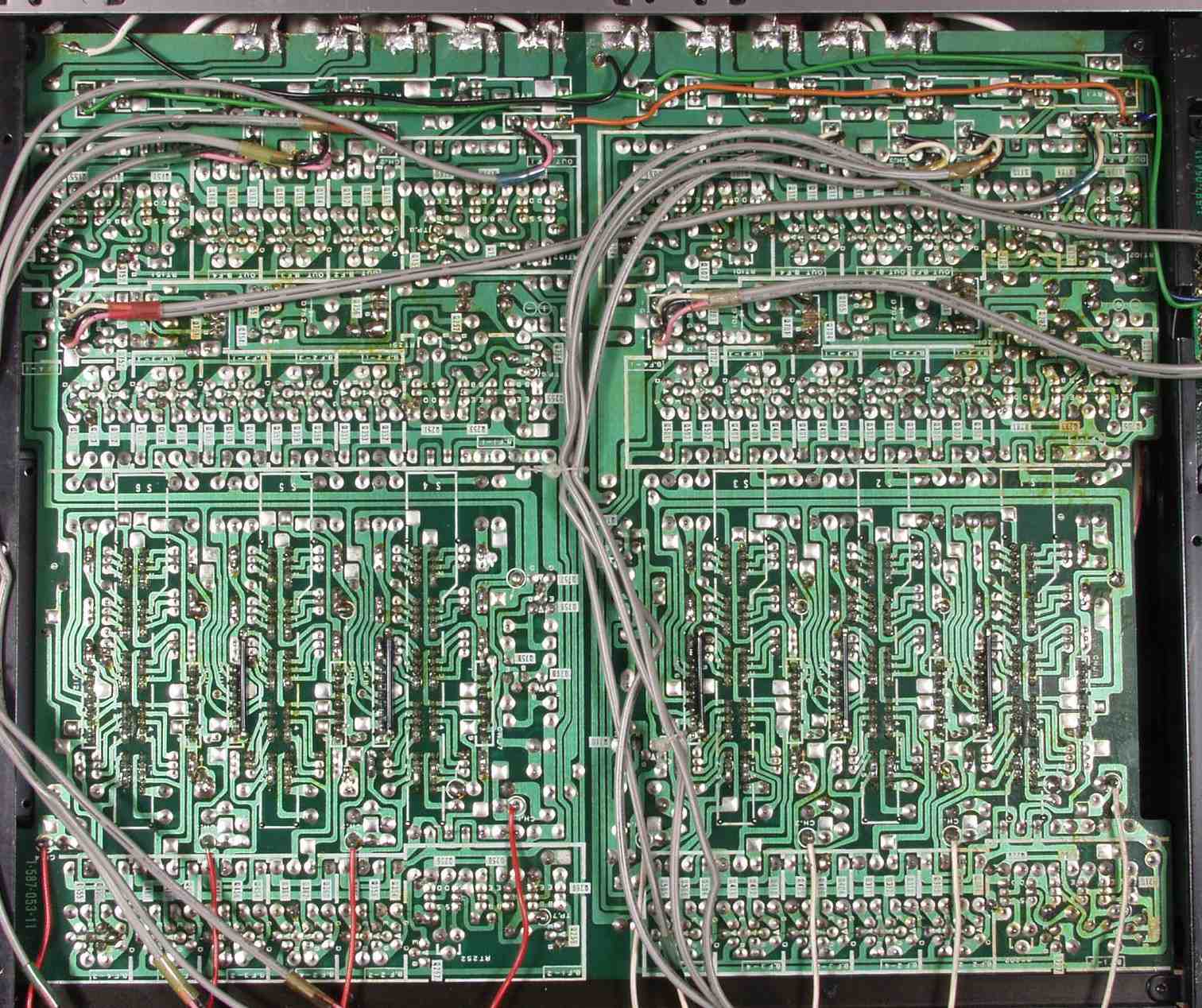 | C12. 修理後 メイン基板。 半固定VR8個、電解コンデンサー26個、フイルムコンデンサー32個交換。 | ||||||||||||||||||||||||||||||||||||