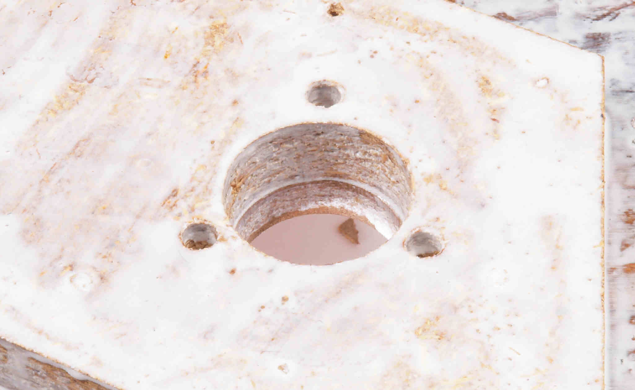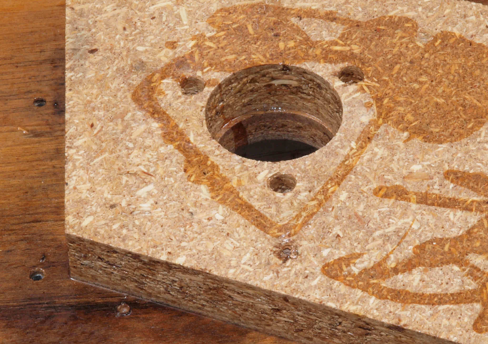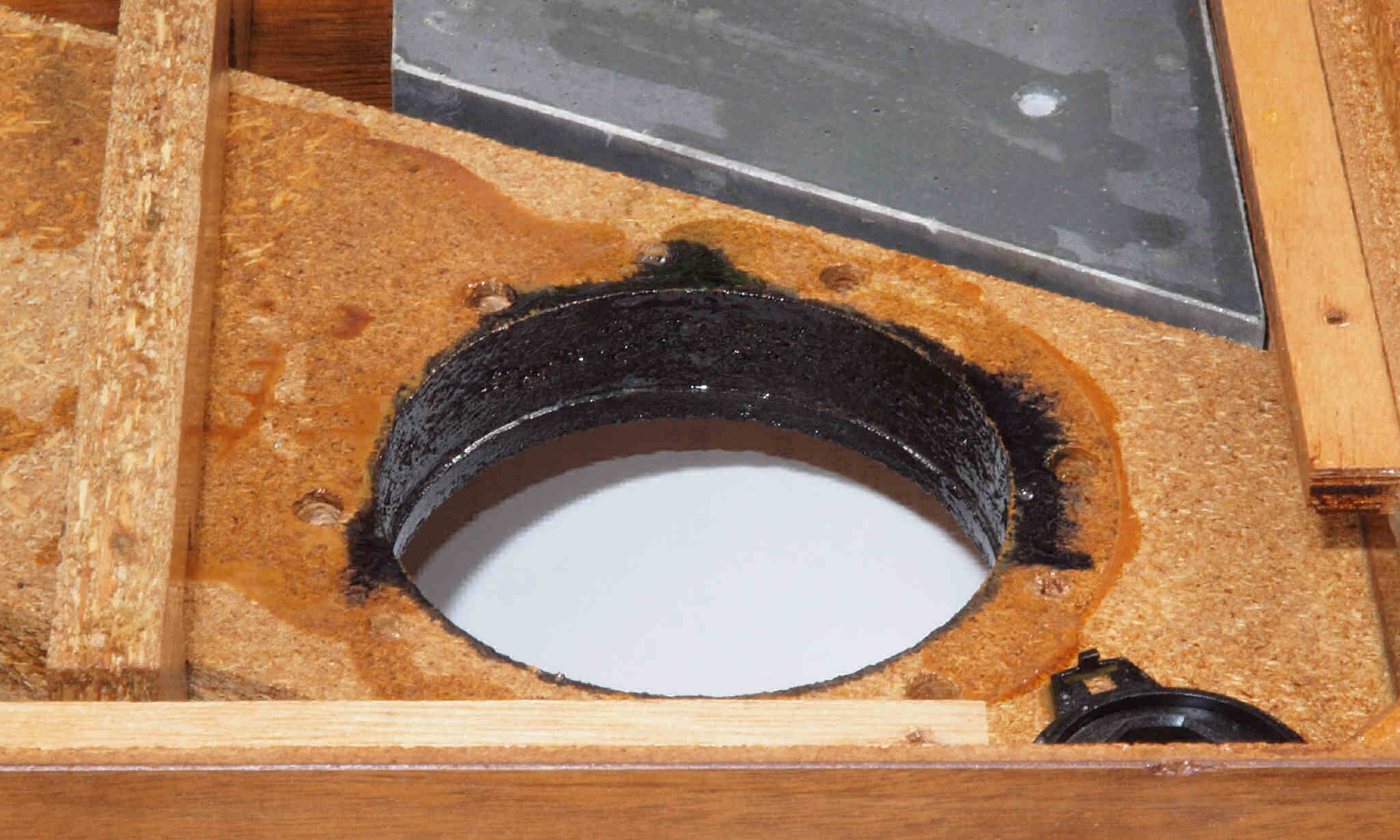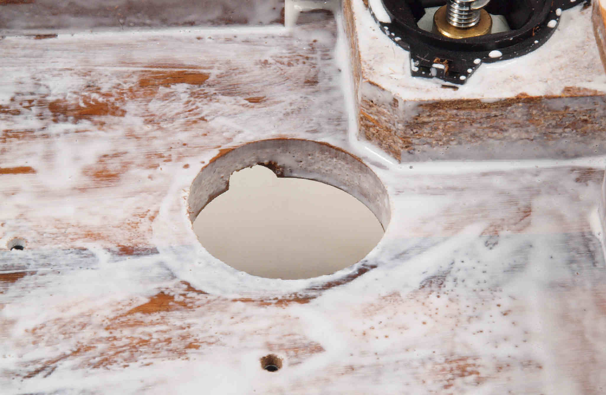 | W26. 修理後 アーム取付穴。 乾燥後さらにウレタン塗料を塗る。 | ||||||||||||||||||||||||||||||