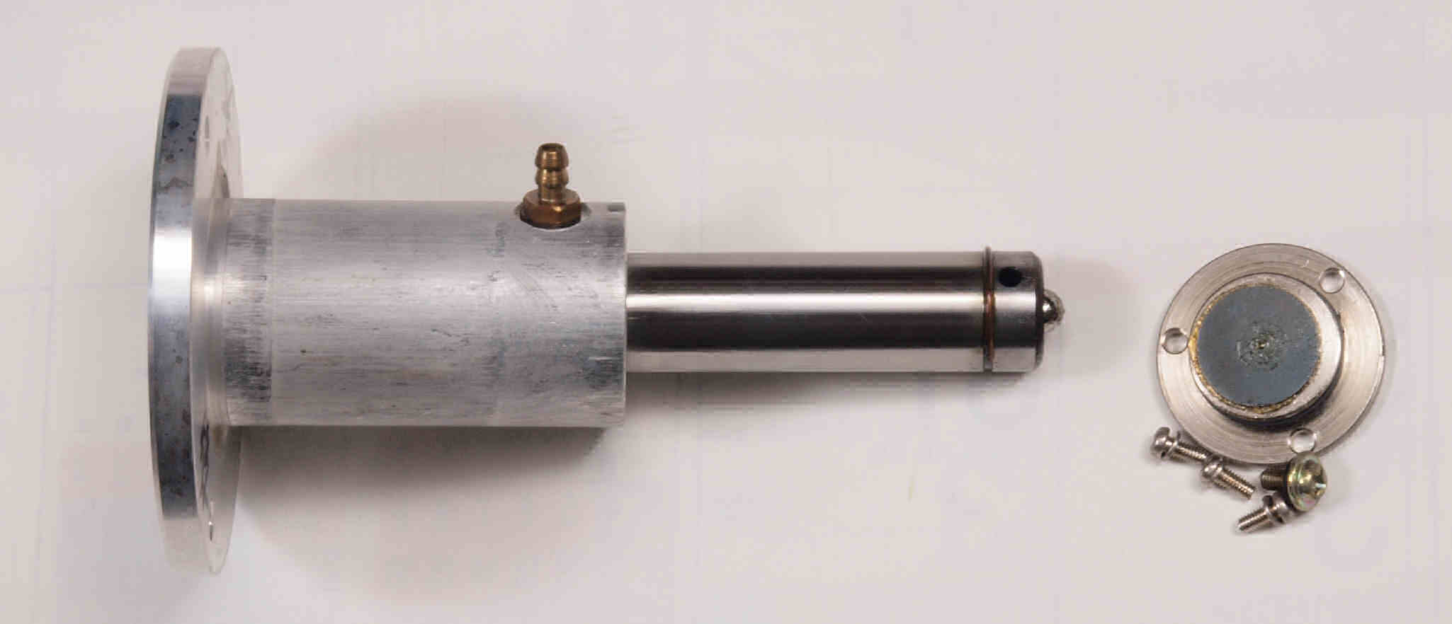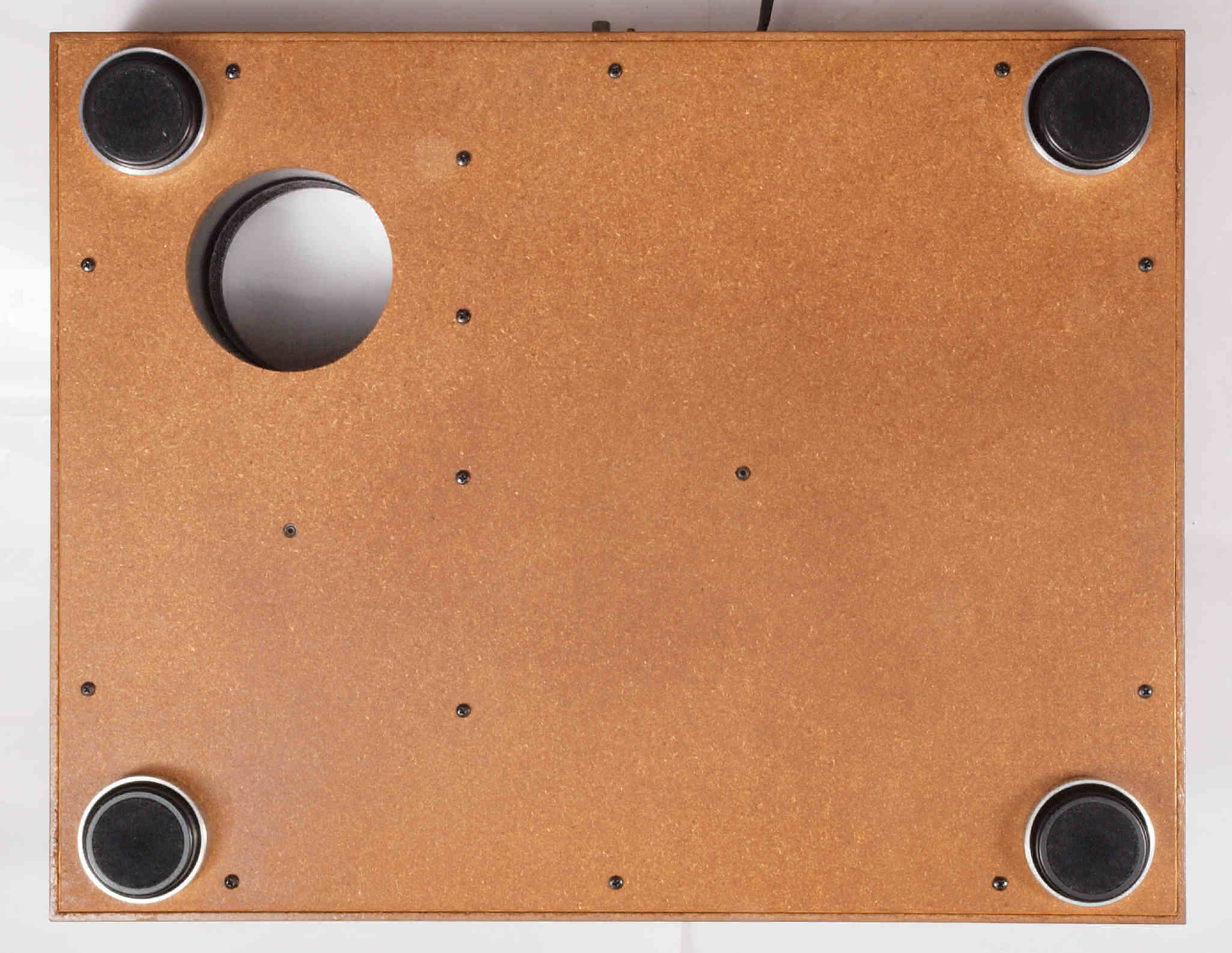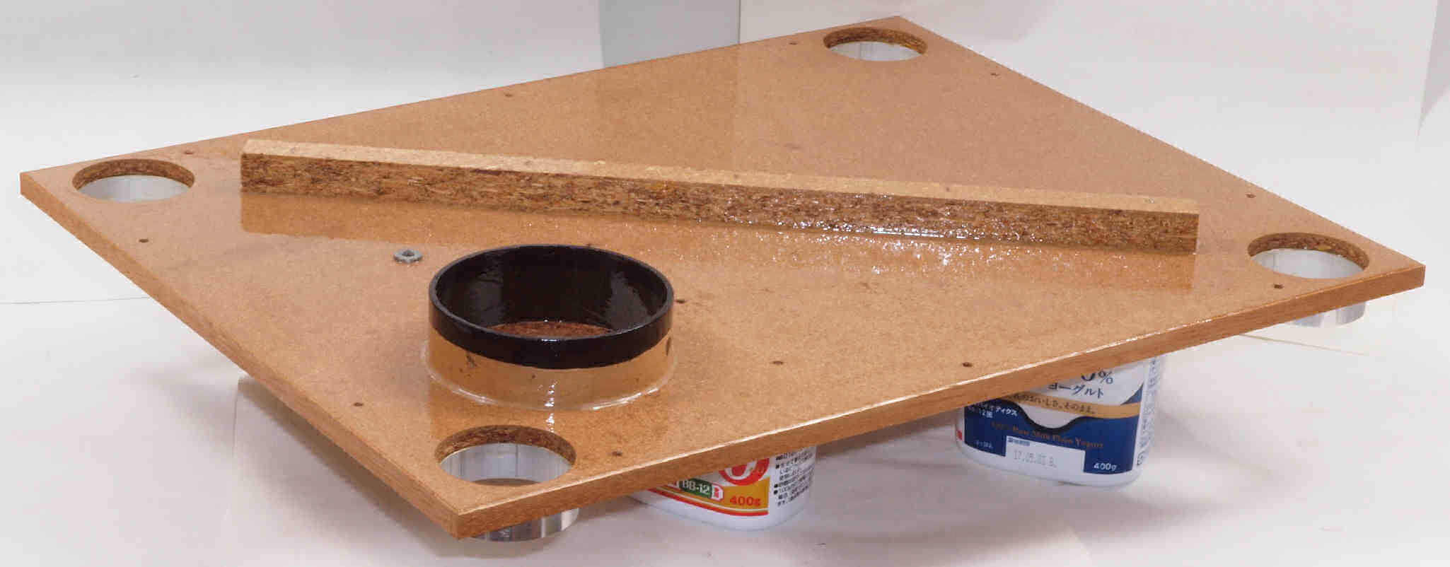 | A16. 点検中 上から見る。ユーザはタンテーブル(プラッター)が外せないので「かいものを」入れて固定。 このタンテーブル(プラッター)がアルミ製で軽いので、軸への負担は少ない。 |