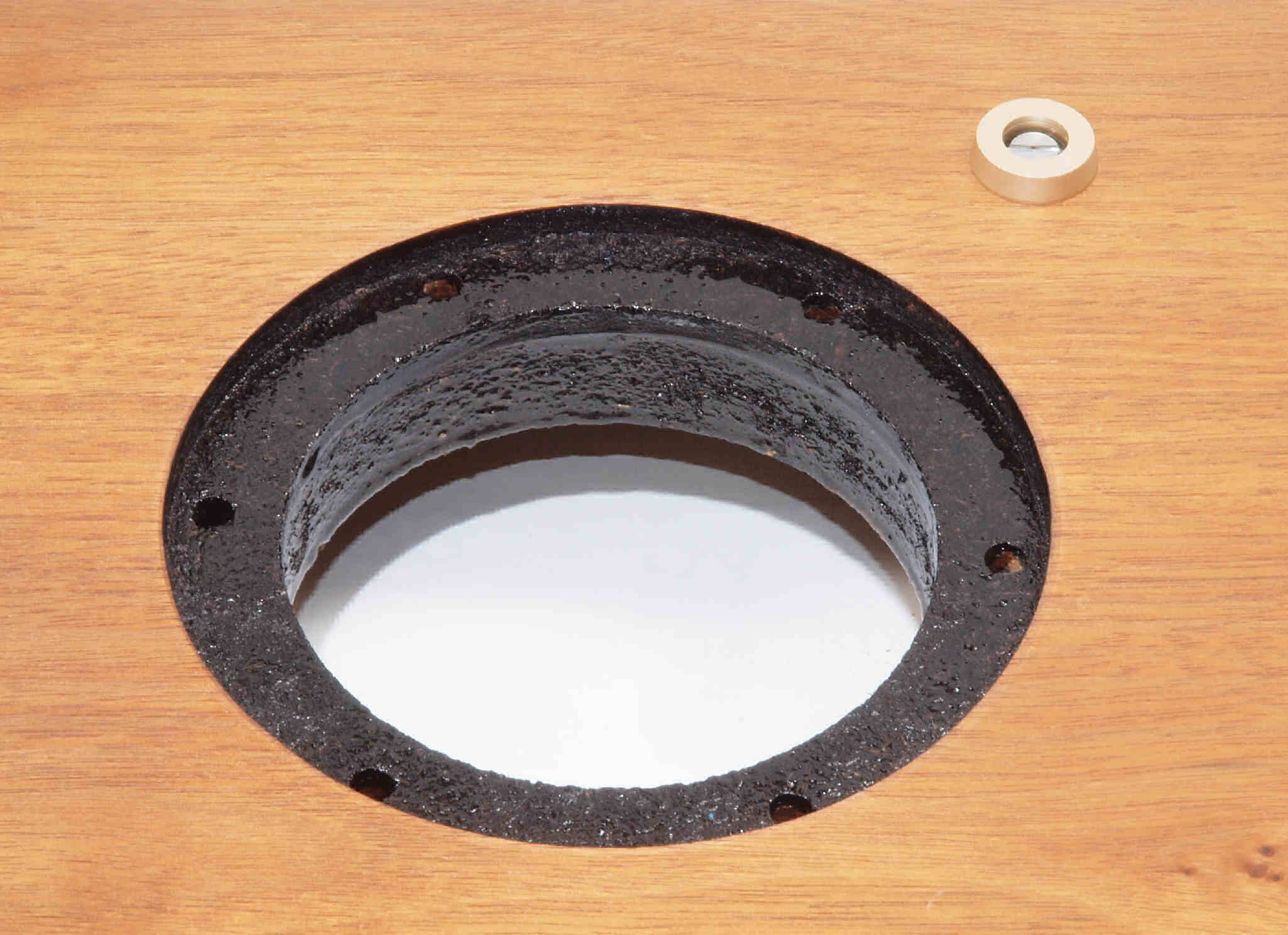 | W33. 修理後 プラッター軸受取付穴。 乾燥後さらにウレタン塗料を塗る。 | ||||||||||||||||||||||||||||||