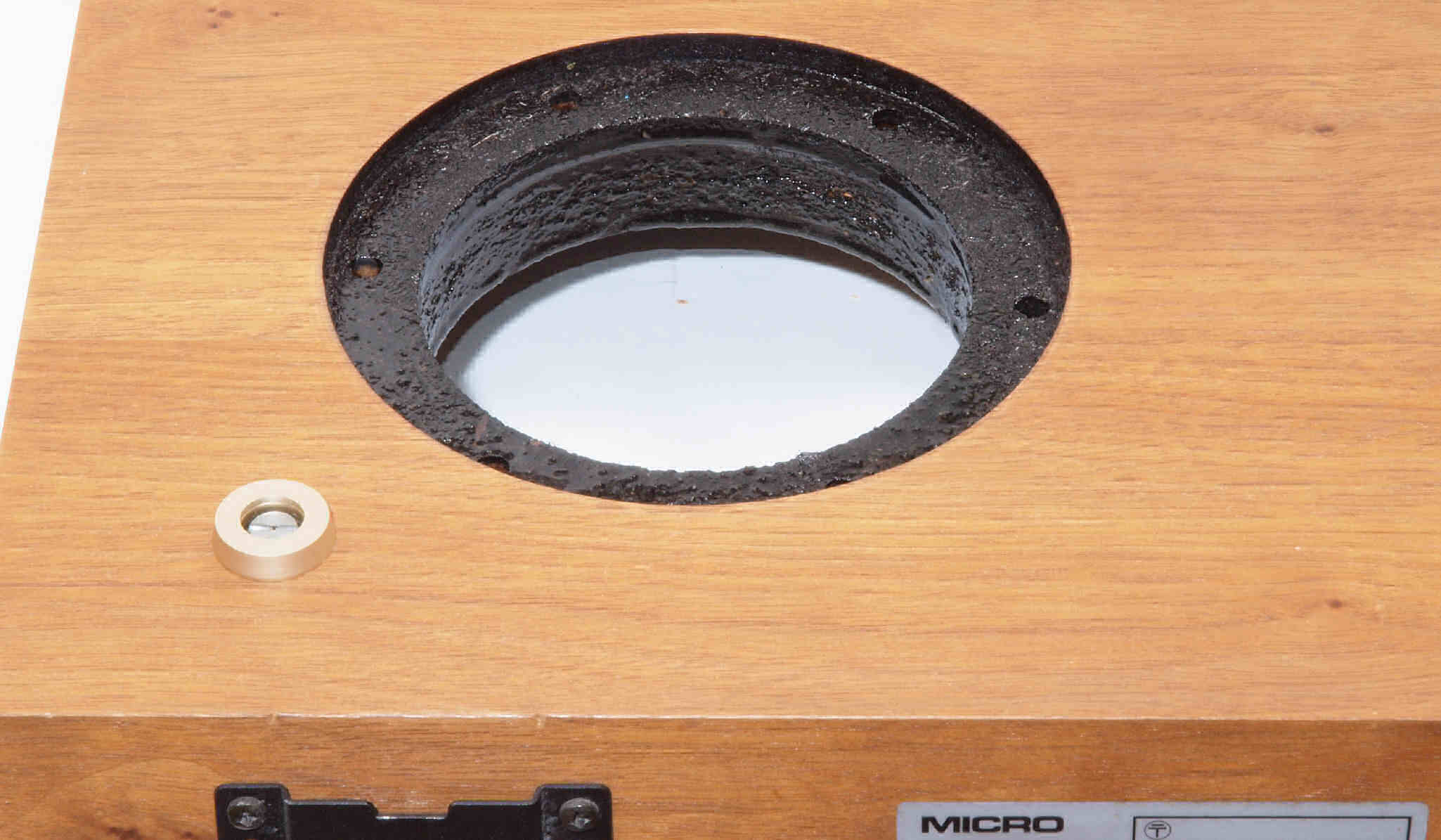 | A33. 点検中 タンテーブル(プラッター)軸穴を上から見る。 | ||||||||||||||||||||||||||||||