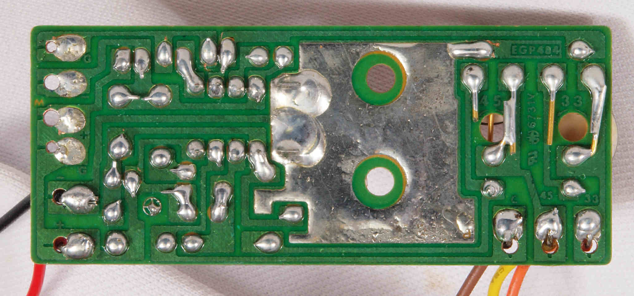 | C35. 完成ヒューズ・定電圧基板裏。 余分なフラックスを落として、コート液を塗る。 | ||||||||||||||||||||||||||||||