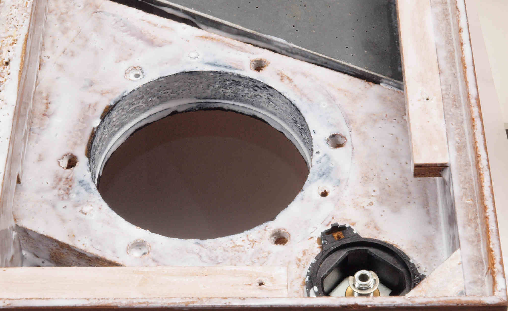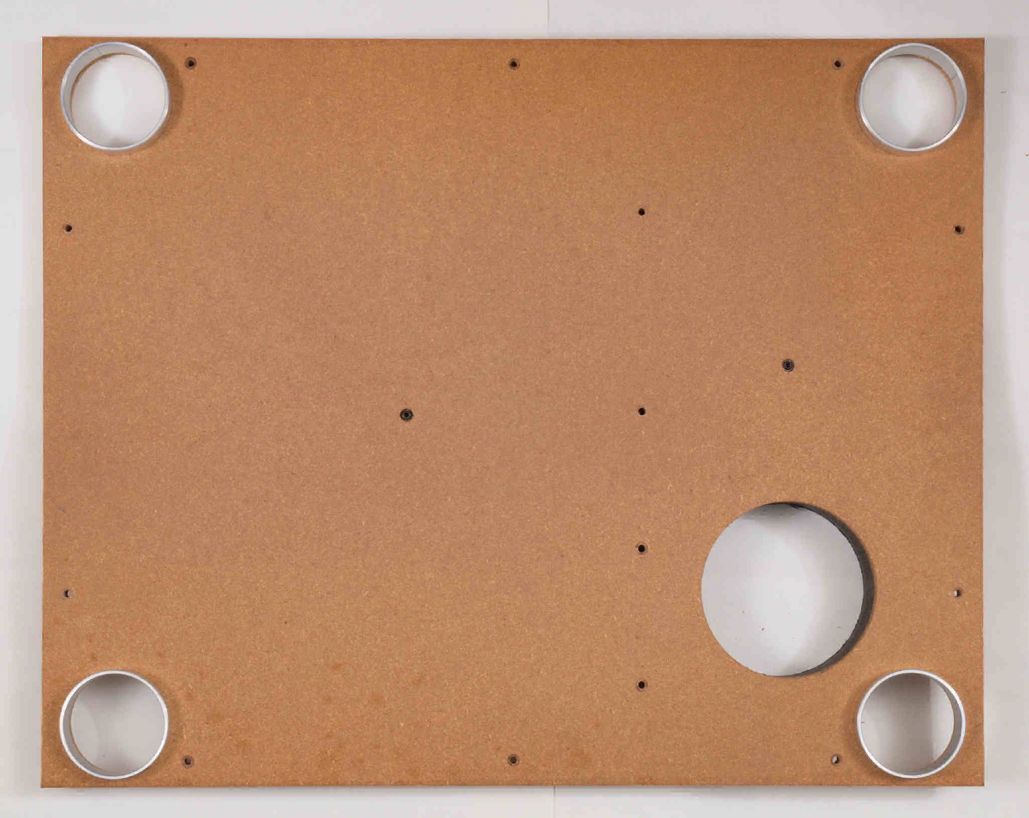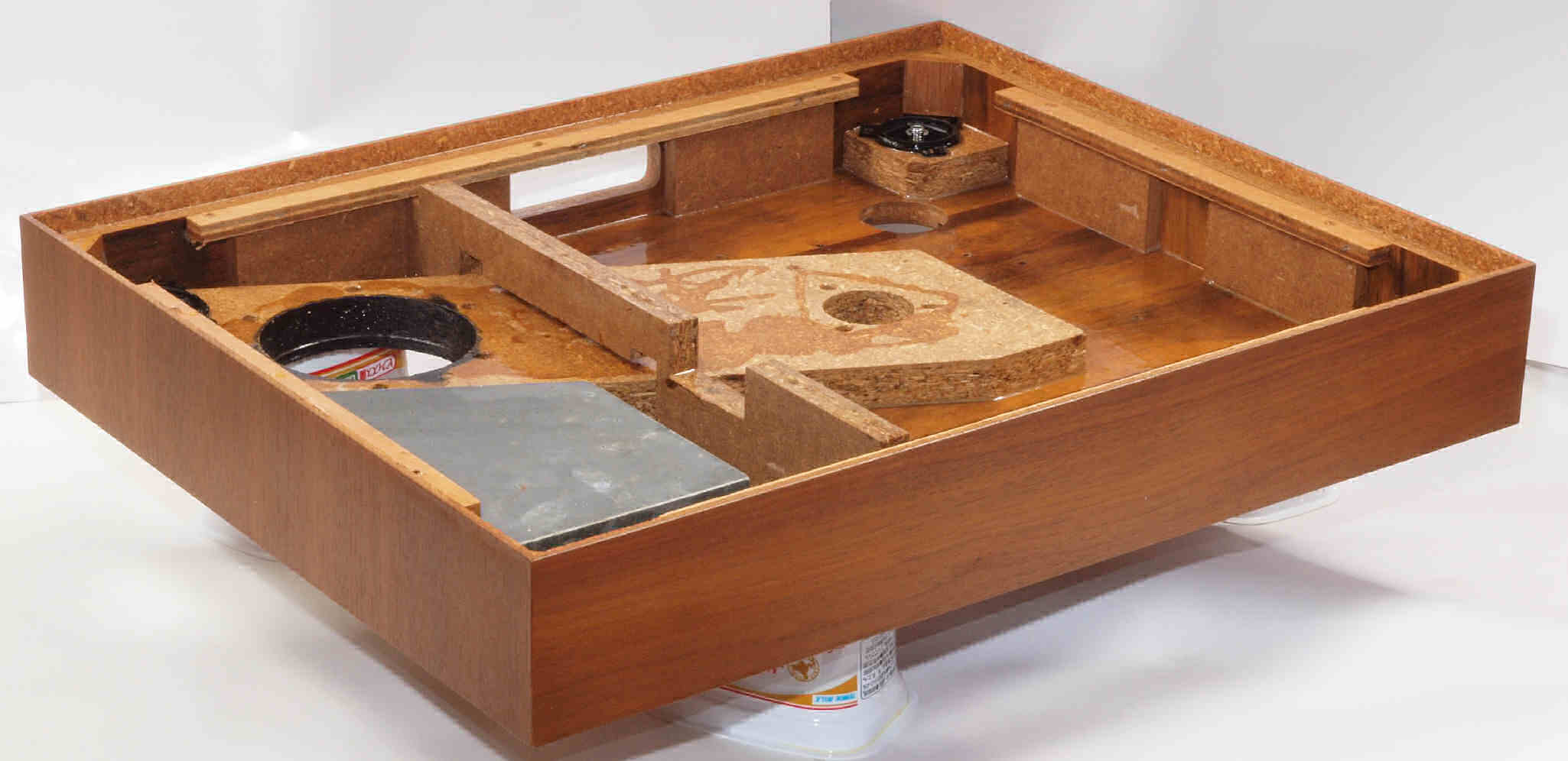 | W32. 修理中 プラッター軸受取付穴。 圧縮材にボンドを染みこませる、ネジ穴も塗る。 | ||||||||||||||||||||||||||||||