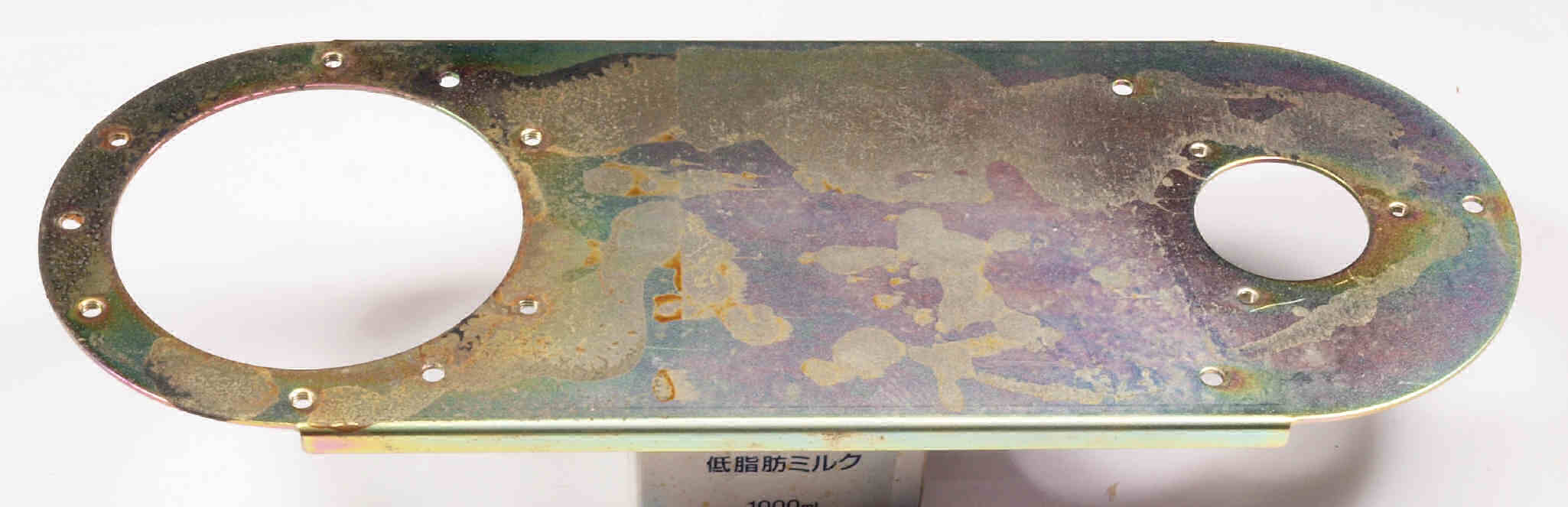 | W82. 修理前 アーム&プラッター軸受け取付け鉄板裏。磨き鉄板ですが錆が発生している。 | ||||||||||||||||||||||||||||||
