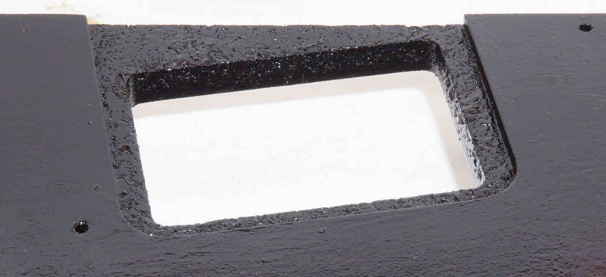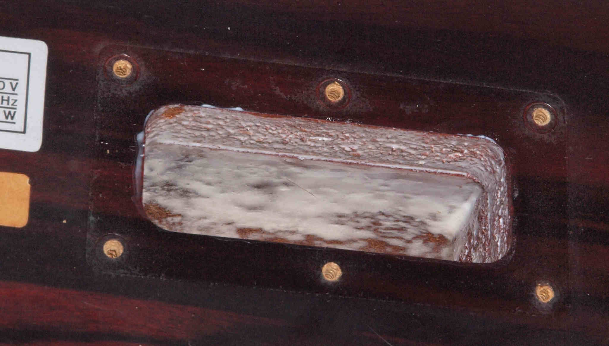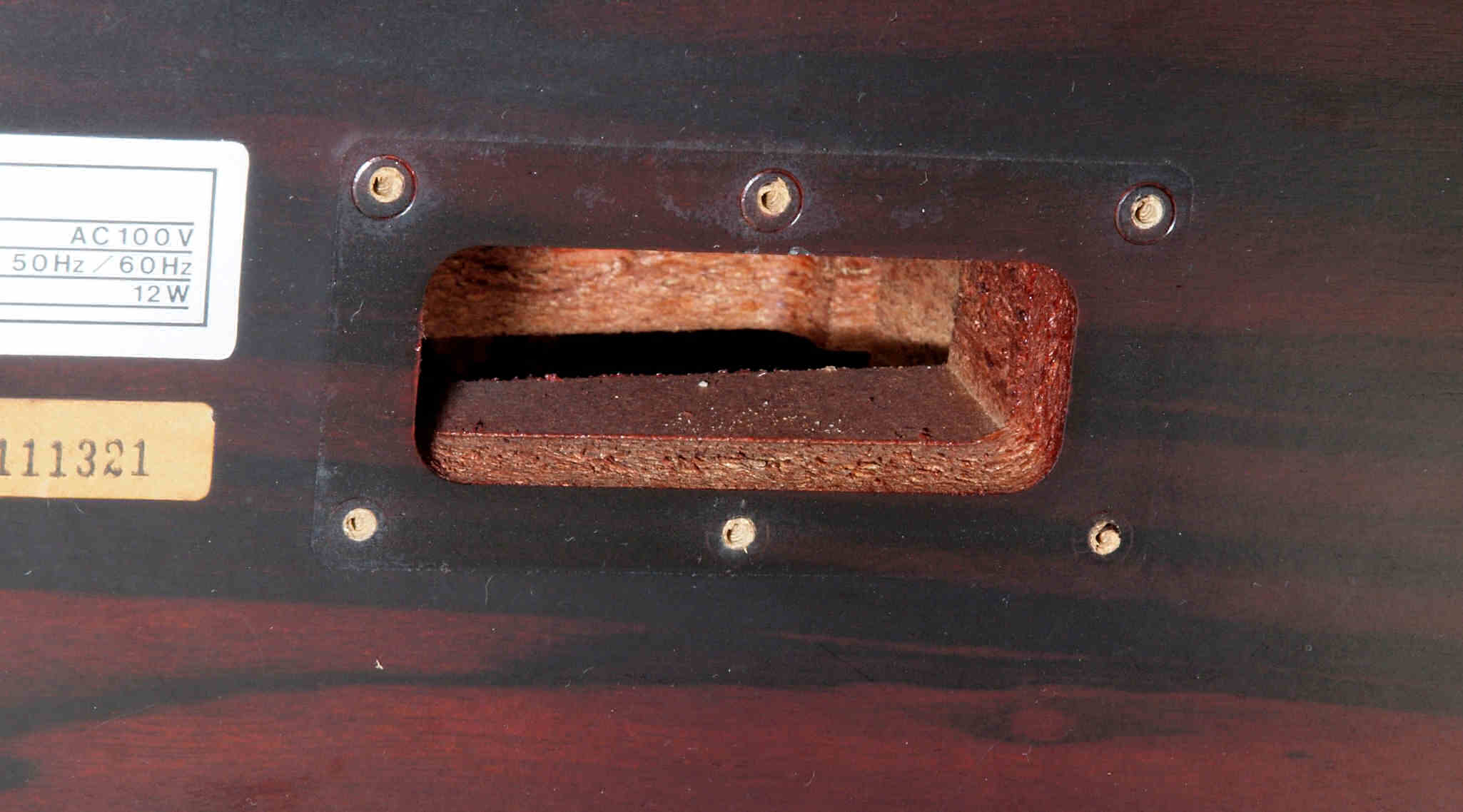 | W83. 修理後 下蓋のトランスカバー取り付穴。 乾燥後さらに割れを防ぐのに、ペンキを塗る。 | ||||||||||||||||||||||||||||||||||||||||||||||||||||