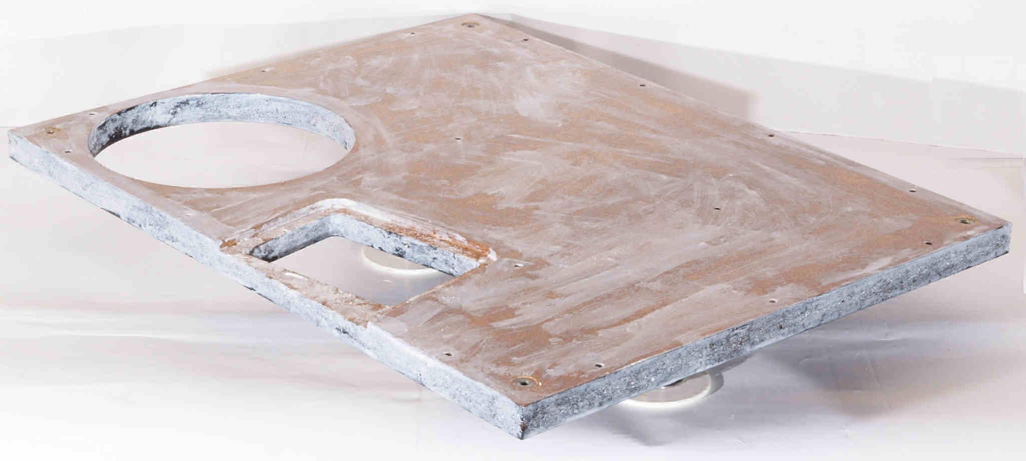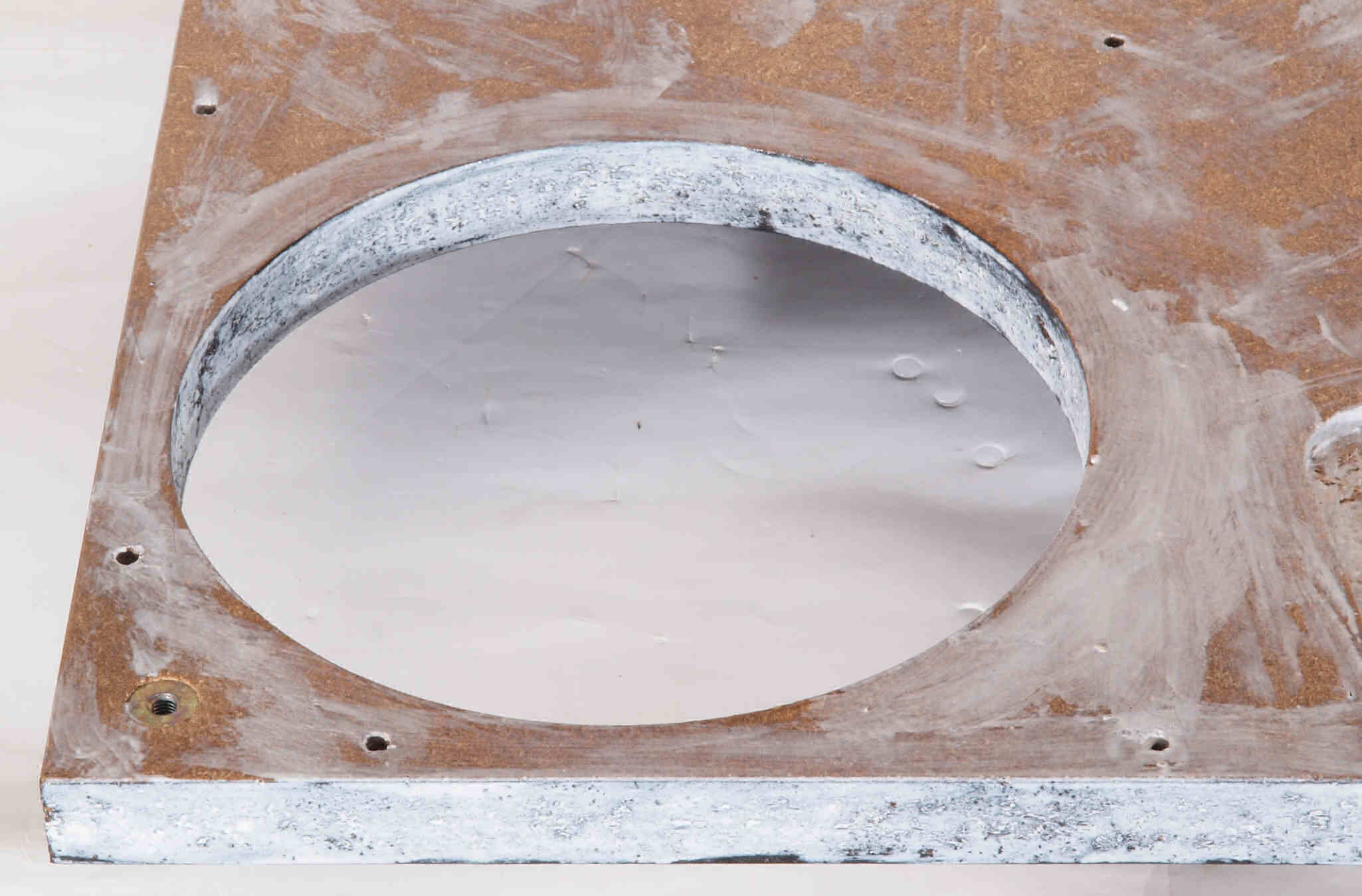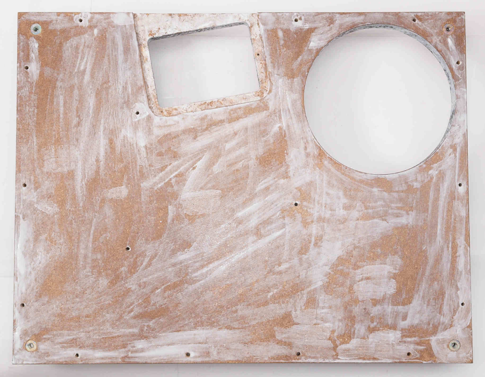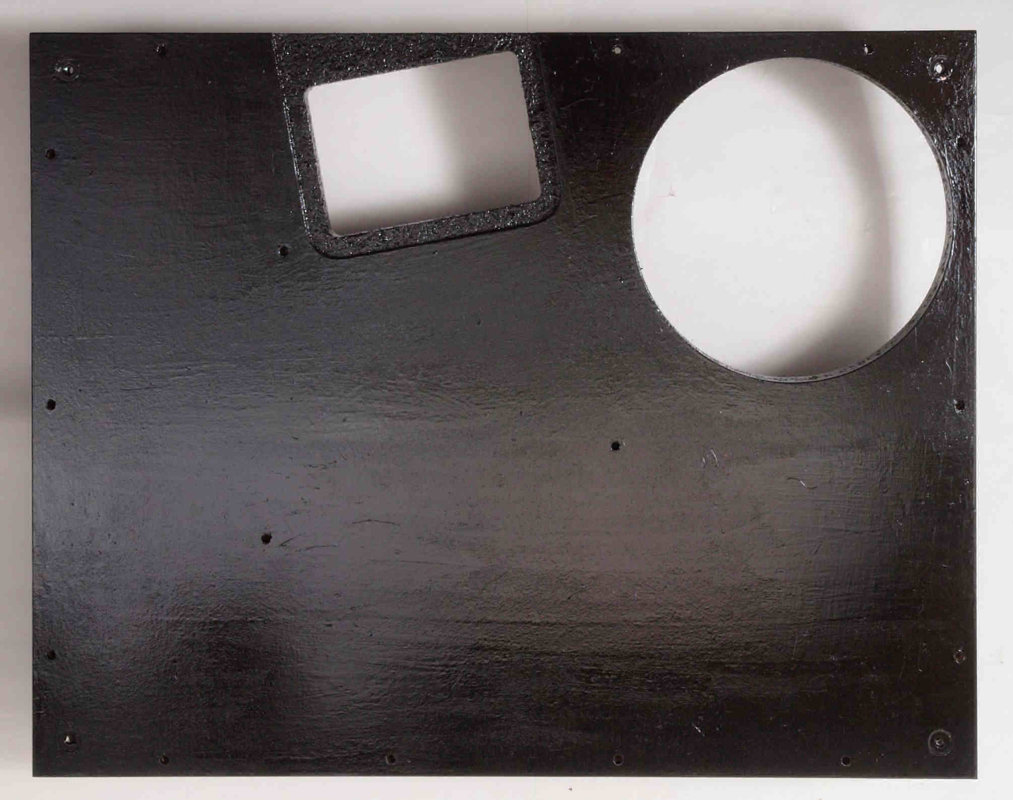 | W83. 修理後 下蓋のトランスカバー取り付穴。 乾燥後さらに割れを防ぐのに、ペンキを塗る。 | ||||||||||||||||||||||||||||||||||||||||||||||||||||
