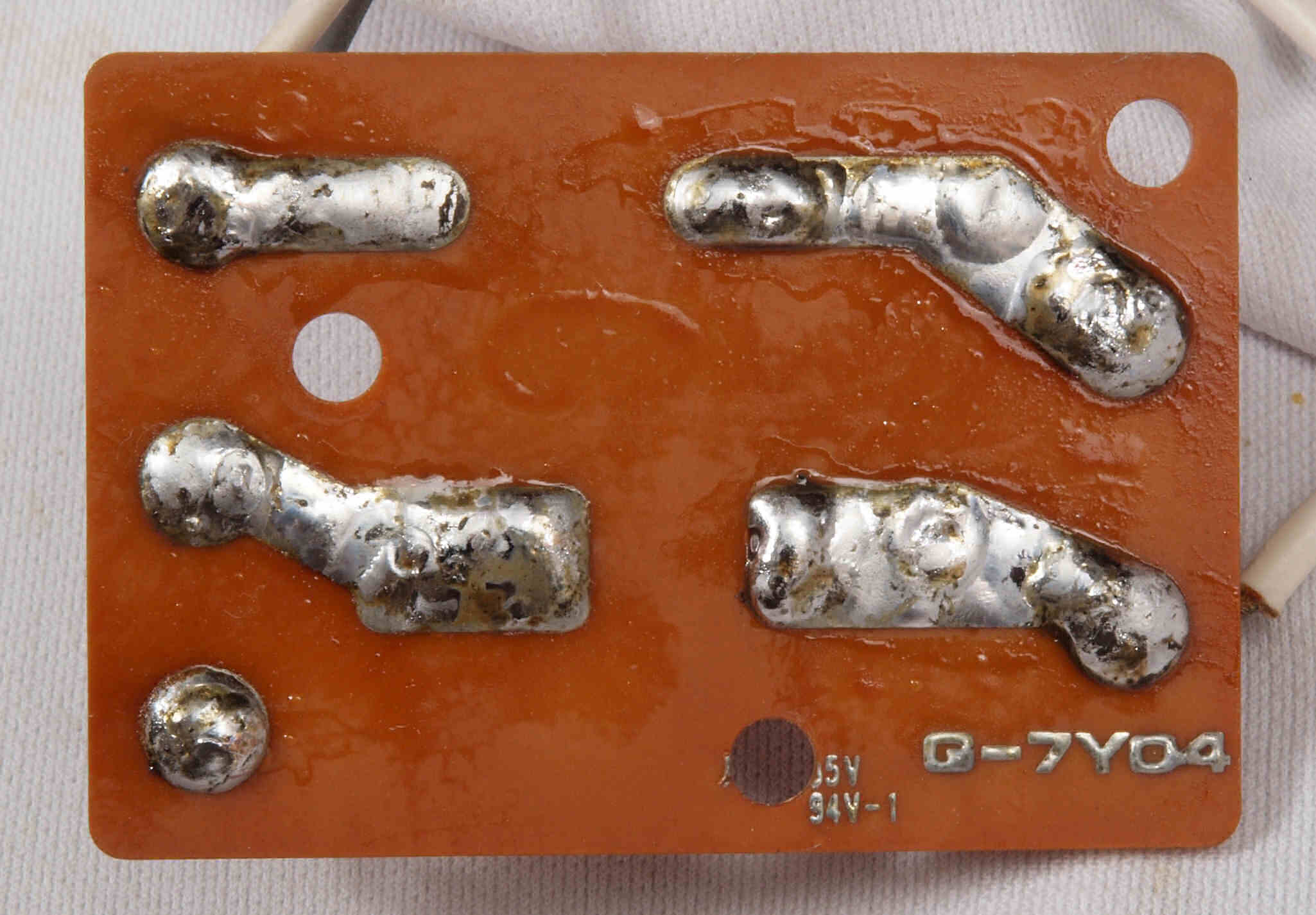 | C312. 修理前 ヒューズ基板。 端子に接続する2本の線の内、1本が未半田! | ||||||||||||||||||||||||||||||||||||||||||||||||||||