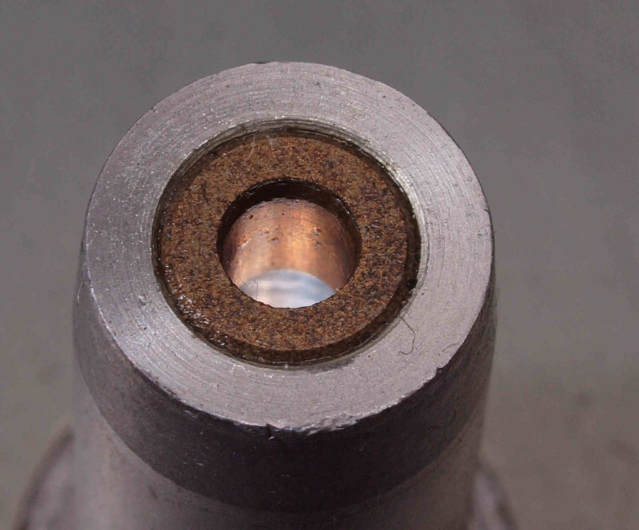 | W2. 修理後 アーム取り付け穴。 キズを消す為と割れを防ぐのに、ラッカーを吹く。 | ||||||||||||||||||||||||||||||||||||||||||||||||||||