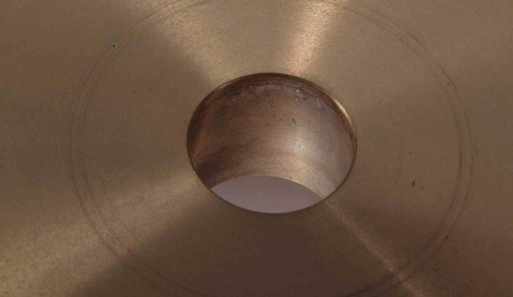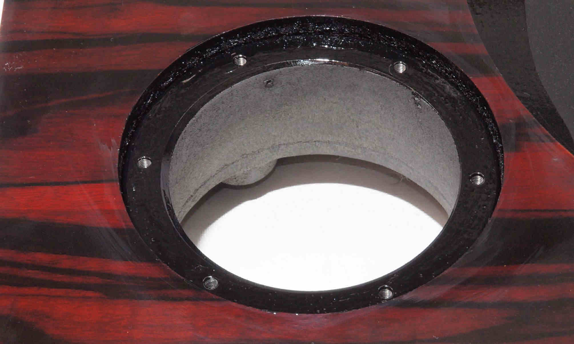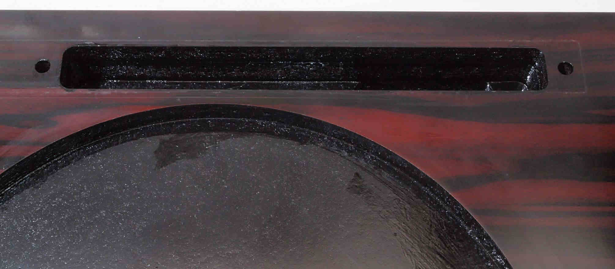 | W6. 修理後 タンテーブル穴。 キズを消す為と割れを防ぐのに、ラッカーを吹く。 | ||||||||||||||||||||||||||||||||||||||||||||||||||||