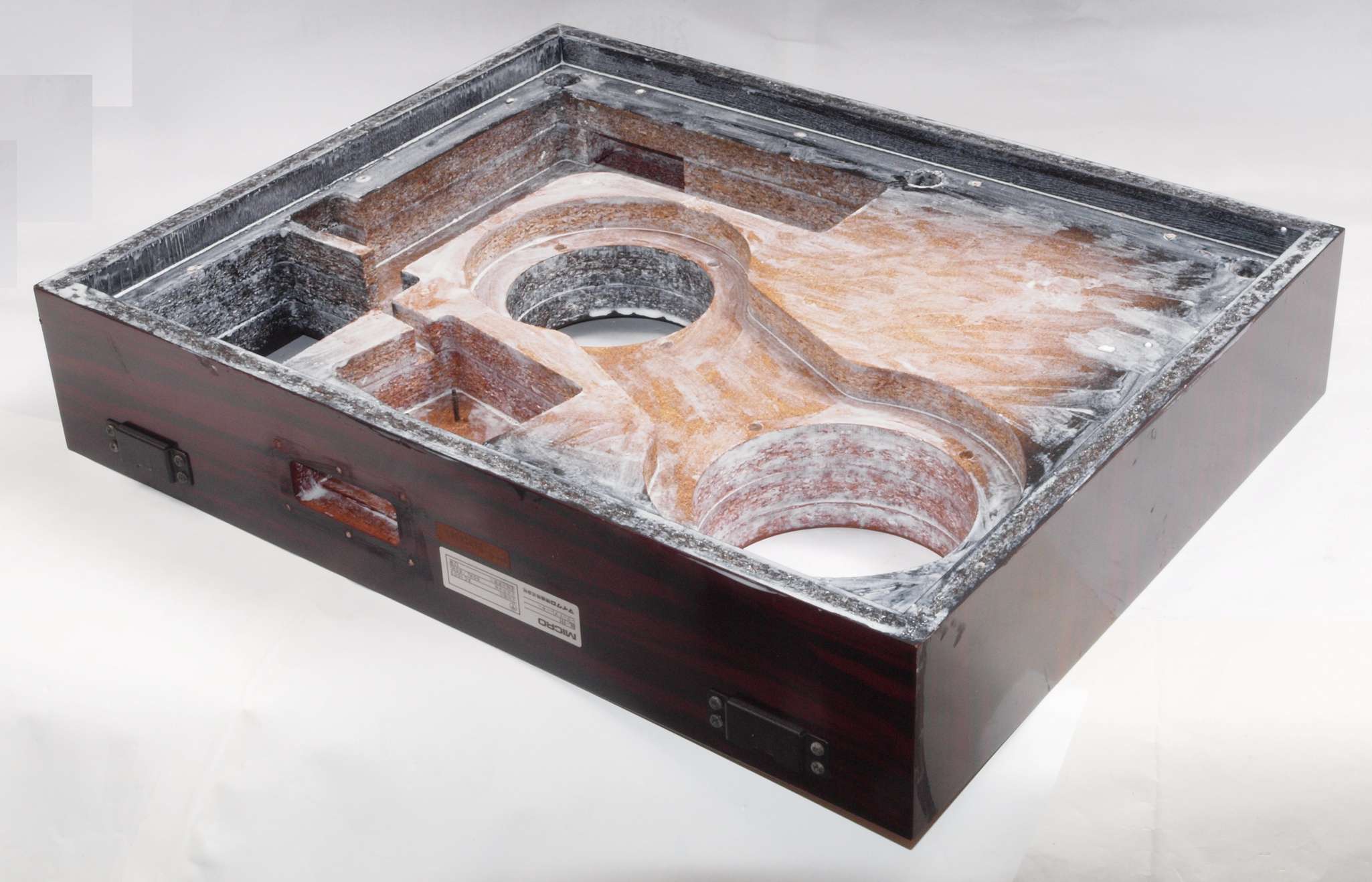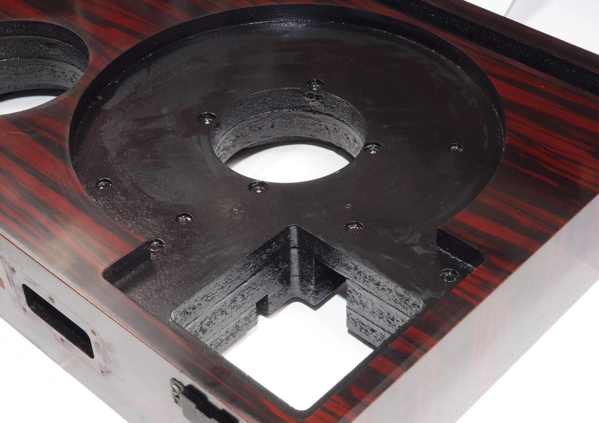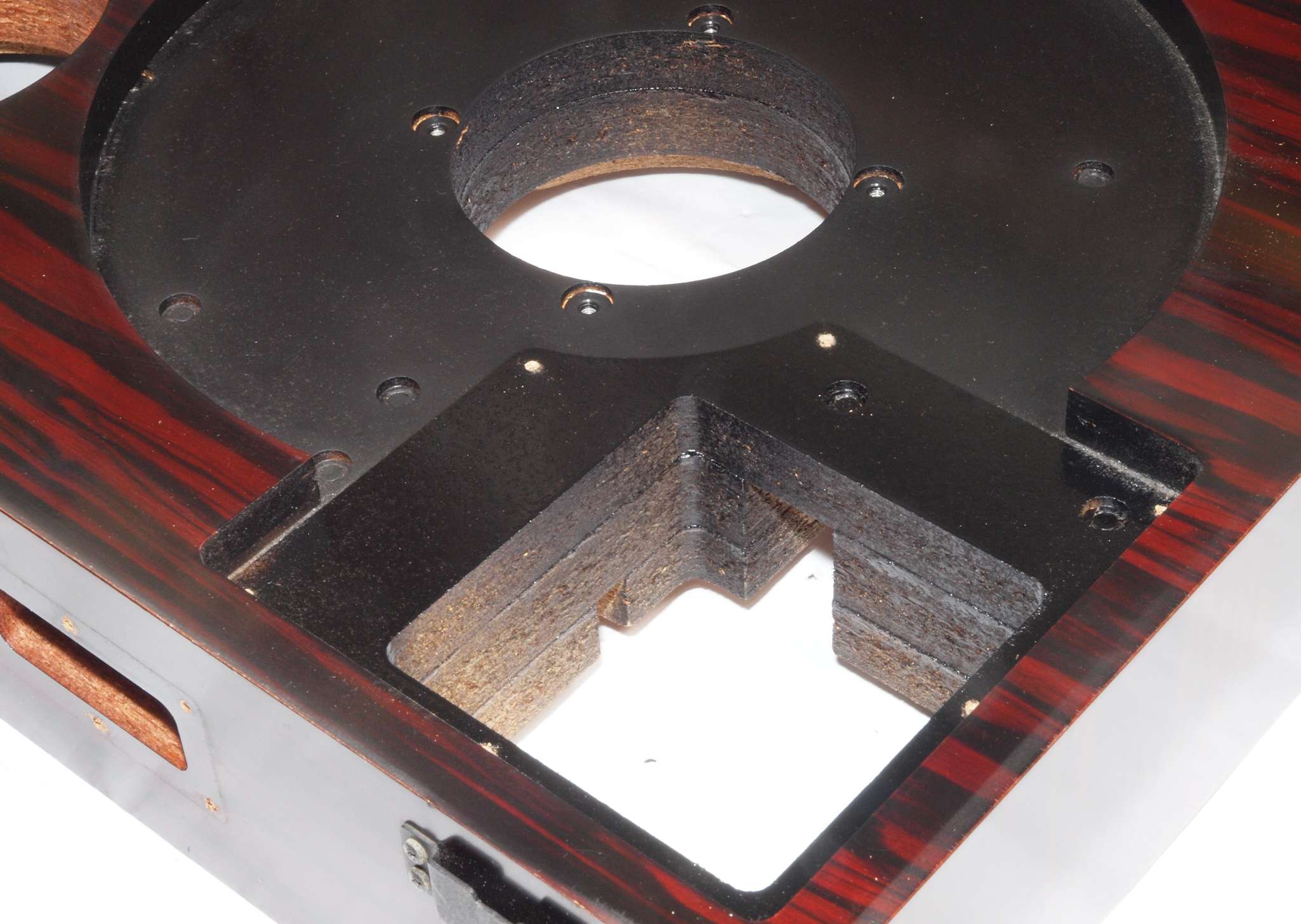 | W22. 修理中 モーター取付穴、タンテーブル軸受取付穴。 圧縮材にボンドを染みこませる。 | ||||||||||||||||||||||||||||||||||||||||||||||||||||