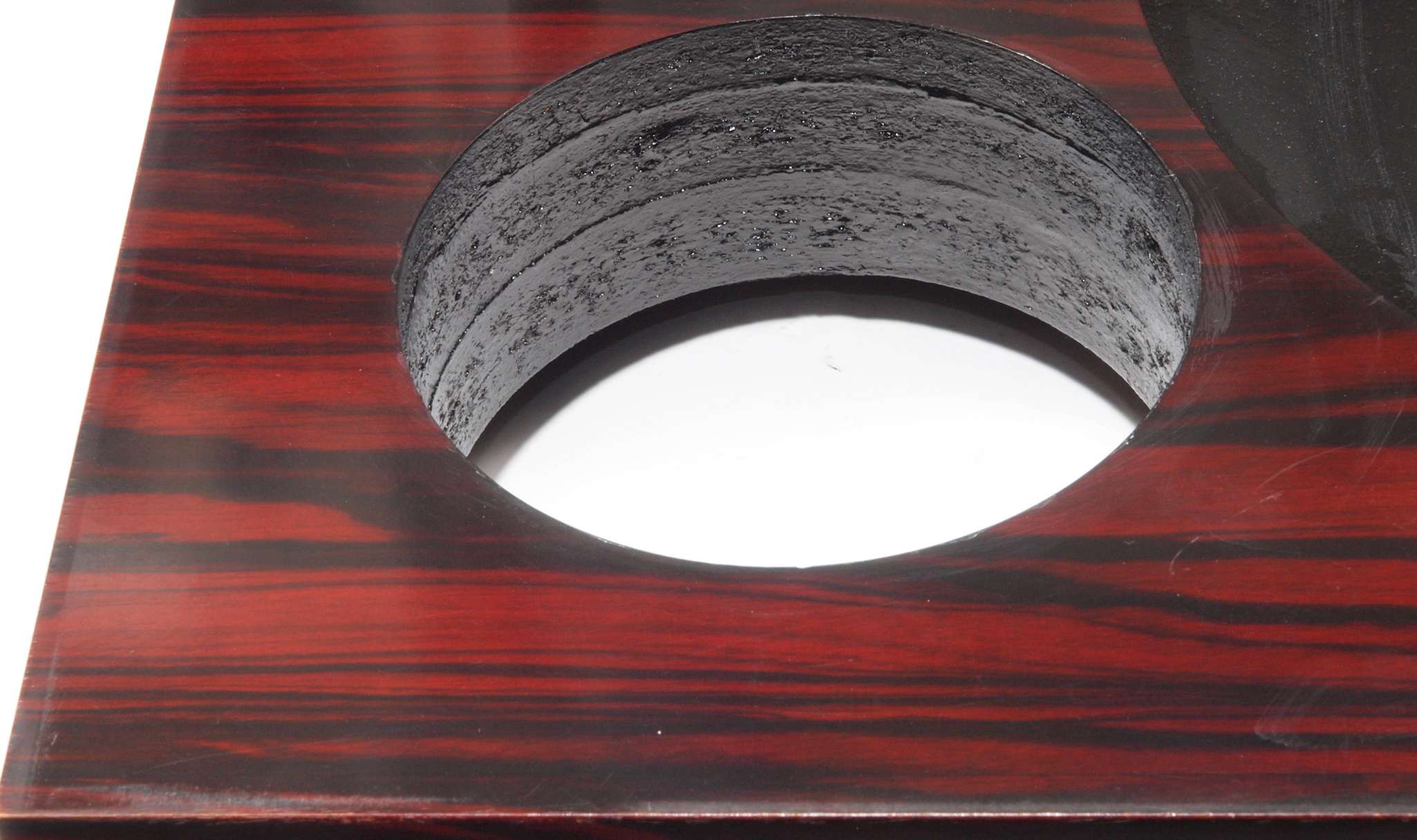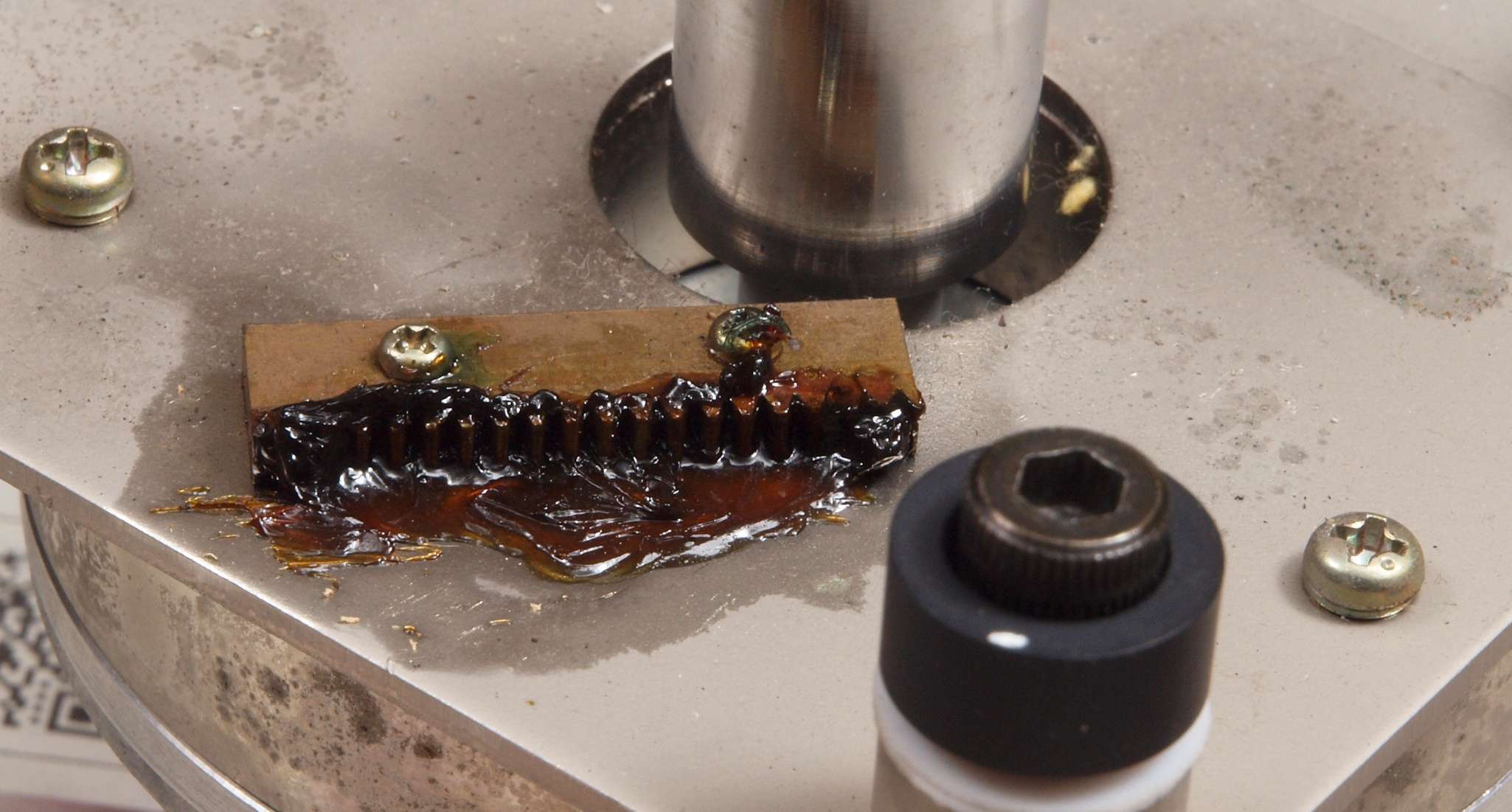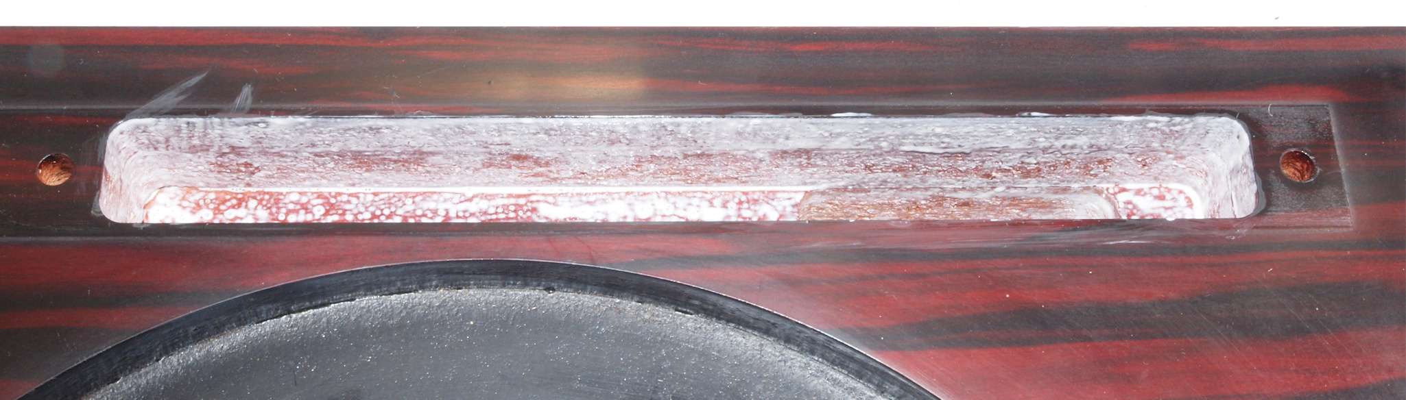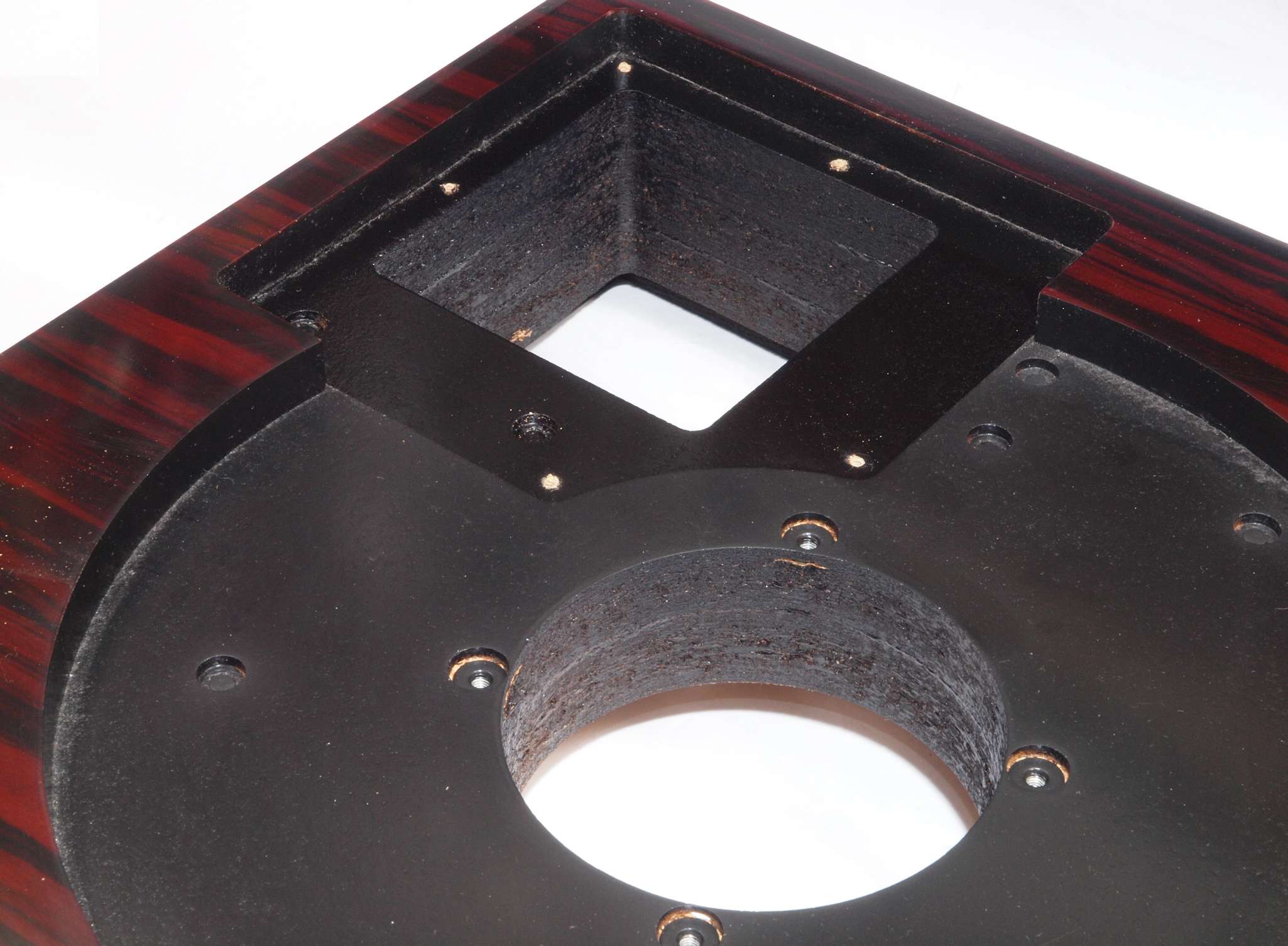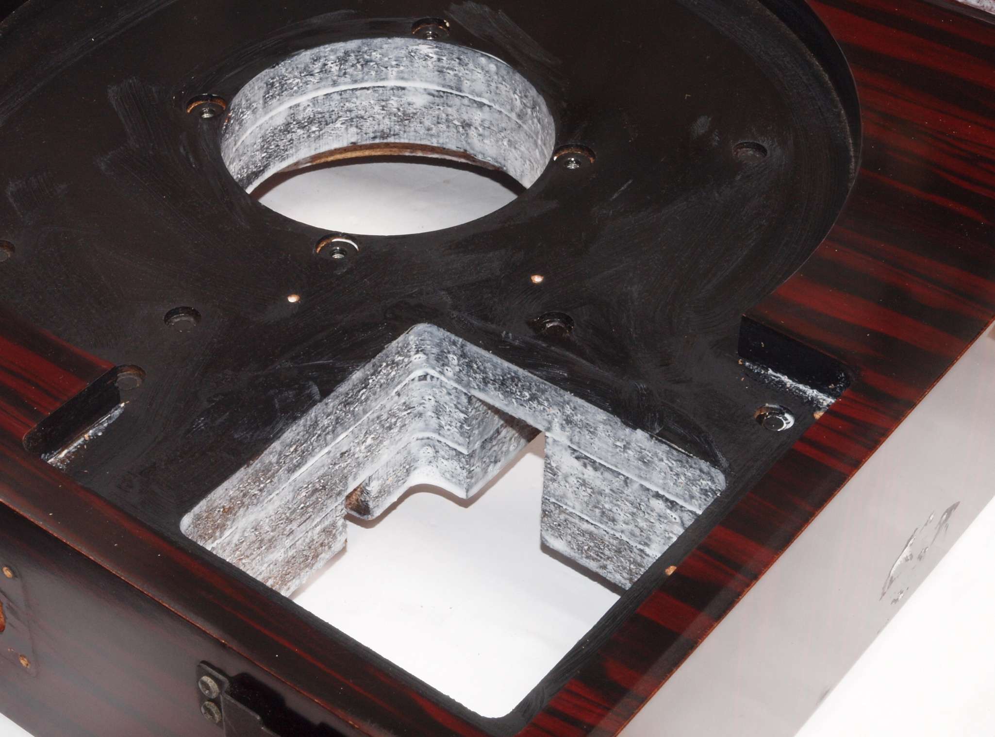 | W25. 修理中 モーター取付穴、タンテーブル軸受取付穴、反対側。 圧縮材にボンドを染みこませる。 | ||||||||||||||||||||||||||||||||||||||||||||||||||||