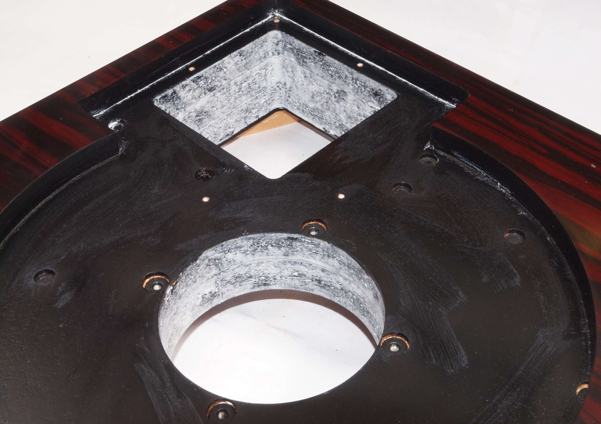 | WB22. 修理中 下蓋のアーム取り付穴、トランスカバー取り付穴。乾燥後、キズの所は再度塗布する。 | ||||||||||||||||||||||||||||||||||||||||||||||||||||