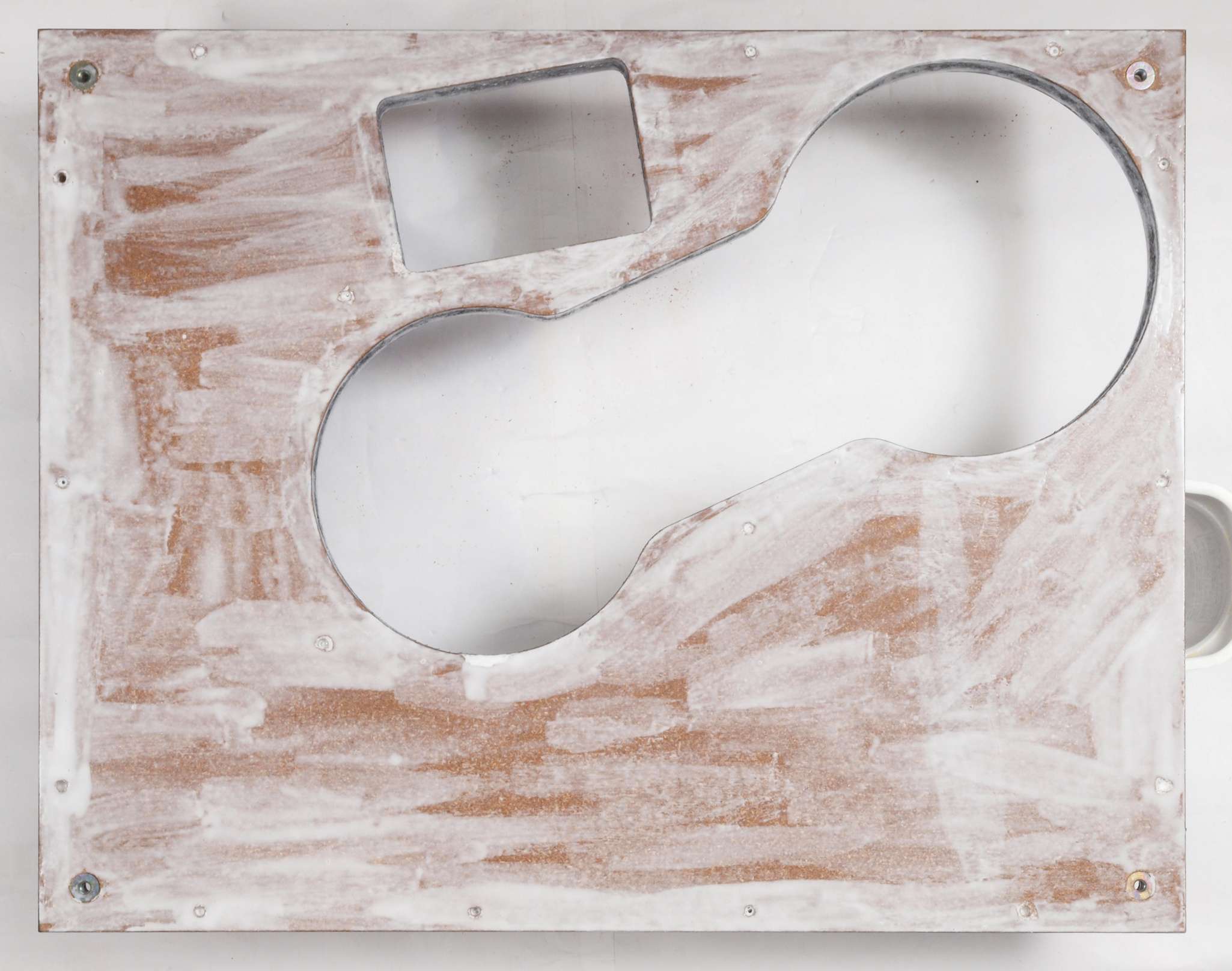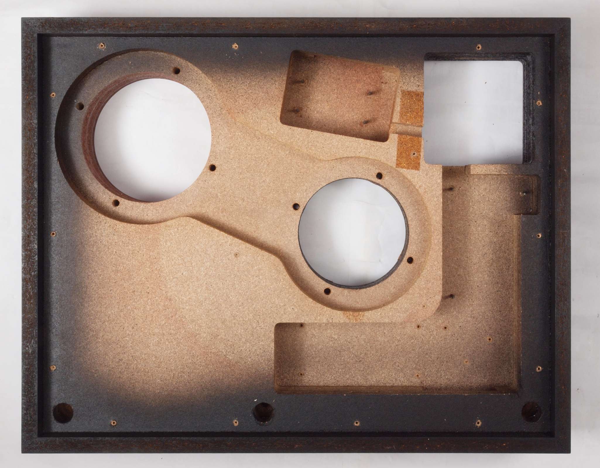 | WB6. 修理後 下蓋のアーム取り付穴、トランスカバー取り付穴、反対側。 乾燥後さらにペンキを塗る。 | ||||||||||||||||||||||||||||||||||||||||||||||||||||