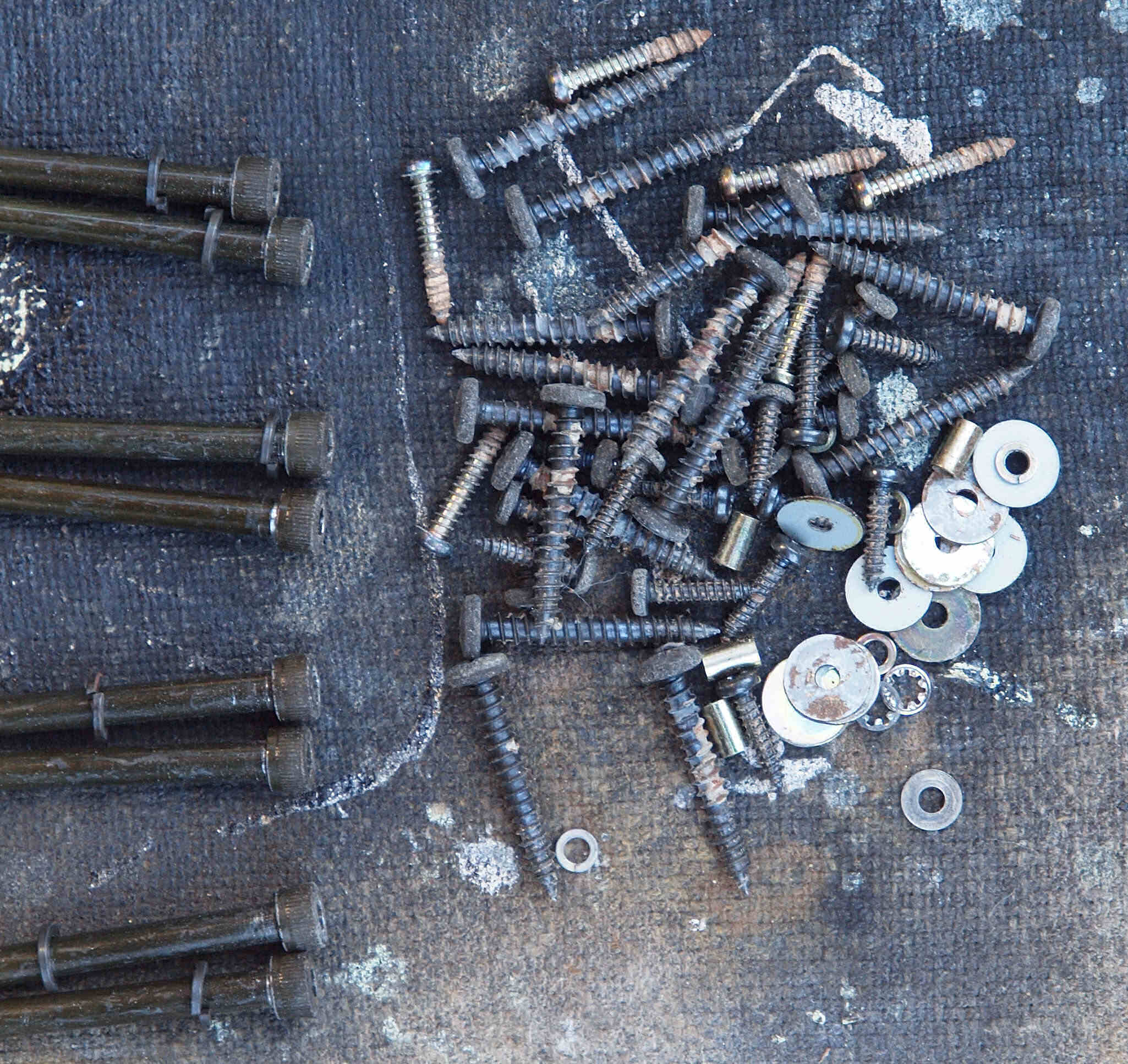 | W62. 修理中 本体木枠下前。 圧縮材にボンドを染みこませる、ネジ穴も塗る。 | ||||||||||||||||||||||||||||||||||||||||||||||||||||