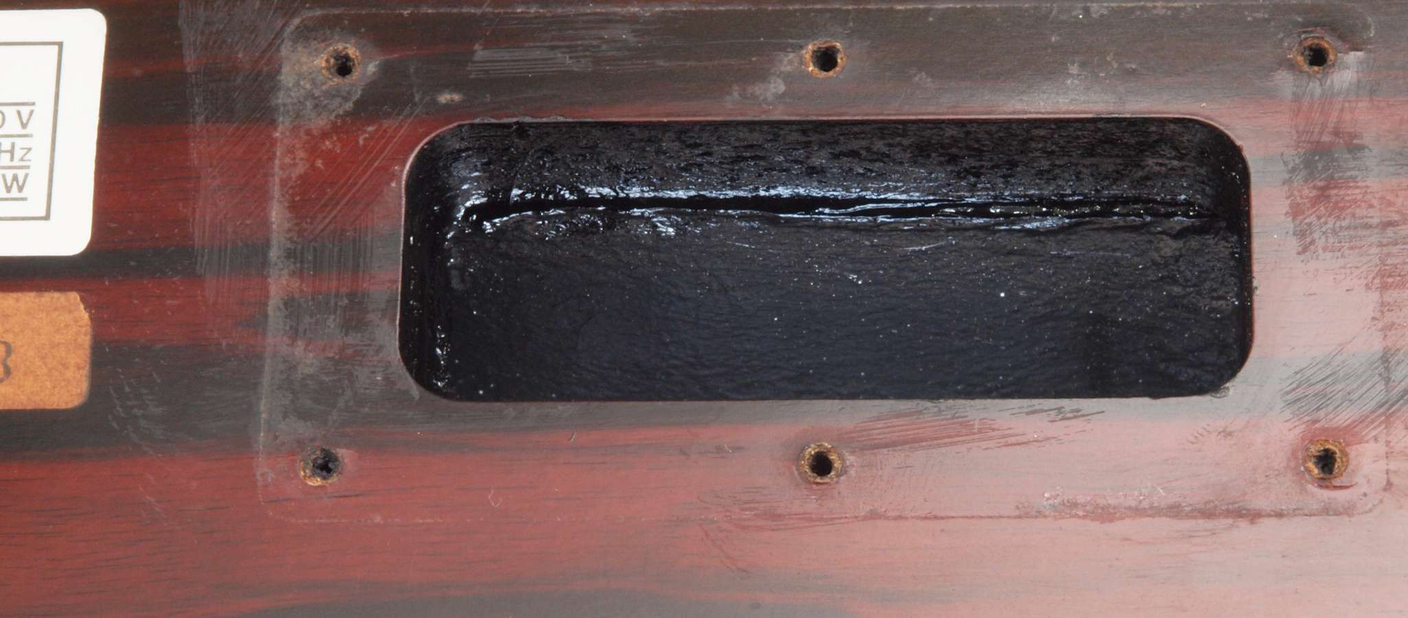 | W75. 修理前 電源ソケット、端子板取付け穴、反対側。 圧縮材にボンドを染みこませる、ネジ穴も塗る。 | ||||||||||||||||||||||||||||||||||||||||||||||||||||
