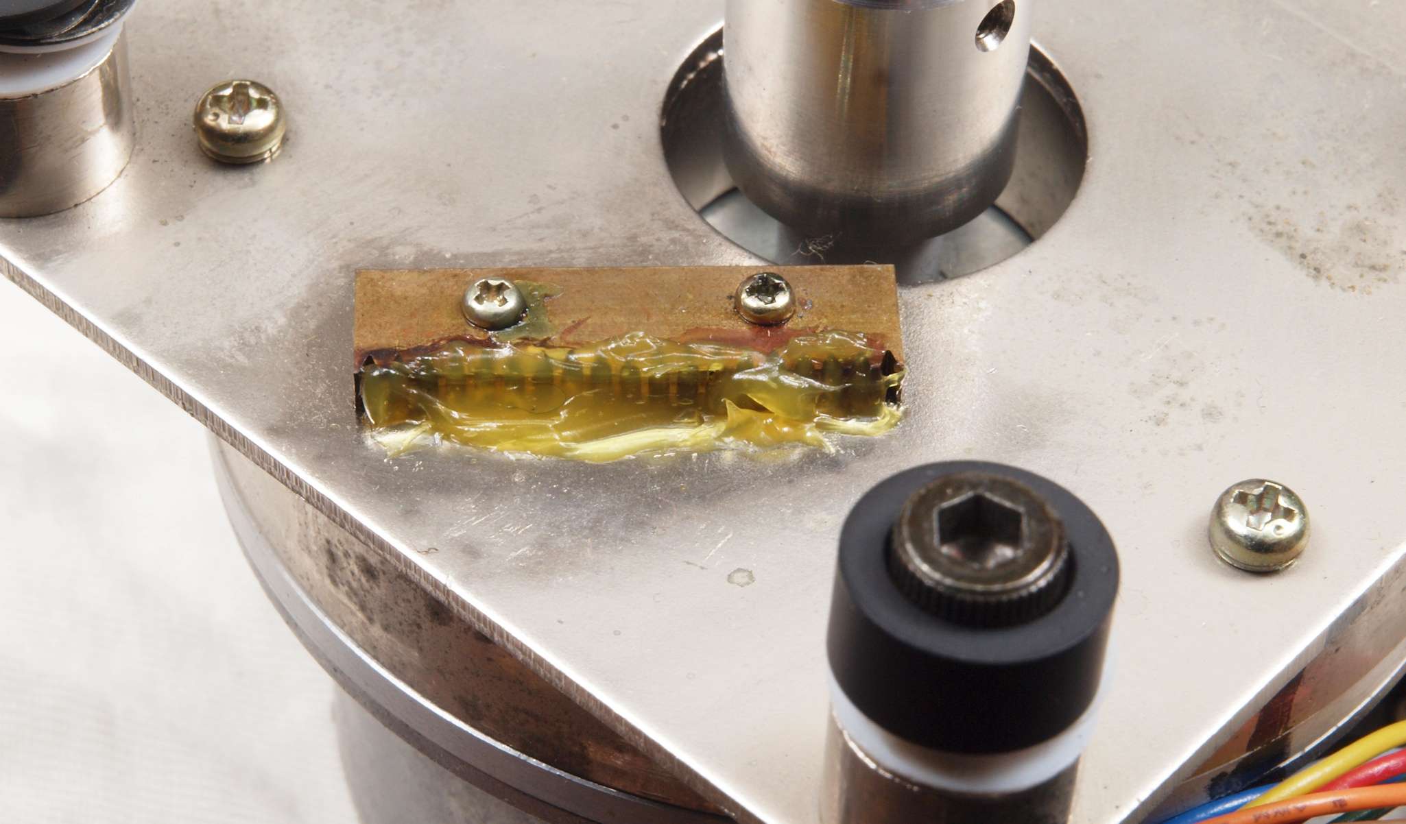| WB2. 修理中 下蓋のアーム取り付穴、トランスカバー取り付穴。ボンドを染みこませる、ネジ穴も塗る。 | ||||||||||||||||||||||||||||||||||||||||||||||||||||