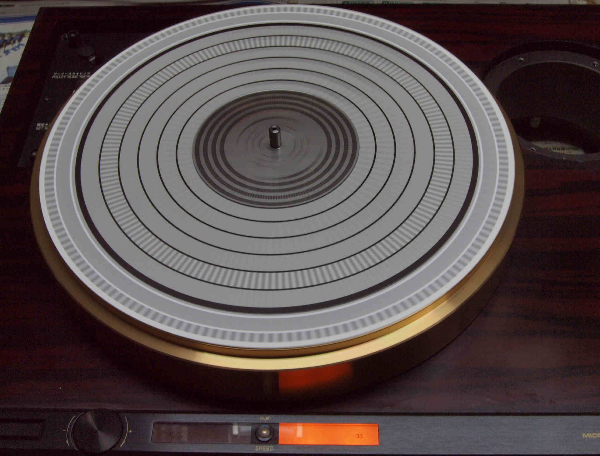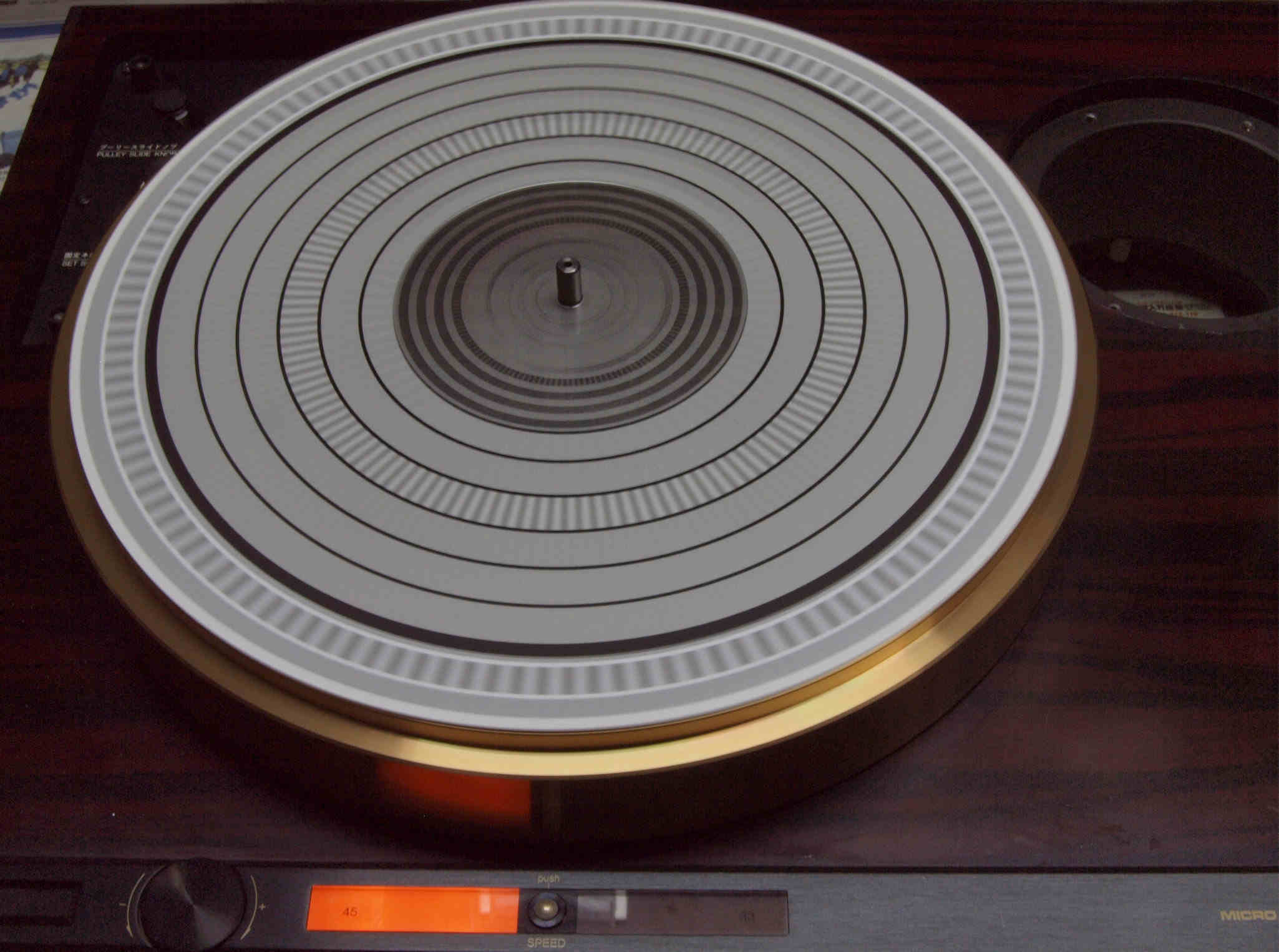 | E2. 45回転ストロボ測定。 速度調整はセンター固定、ベルトは手持ゴム製使用。 | ||||||||||||||||||||||||||||||||||||||||||||||||||||
