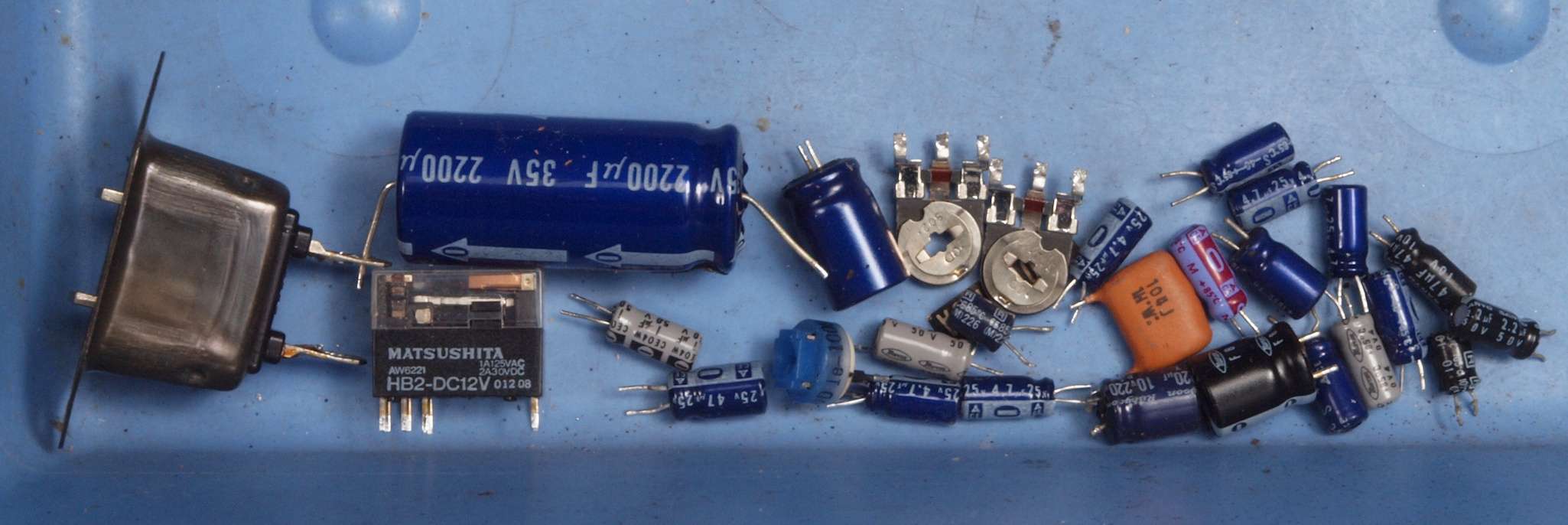 | CD2. 交換部品 リレー。 左=付いていた物、右=交換した後発の密閉型。 | ||||||||||||||||||||||||||||||||||||||||||||||||||||