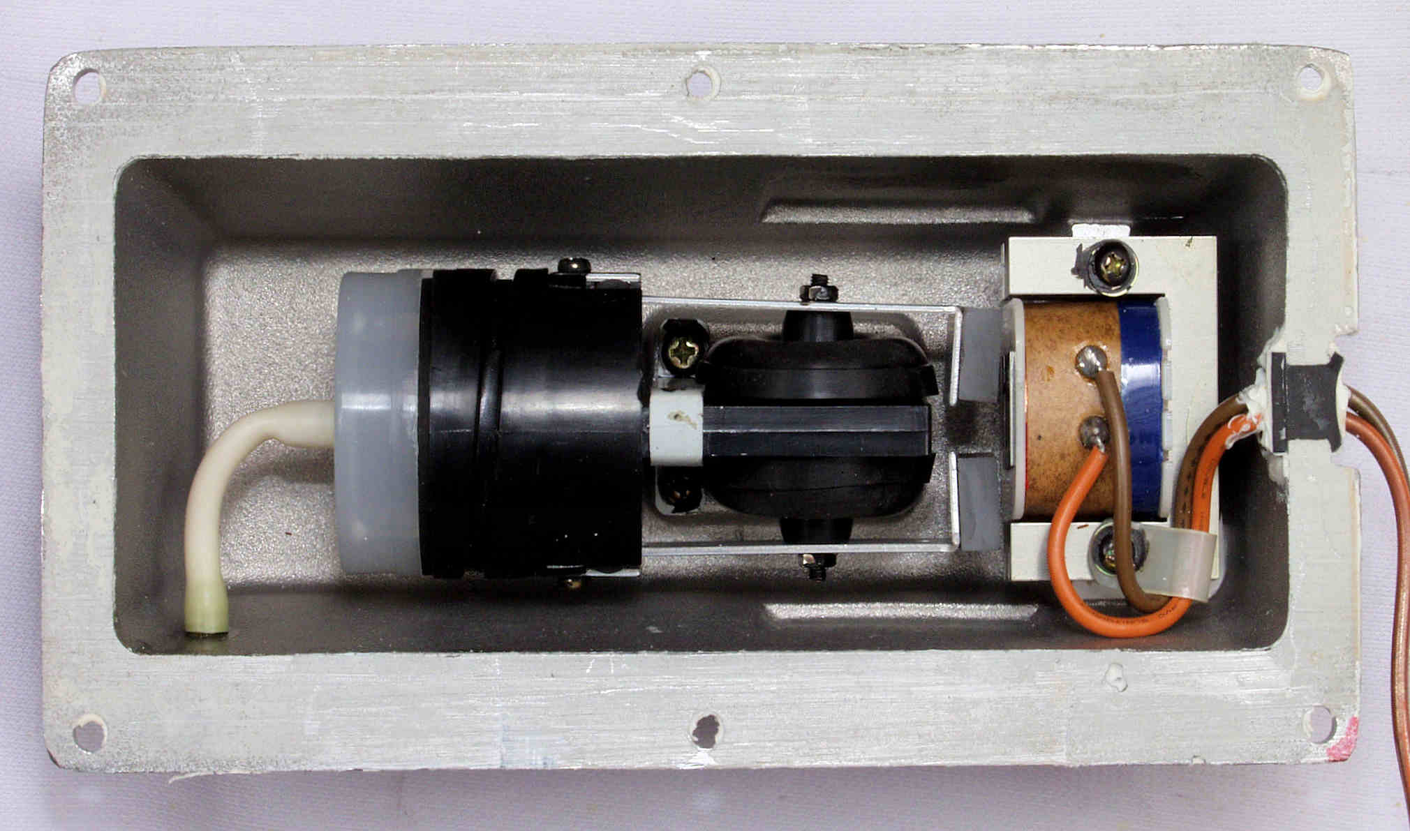 C73. 修理前 木ネジで割れた、「ポンプ取り付け板」。