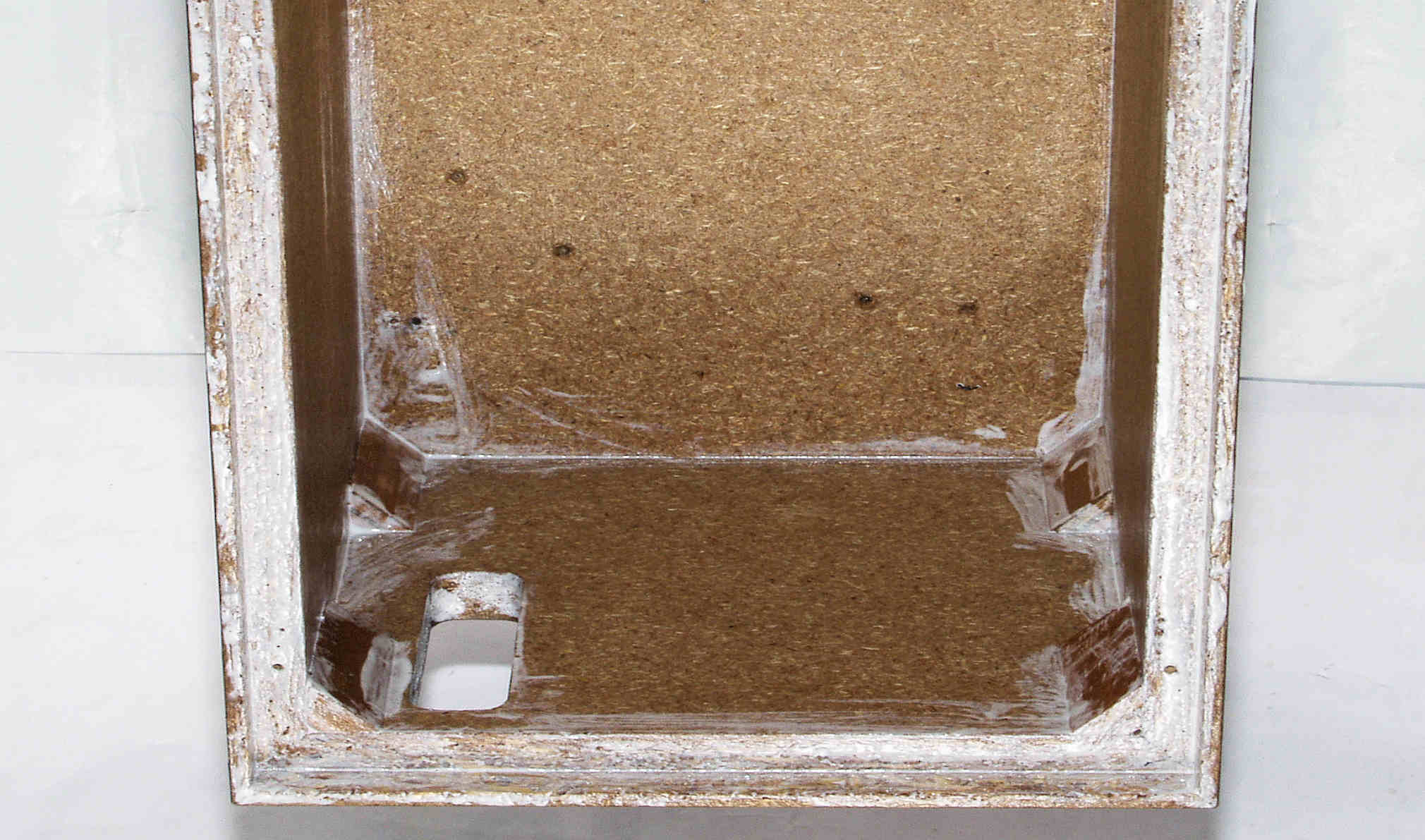 | C51. 修理前 接着材が劣化した木箱圧縮板上側。 | ||||||||||||