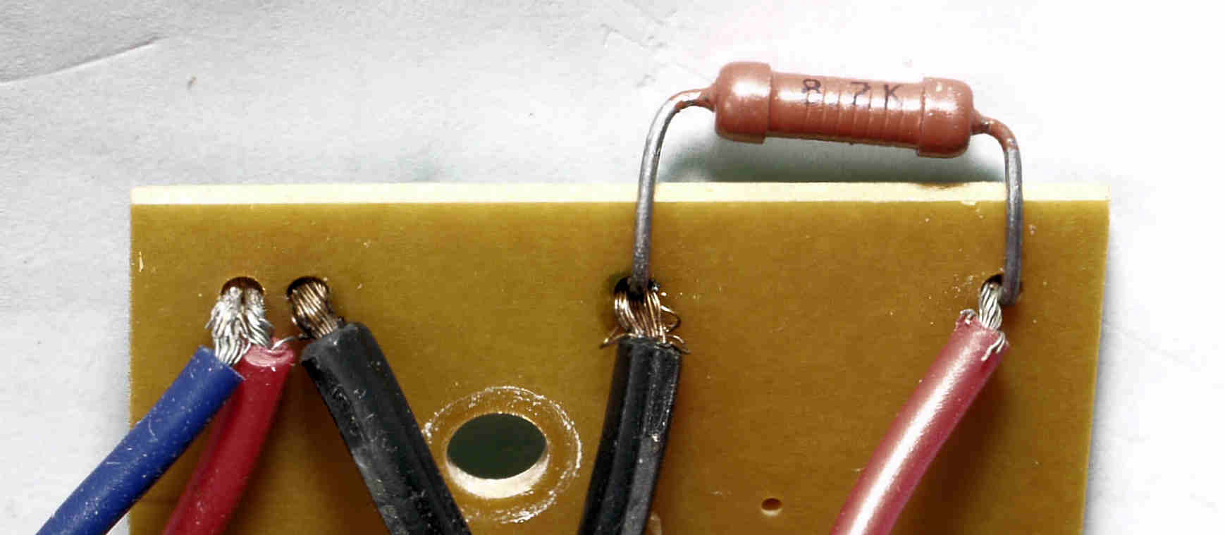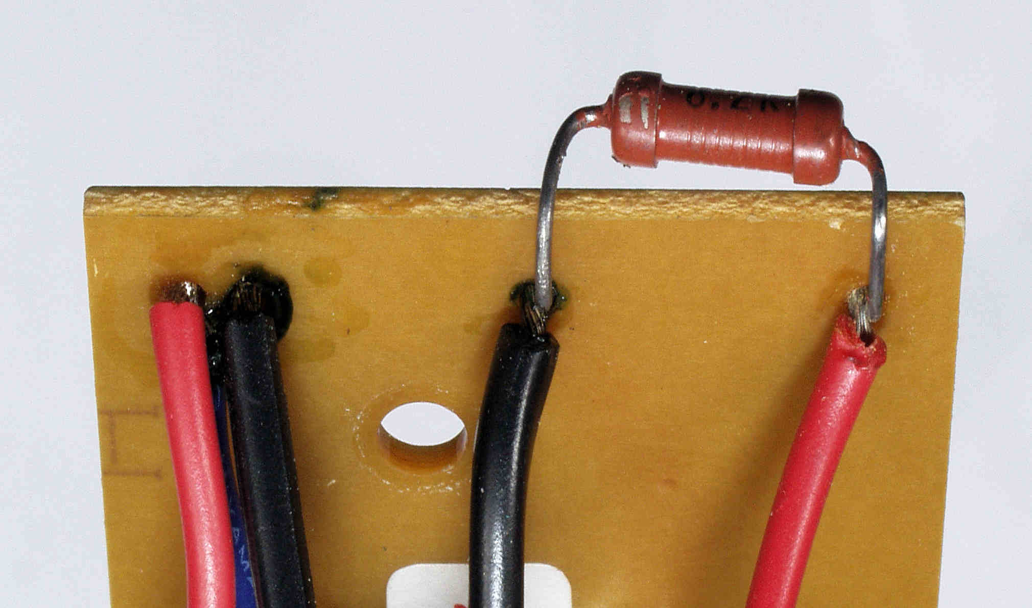 | CC12. 修理前 フューズ基板、何回も線を曲げたのでしょう、芯線が大分切れています。 | ||||||||||||